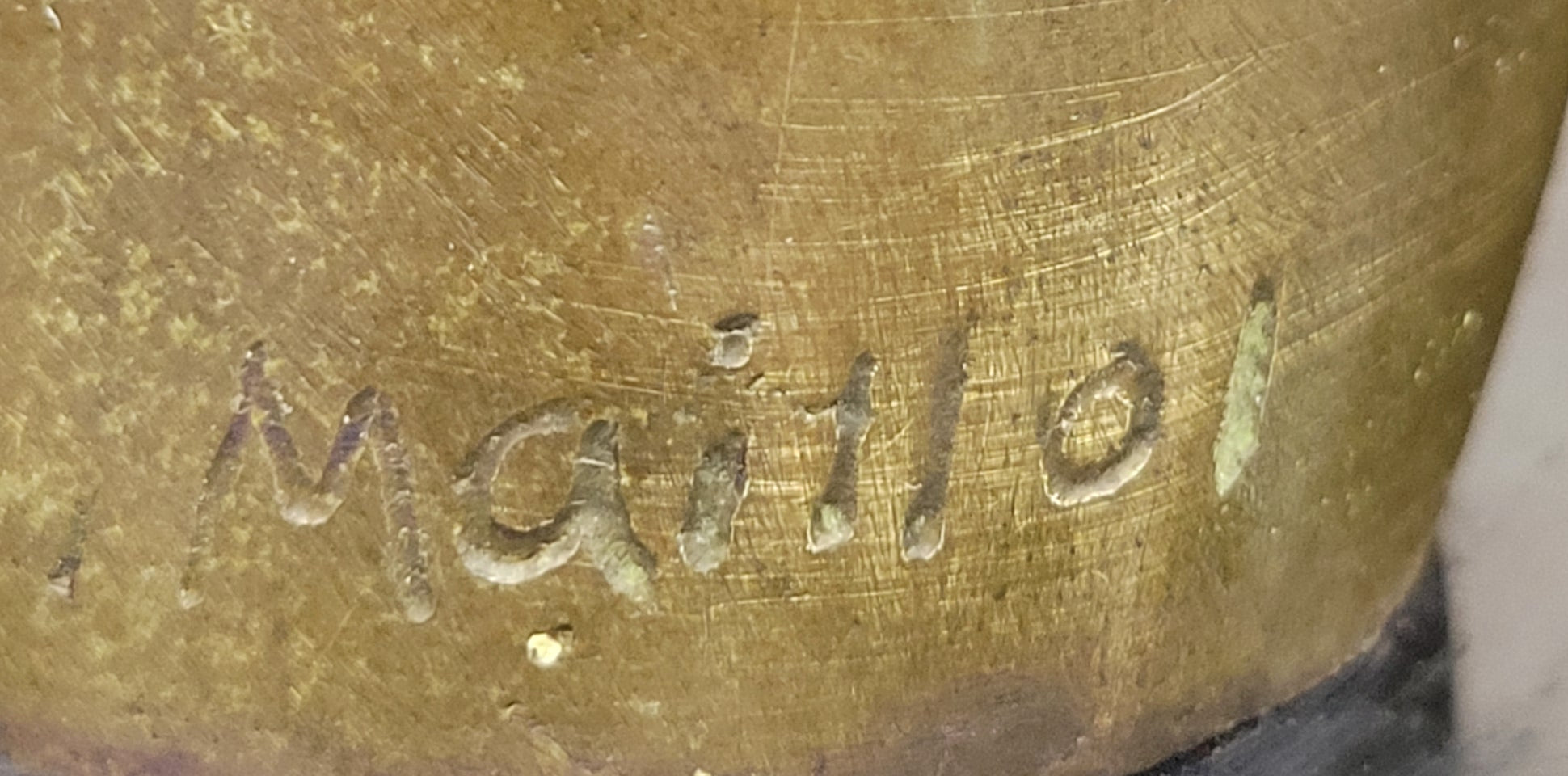 Crafted through the time-honored "Lost Wax Method," this sculpture is a testament to the enduring legacy of this ancient technique. The brown patina finish not only adds depth to the piece but also serves as a protective layer to preserve its beauty for generations to come. As a 100% handmade bronze sculpture, it bears the unmistakable signature of the artist Aristide Maillol, further enhancing its value and quality. This captivating artwork invites viewers to contemplate the enduring allure of the human form and its enduring relevance in the world of contemporary art.Bronze Dimensions: Height 13" X Width 8"