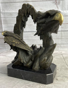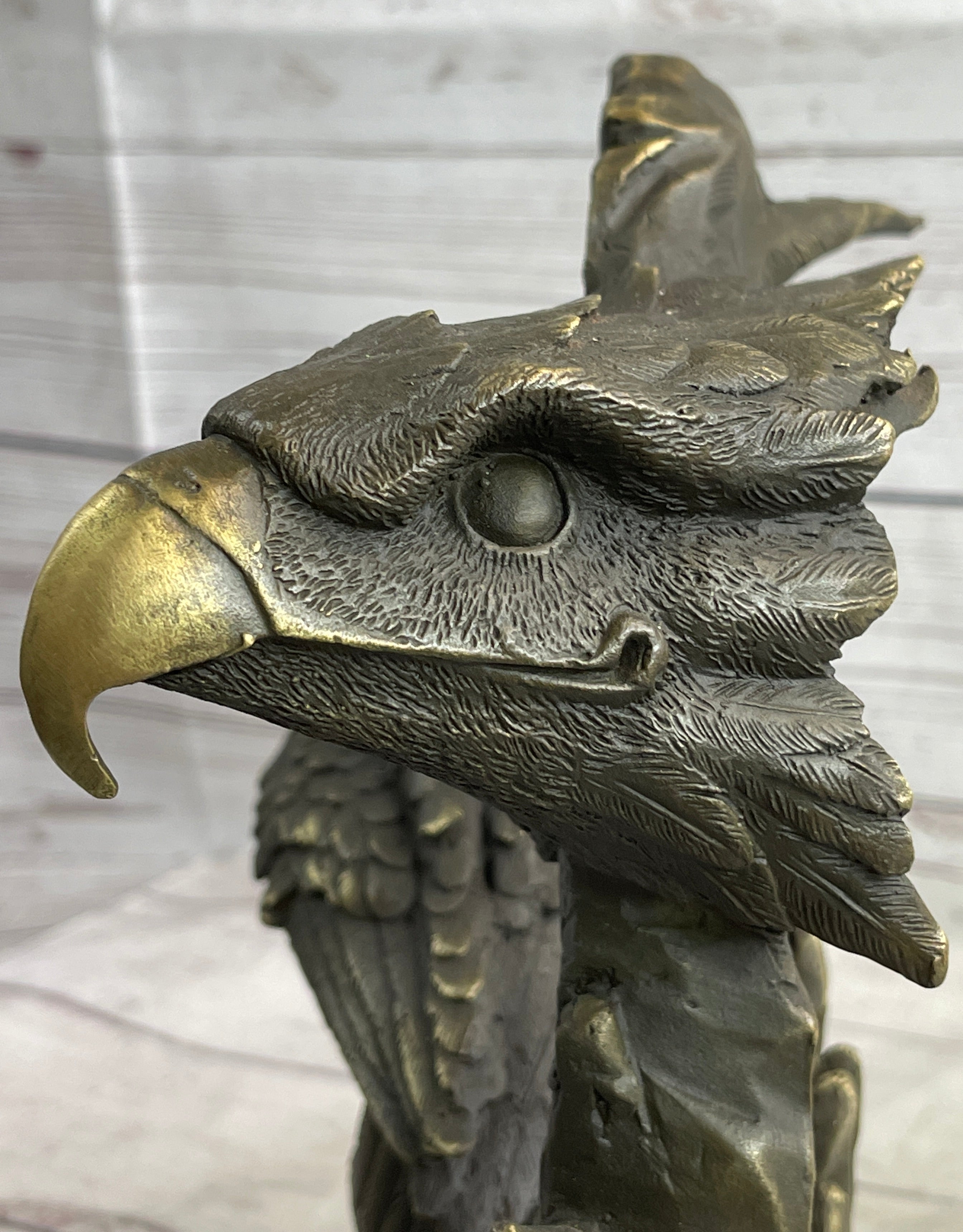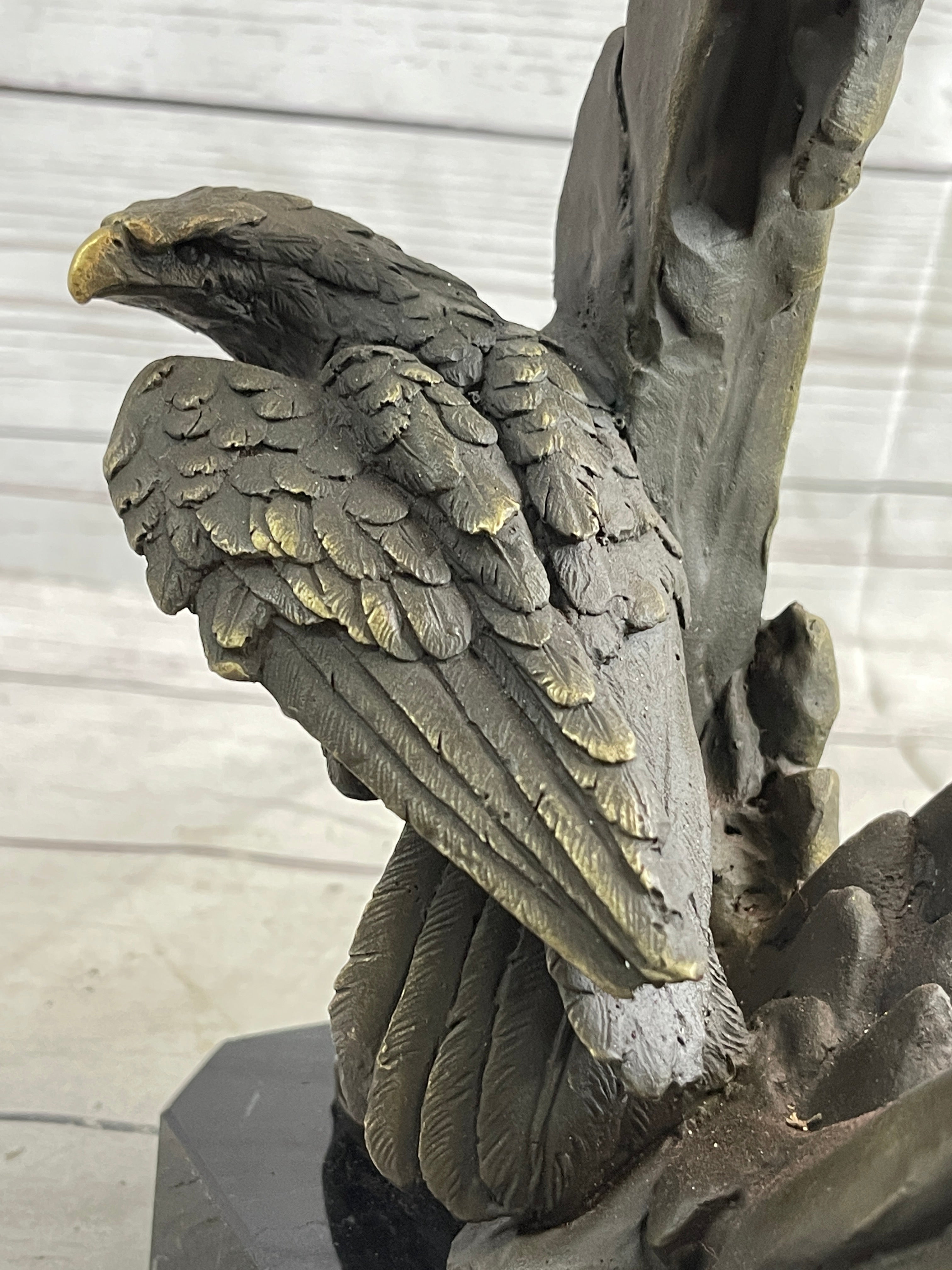 Embrace the awe-inspiring presence of the eagle and bring its profound symbolism into your space with this remarkable handmade bronze sculpture. Perfect for collectors, nature enthusiasts, and those seeking to evoke the spirit of strength, wisdom, and spiritual enlightenment.Bronze Dimensions with Marble Base: Height 10.5" X Width 8"