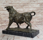 Crafted with 100% bronze using the ancient lost-wax method, this artwork is a true masterpiece, showcasing the craftsmanship and attention to detail that brings this fierce creature to life. The rich two-tone brown patina adds depth and character to the bull’s form, accentuating the dynamic folds of muscle and the curling of his tail as he springs into action. The tension in his body is palpable, capturing a moment of frozen intensity that will resonate with admirers of both art and nature.