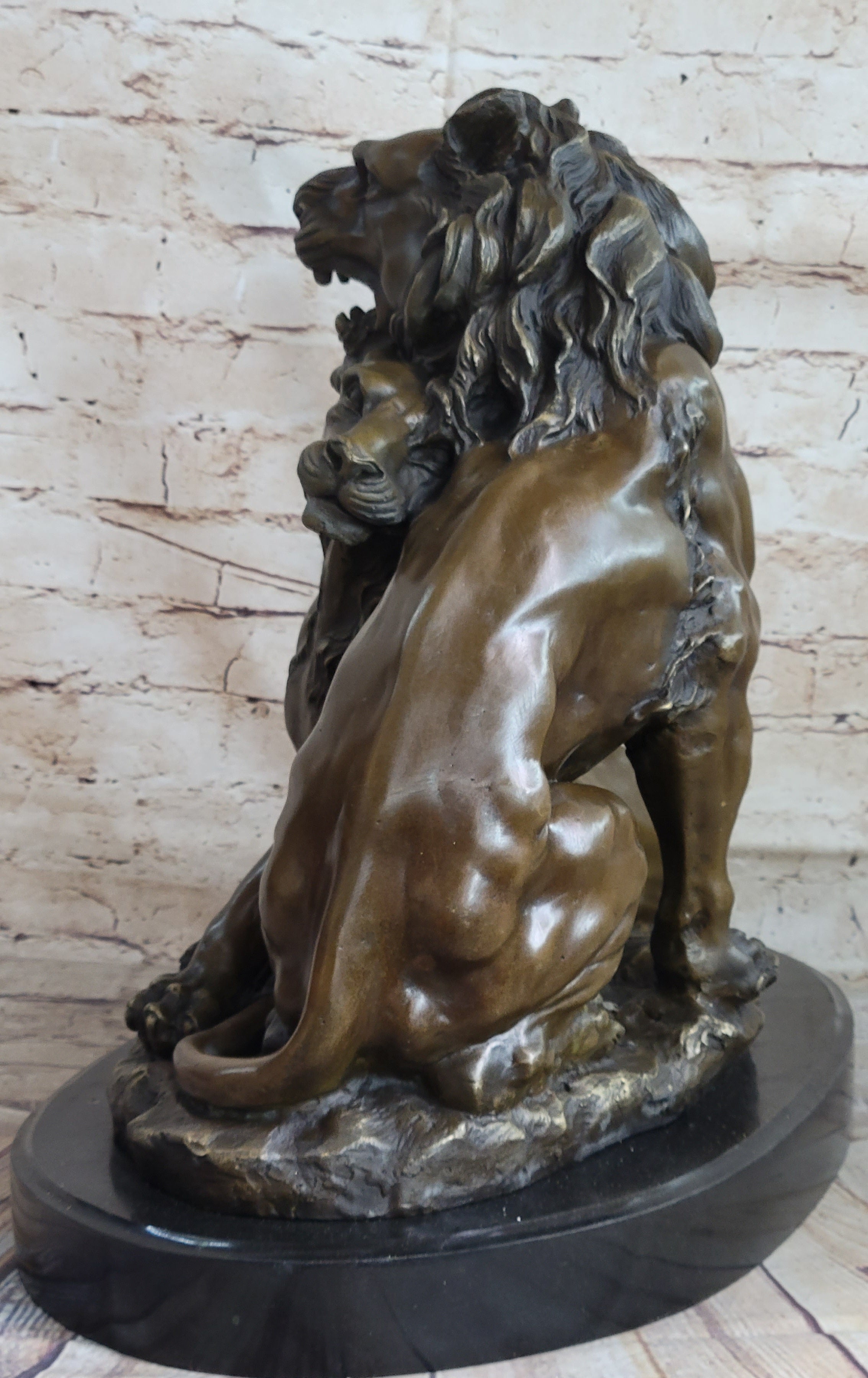 Male & Female Lion Necking Romantic Love Bronze Statue Sculpture Figure on Marble Base