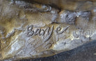 Crafted with exquisite detail, this bronze sculpture captures the raw beauty and majesty of these magnificent creatures. Handmade with precision and care, it boasts a rich brown patina finish that accentuates every intricacy of their forms. Mounted on a sturdy black marble base and signed by the renowned artist Barye, this sculpture is not only a stunning work of art but also a heartfelt tribute to the enduring bond between father and son.Bronze Dimensions with Marble Base: Height 15" X Width 16"