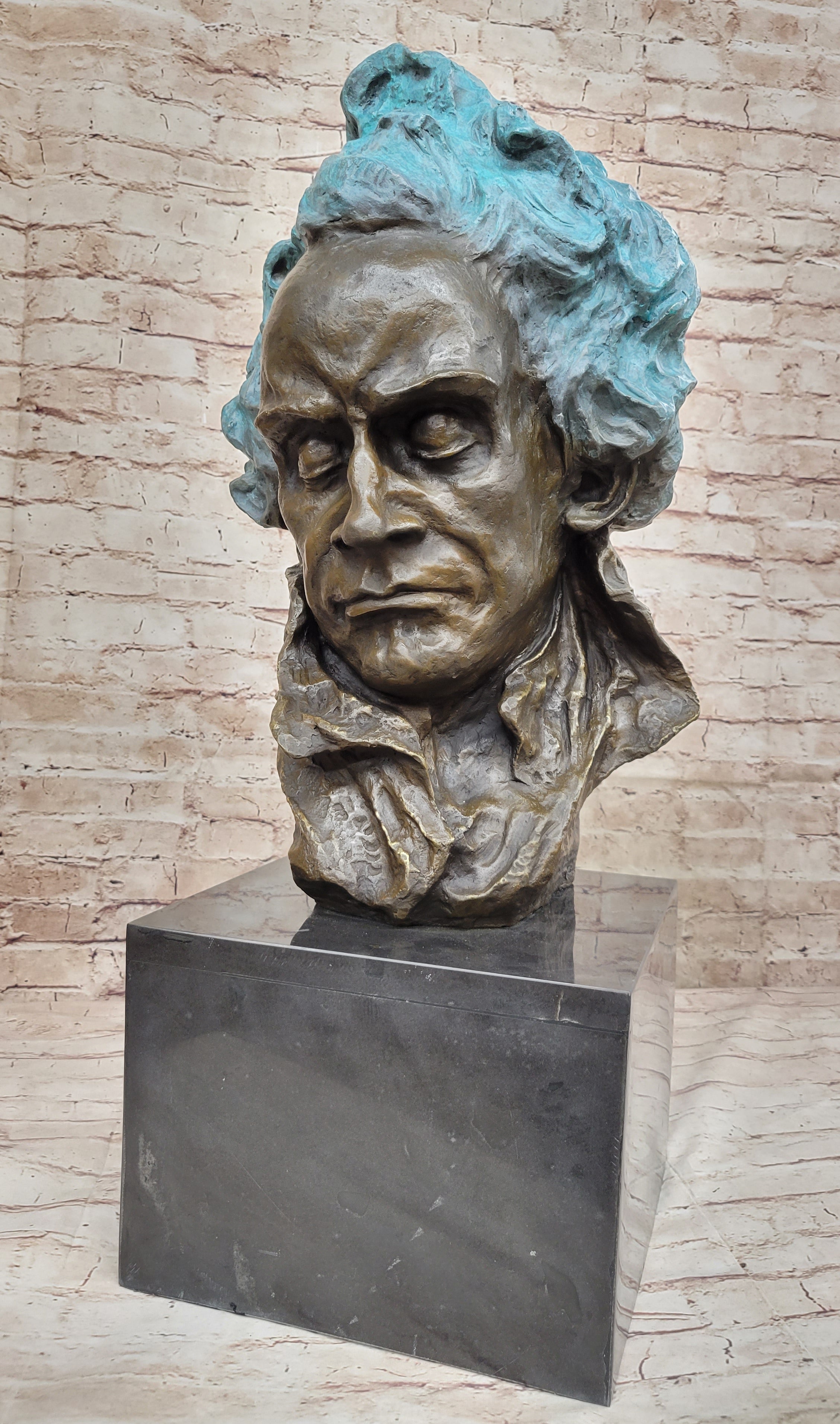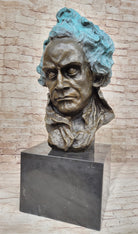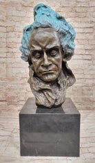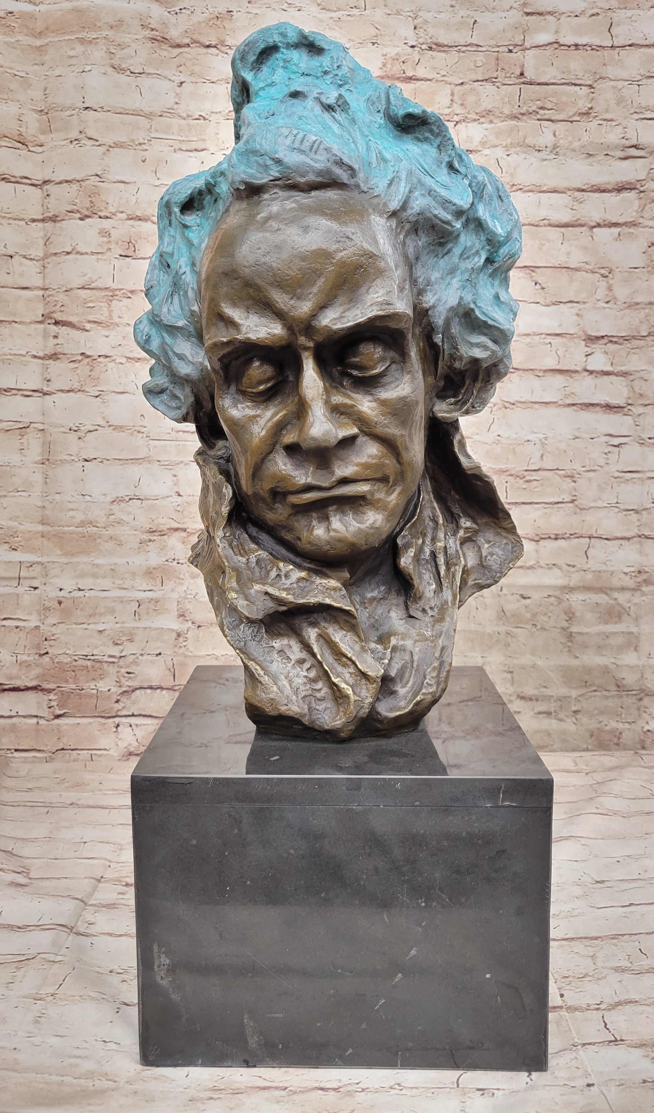 Extra Large Handmade Bronze Bust of Ludwig van Beethoven on Marble Base - Signed by Milo