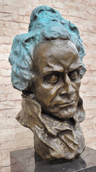 Introducing a magnificent handmade bronze bust of the legendary composer Ludwig van Beethoven, crafted by the renowned artist Milo. This extra-large bronze sculpture captures the essence of Beethoven’s genius with incredible attention to detail, immortalizing his likeness in rich bronze. The bust features a stunning two-tone brown and green patina, which enhances its depth and visual appeal, bringing a sense of life to the piece.