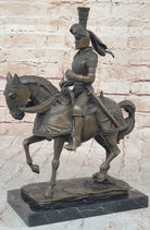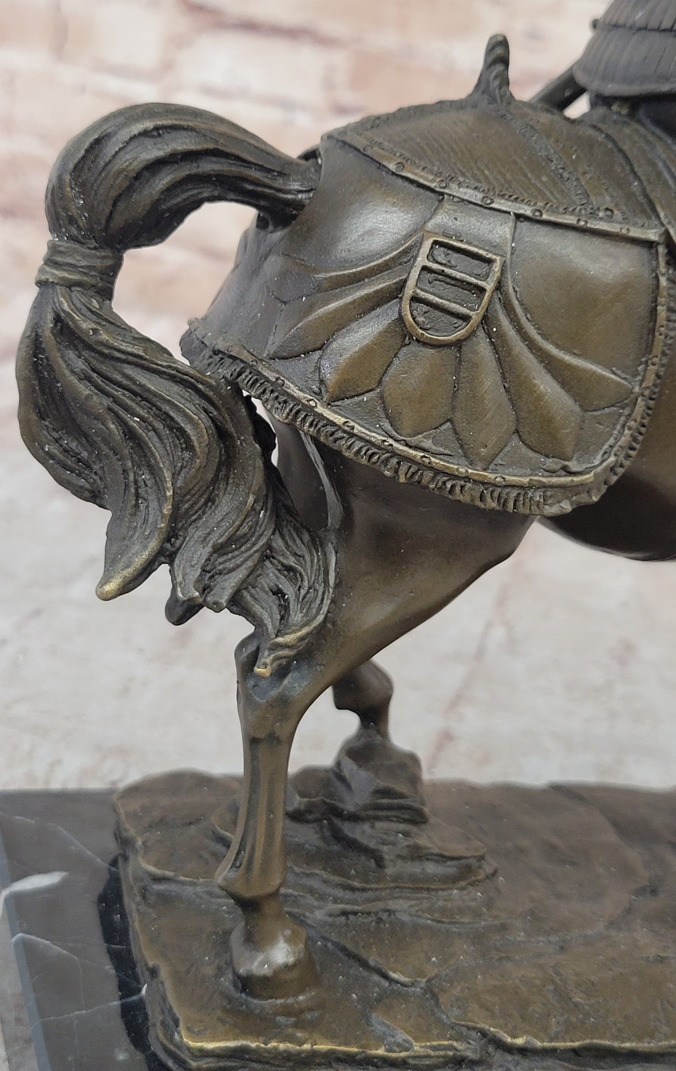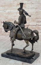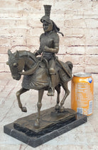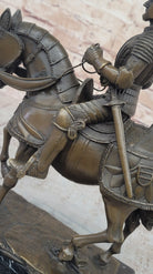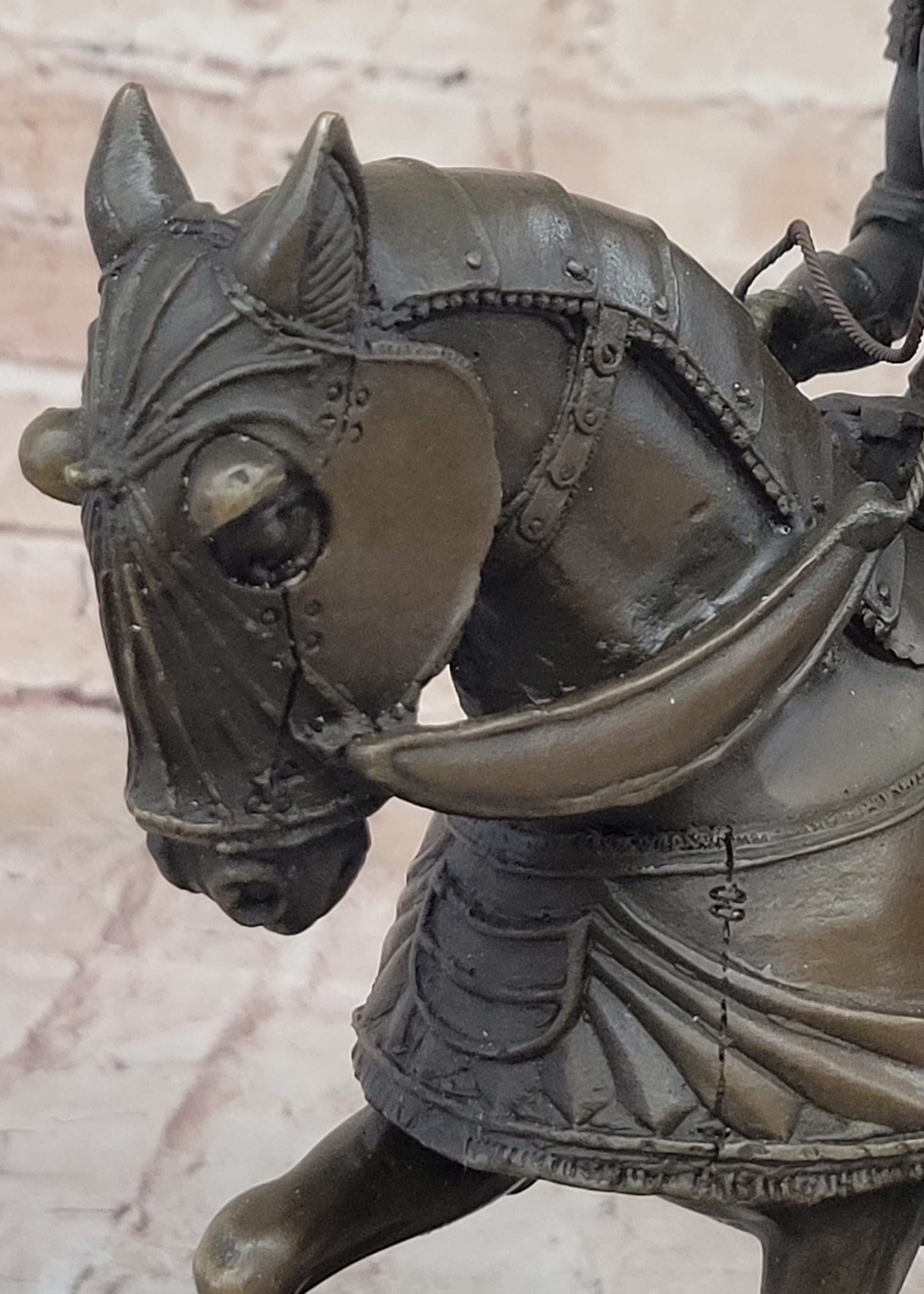 Medieval Chivalrous Knight on Horseback Bronze Sculpture Statue on Marble Base