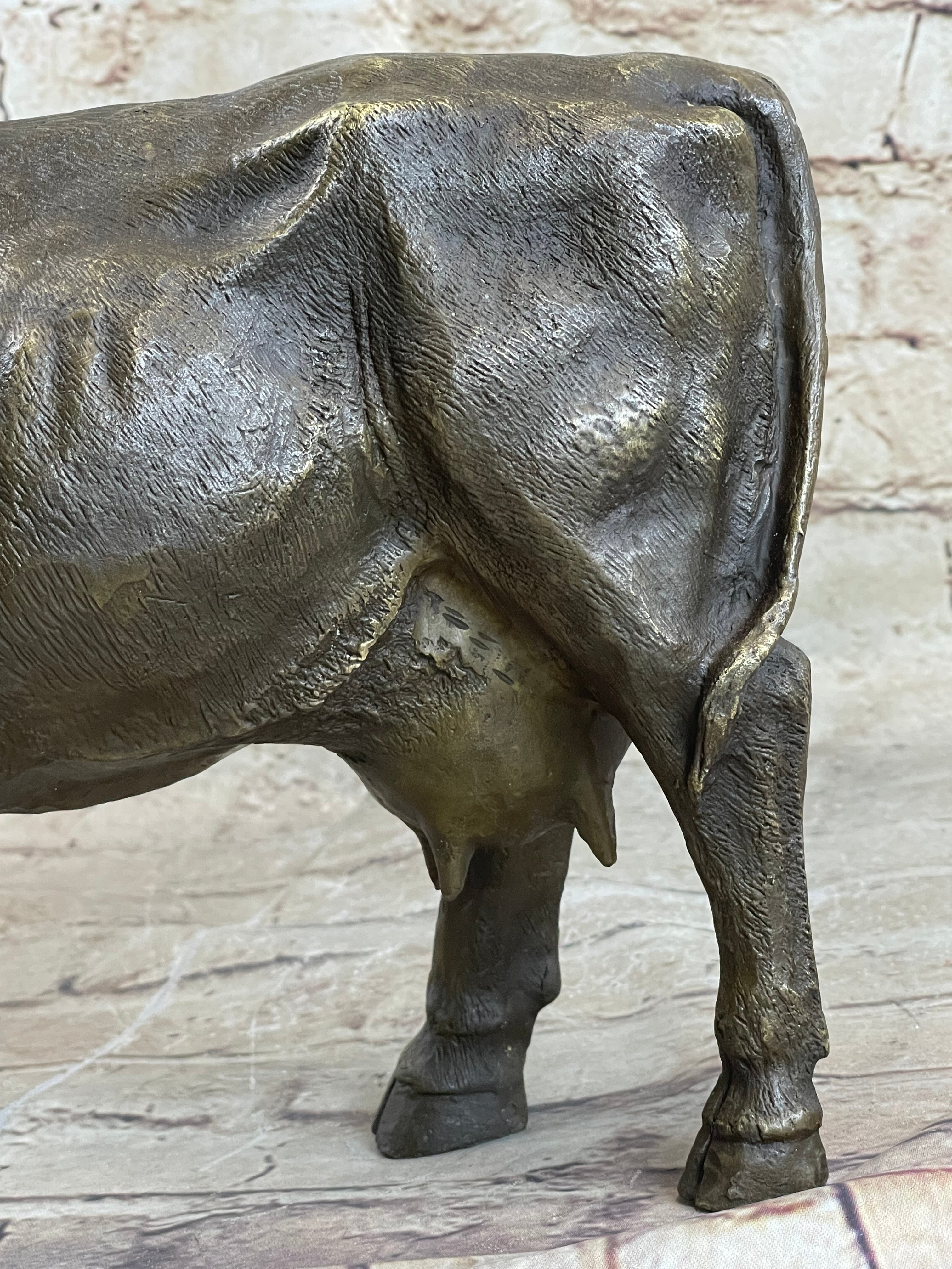 Milk Cow Cattle Bronze Statue Sculpture Figure Figurine Farm Decor 9" x 11"