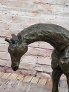 The sculpture captures the essence of the giraffe in a lifelike manner, showcasing exquisite details and a captivating patina/finish that adds depth and character to the artwork. Imported from Spain, this bronze sculpture is in pristine condition, ready to grace your space with its captivating presence and create an ambiance of elegance and sophistication. Whether displayed in a home, office, or gallery, this remarkable piece celebrates the awe-inspiring beauty of nature and serves as a testament to the artist's skill and craftsmanship.