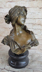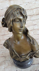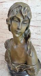 Milo “Maiden’s Gaze” – Elegant Bronze Female Bust Sculpture on Marble Base