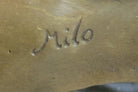 Crafted using the ancient lost wax method, perfected over millennia, this sculpture stands as a testament to both the artist's skill and the enduring appeal of bronze as a medium. Poised on a sleek black marble base and bearing the signature of "Milo," this piece embodies authenticity and artistic excellence. Whether gracing your home or business, this captivating artwork adds an element of sophistication and refinement that captivates all who encounter it. Don't miss the opportunity to make this timeless piece a cherished part of your collection.Bronze Dimensions with Marble Base: Height 14" X Width 9"