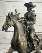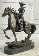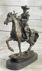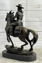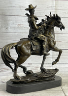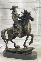 Miniature Bronze Cowboy on Horseback Statue Sculpture Figure Marble Base 14" x 7"