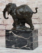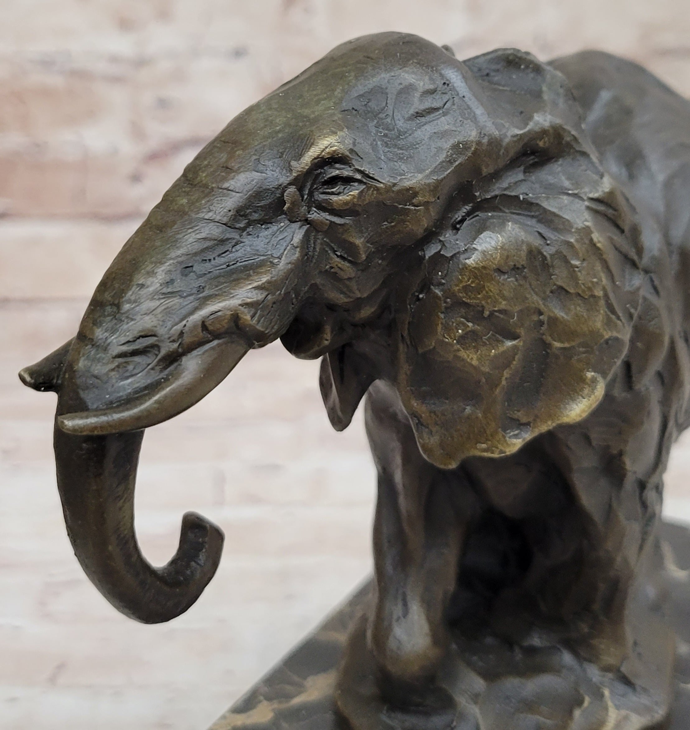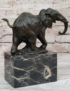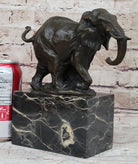 Miniature Elephant Bronze Metal Figurine Sculpture on Marble Base Signed Original