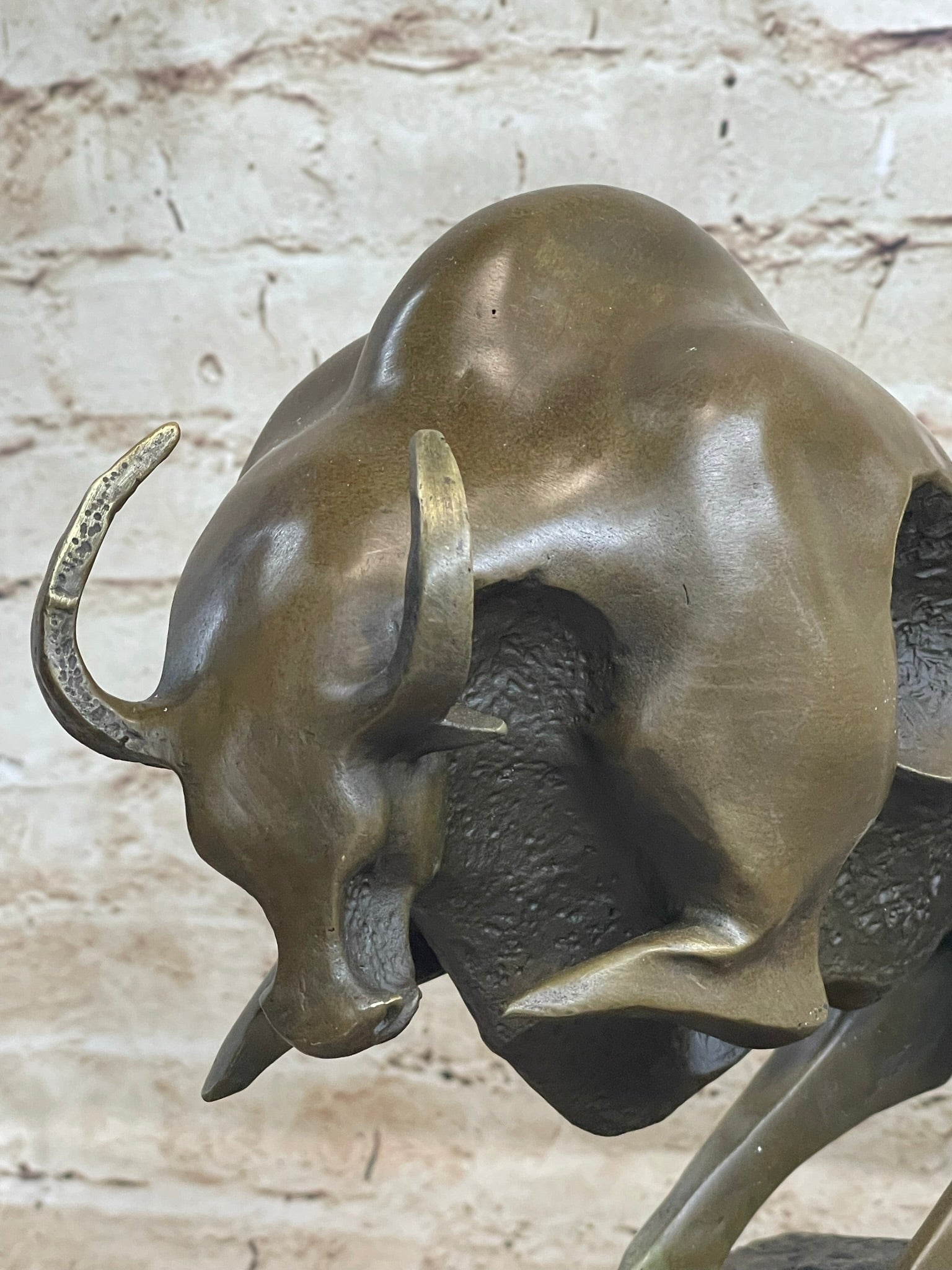 Abstract Surreal Charging Bull Bronze Statue Sculpture Figure Modern Art Deco 10"x 14"