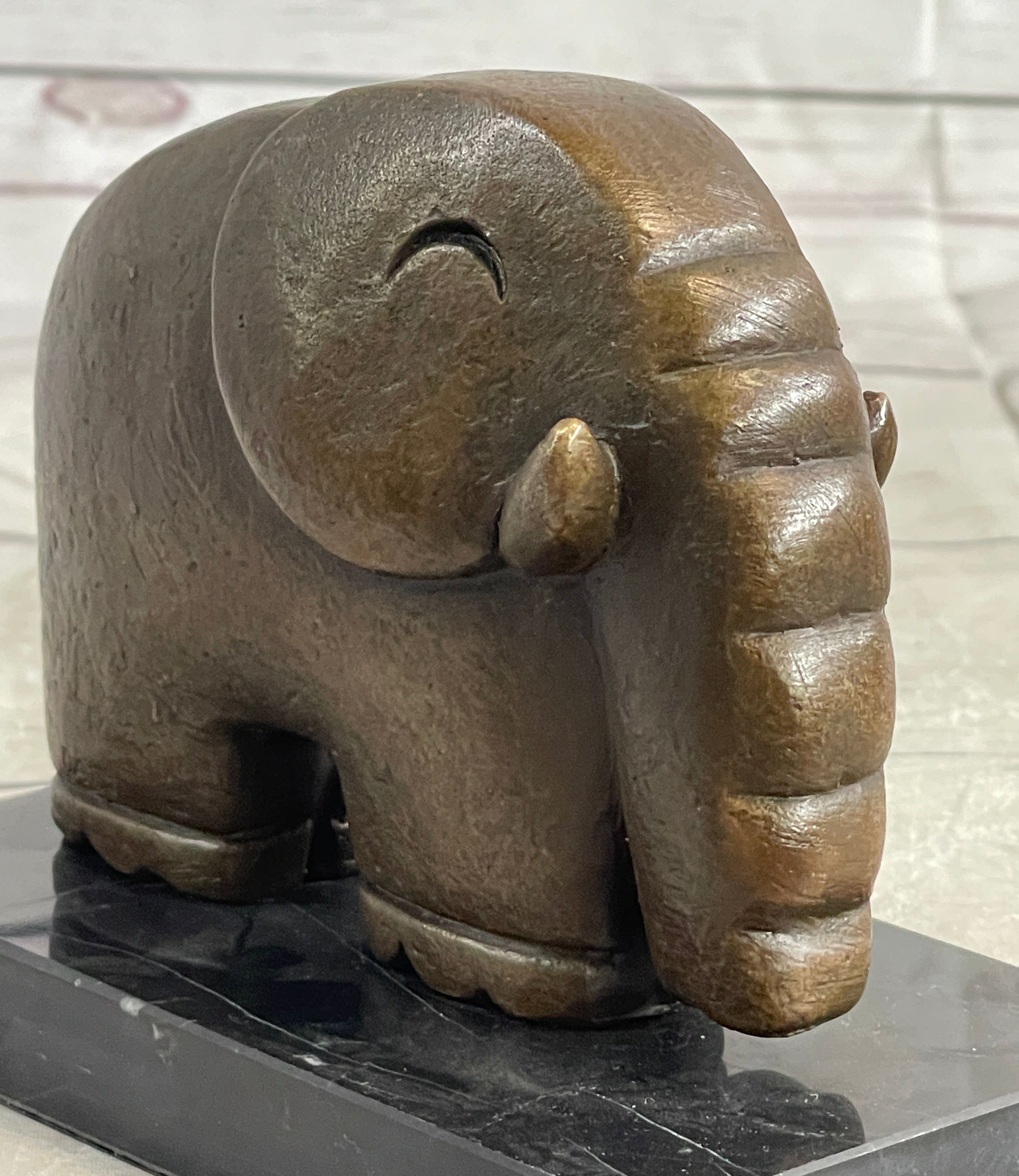 Modern Art Abstract Elephant Bronze Sculpture Statue Signed Dali on Marble Base