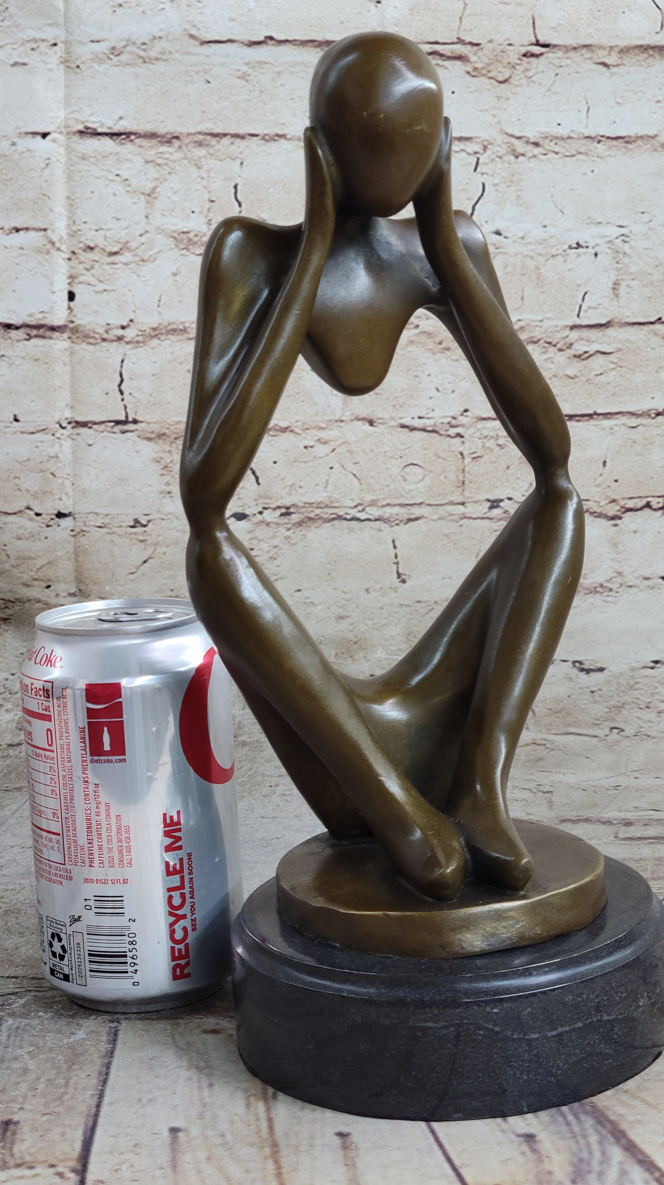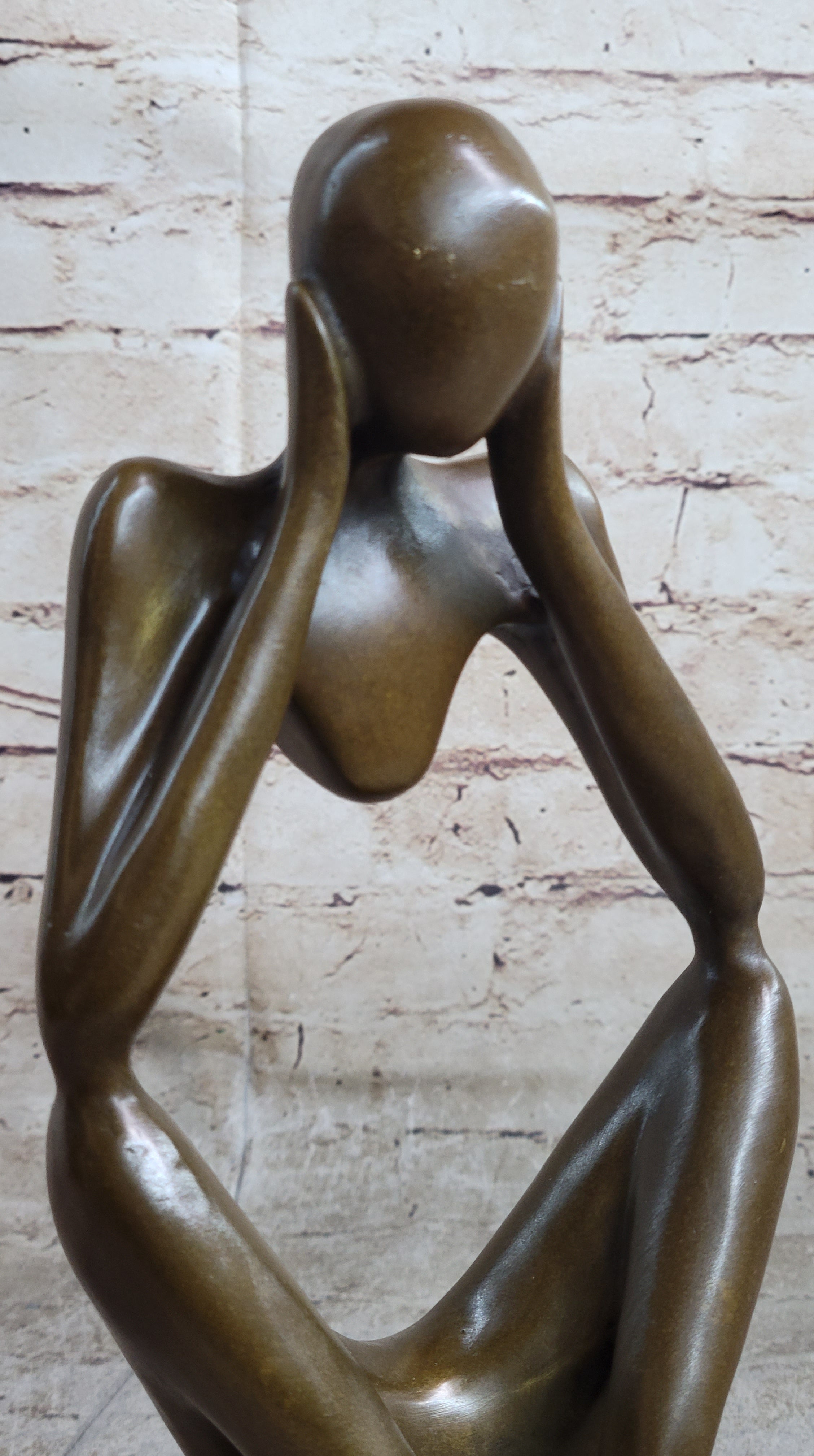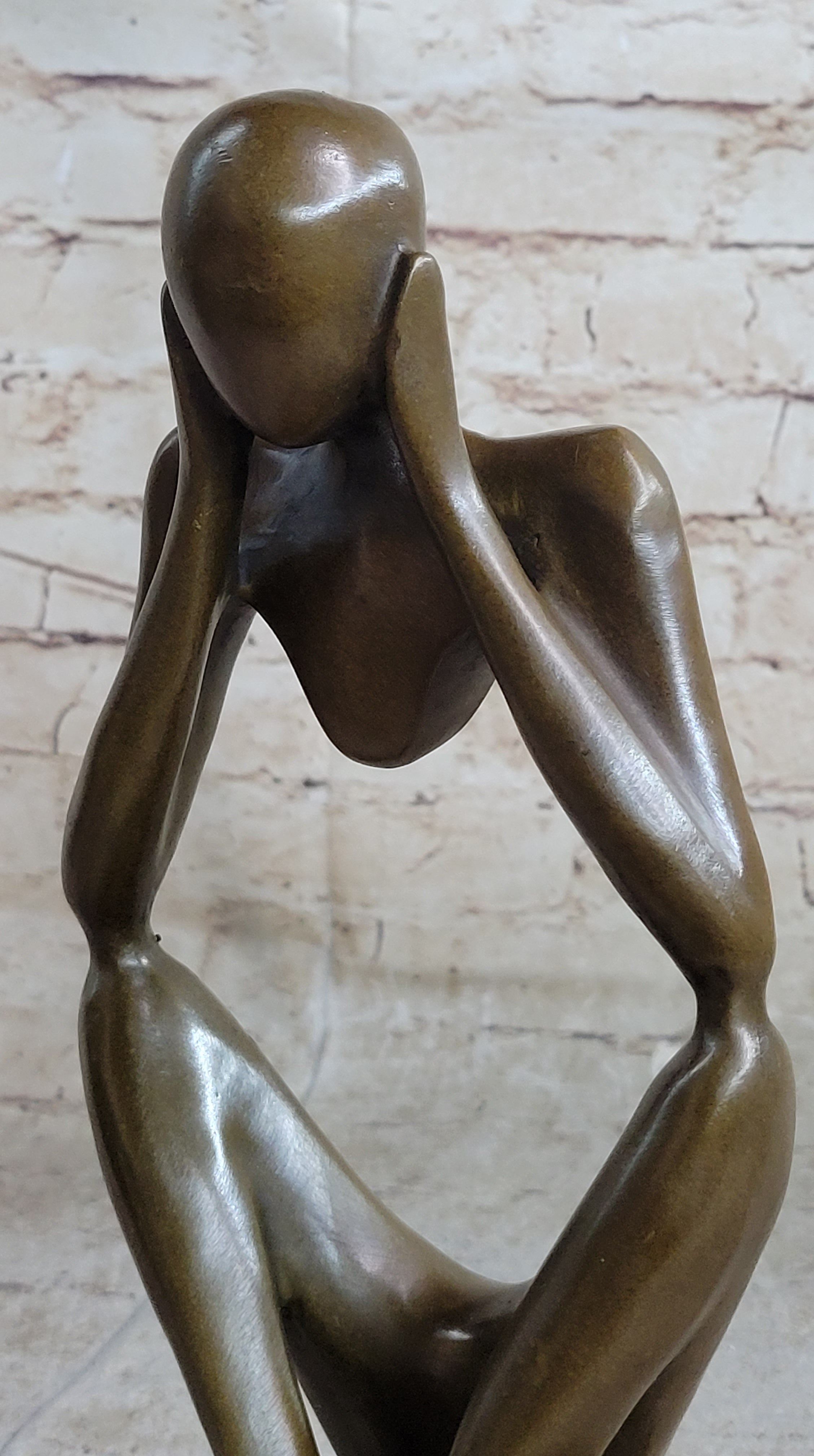 This modern art Cubism bronze sculpture on marble-base was made after an idea of Fransisci. The sculpture is an abstract portray of a sitting man pretending not hearing. Though the sculpture is made of 100% bronze the figure is coloured in an extraordinary way. The sculpture of the Man is abstract but some typical Male attributes are still visible. The sculpture is a great recast in an amazing agreement to the original. Our modern art figure is affixed on a flat and solid marble-base and signed with the signature of the great artist Francsisci.