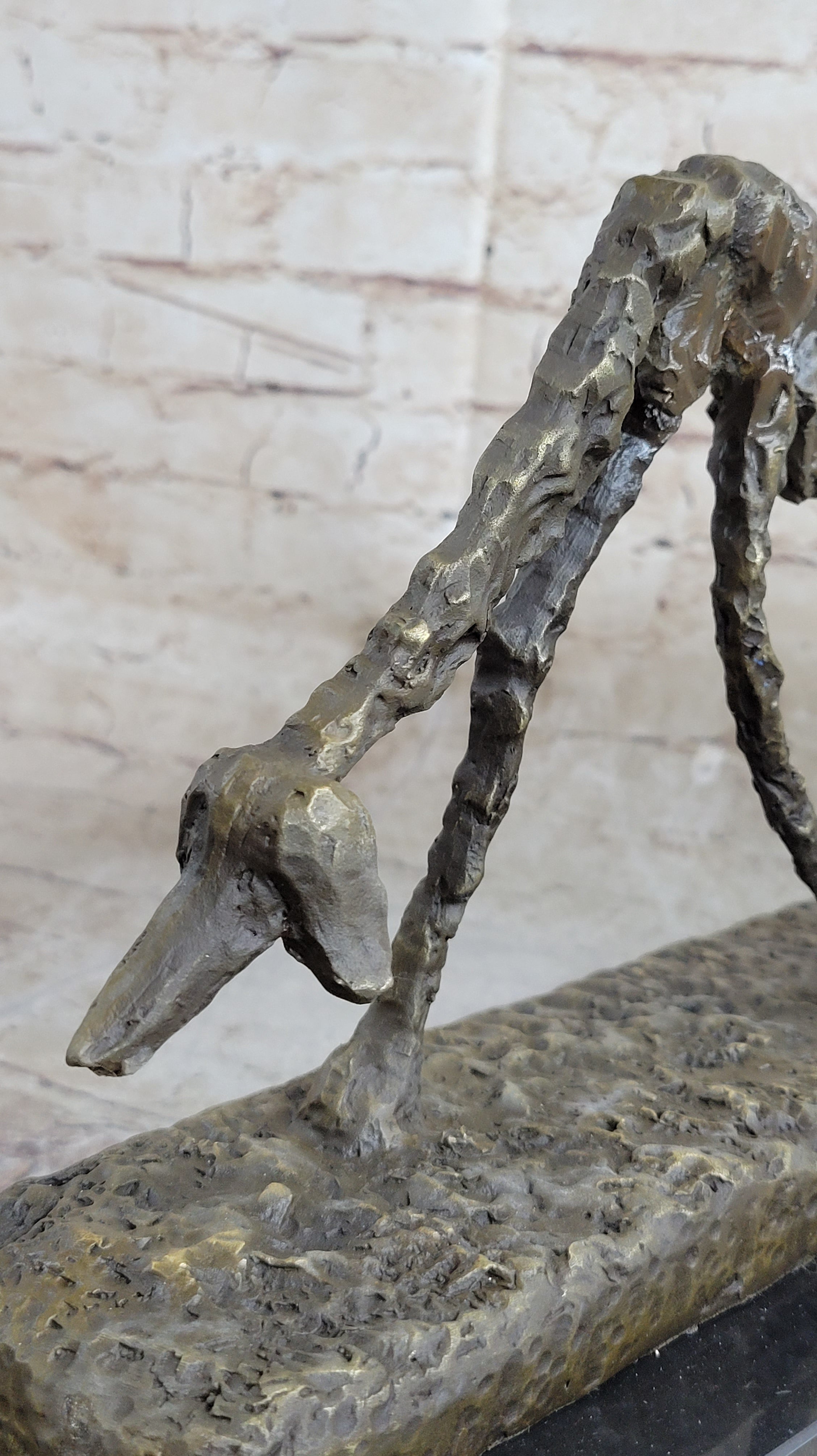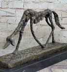This remarkable sculpture, titled "Dog," is a creation of the renowned surrealist sculptor Alberto Giacometti in 1951. While it bears a simple title, the sculpture itself is anything but ordinary. Giacometti's work is celebrated for its ability to convey complex emotions and ideas through minimalist forms. Intriguingly, this sculpture captures the essence of a Saluki dog, an ancient breed known for its elegance and hunting prowess. Some dog researchers consider the Saluki to be the oldest breed of dog in the world, and Giacometti's sculpture pays homage to the unique character and history of this breed. Giacometti's inspiration for this piece came from a moment of introspection as he walked along Rue de Vanves in the rain. He described feeling akin to a dog at that moment, and this sensation led him to create the sculpture. The sculpture's sad and introspective expression is a reflection of this emotional connection between the artist and the subject matter. As with much of Giacometti's work, "Dog" invites viewers to contemplate the human condition and our relationship with the world around us. It's a testament to the power of art to capture the essence of life and emotion in its simplest forms.