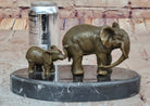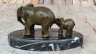 Mother and Child Elephant & Calf Barye Bronze Sculpture on Marble Base