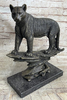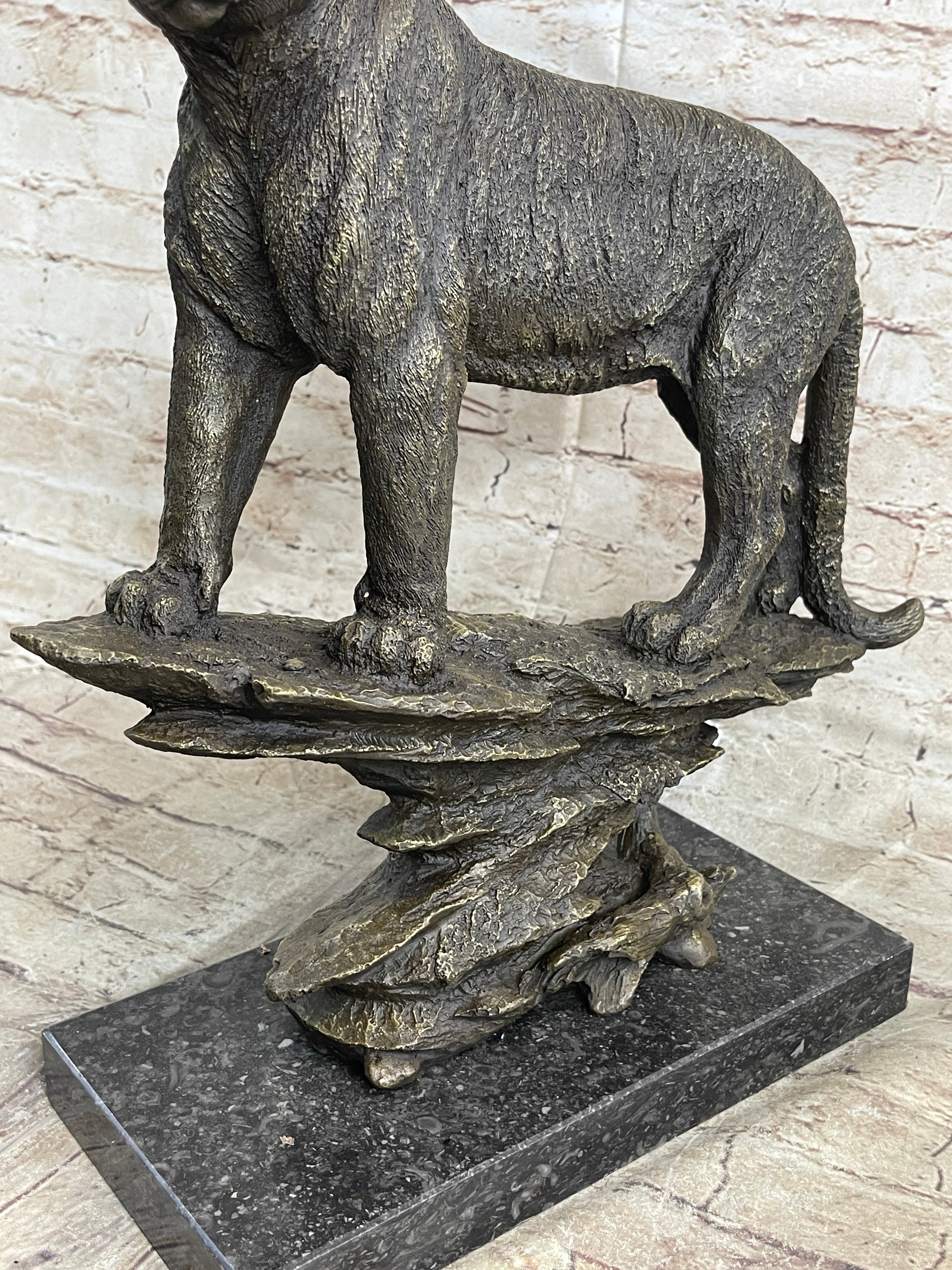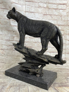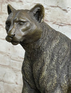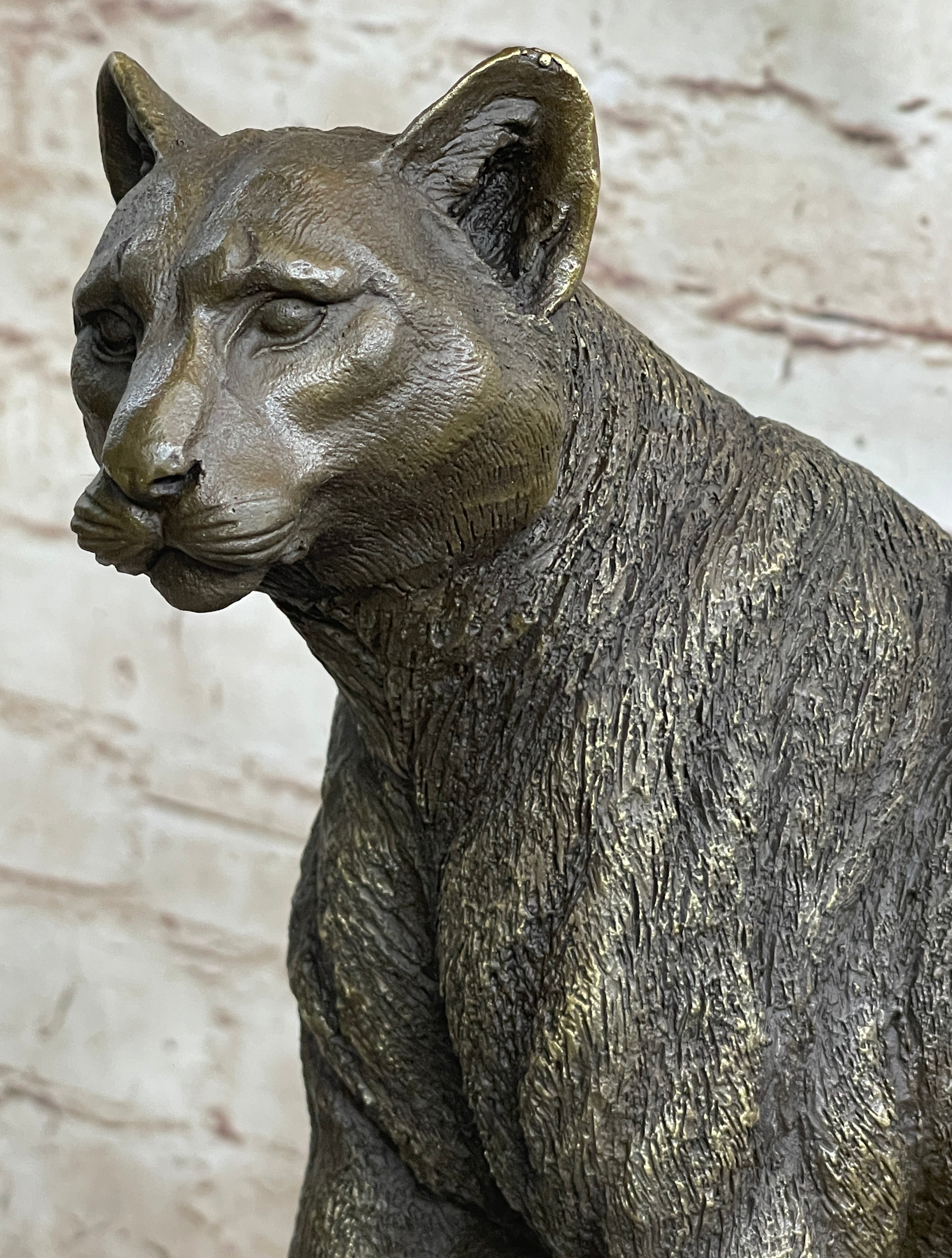 Mountain Lion Puma Panther Cougar Bronze Sculpture Statue Figure on Marble Base