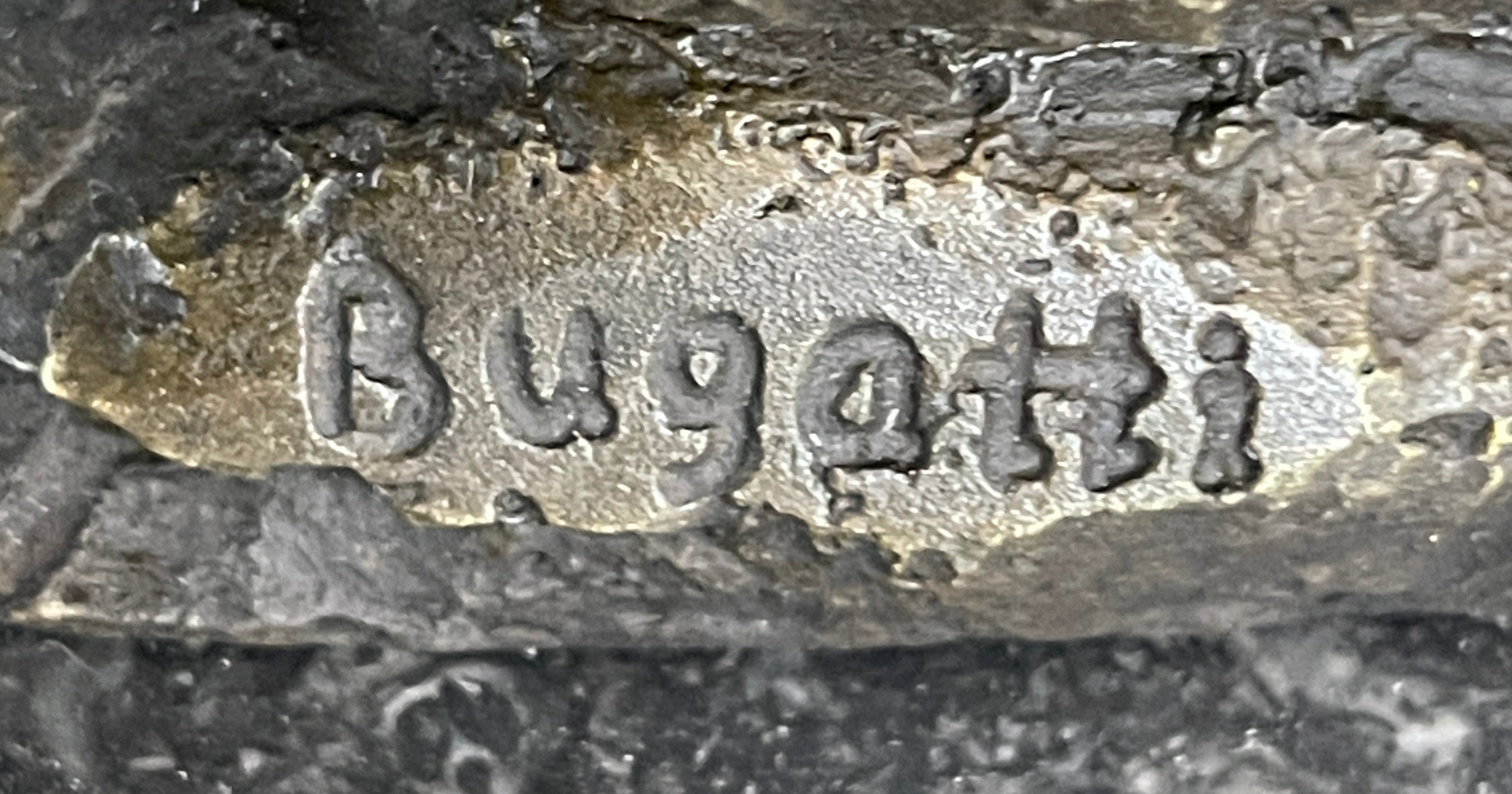 This remarkable bronze sculpture, crafted using the meticulous "Lost Wax Method" and adorned with a rich brown patina, pays homage to the mountain lion's majestic presence and its significance within American wildlife. Mounted on a sturdy marble base and meticulously handmade, this exquisite piece bears the signature of Bugatti, serving as a testament to the artist's skill and artistry, while capturing the enduring allure and enigmatic nature of this revered predator.Bronze Dimensions with Marble Base: Height 16" x Width 18"
