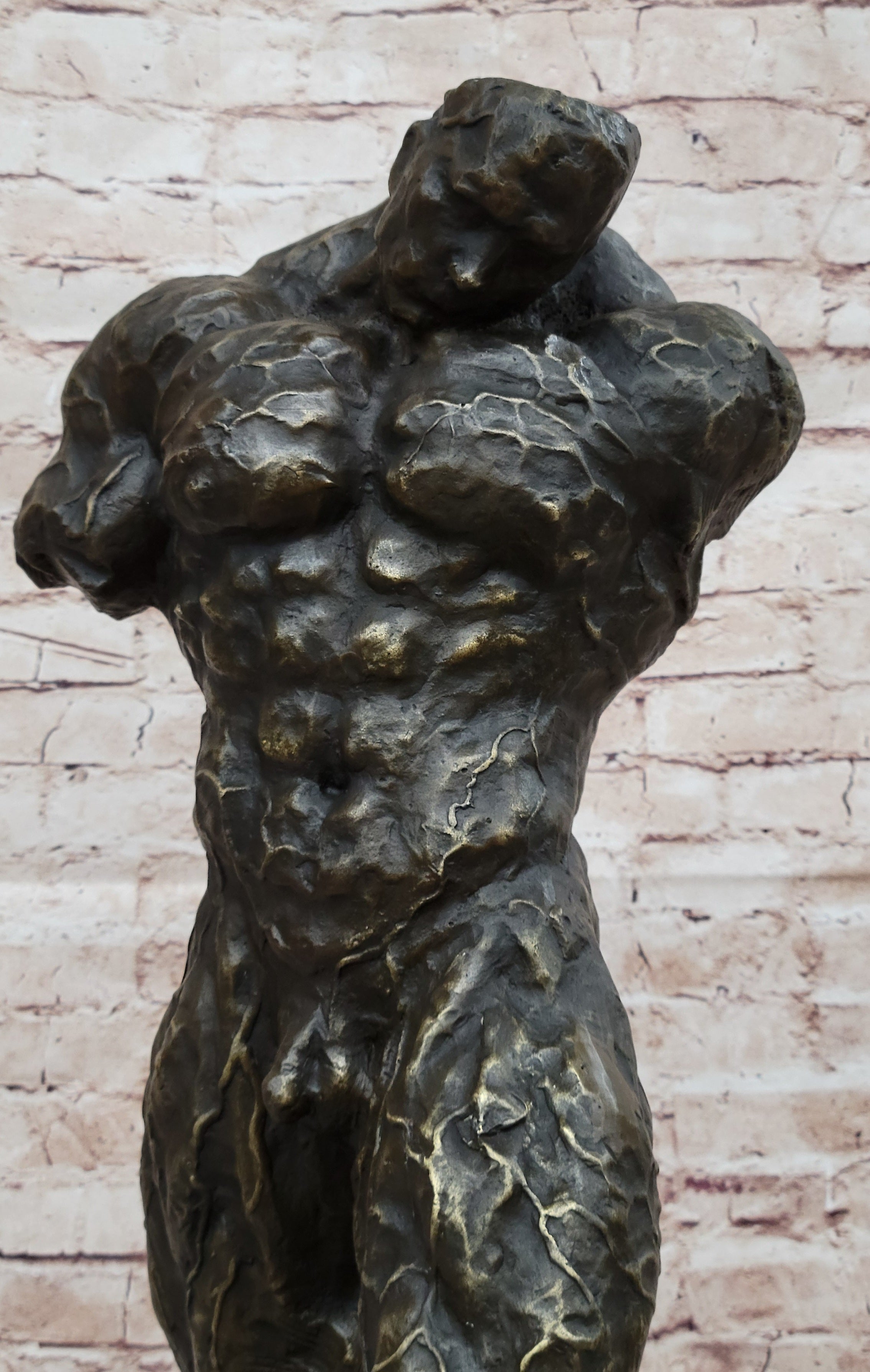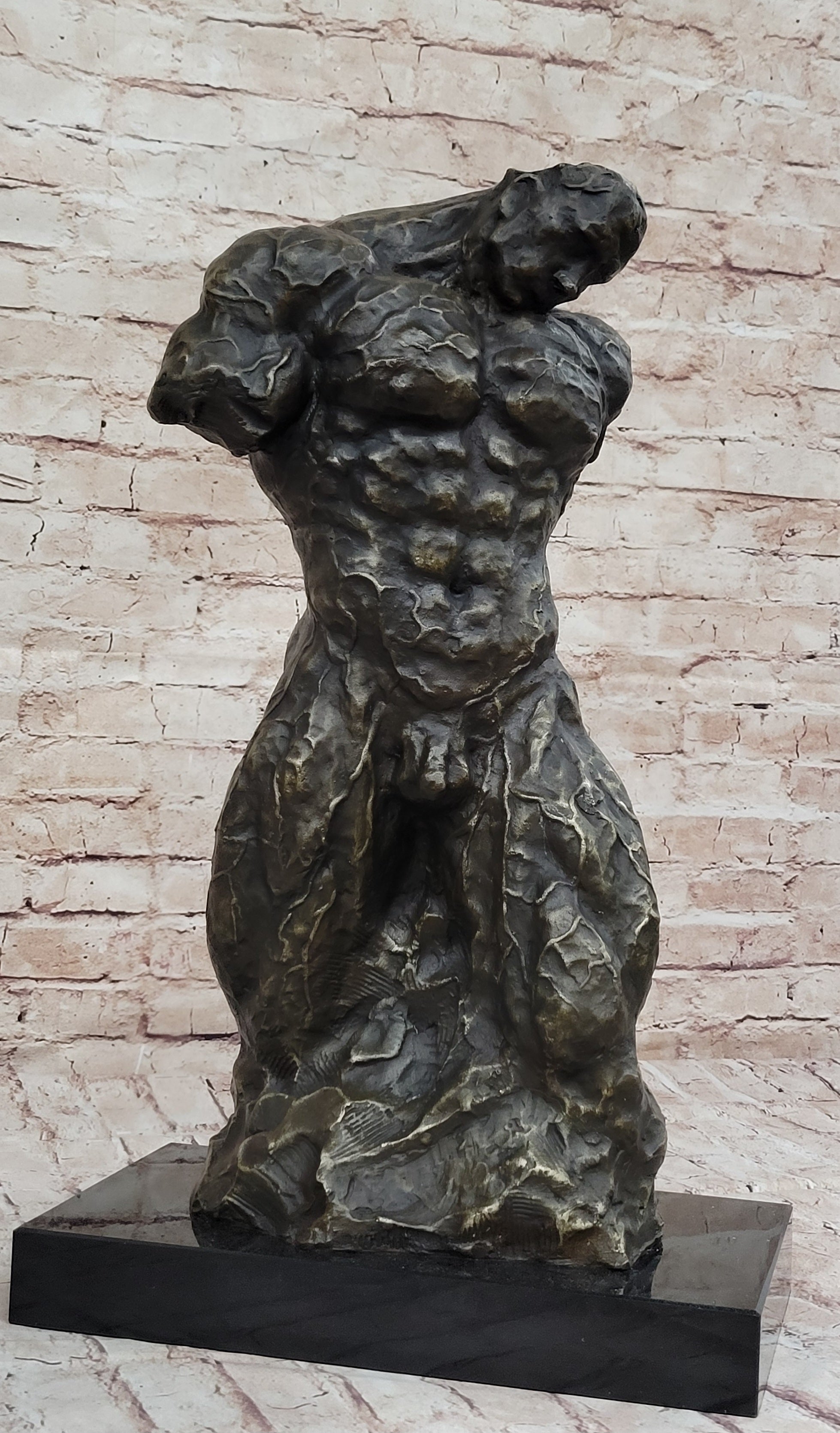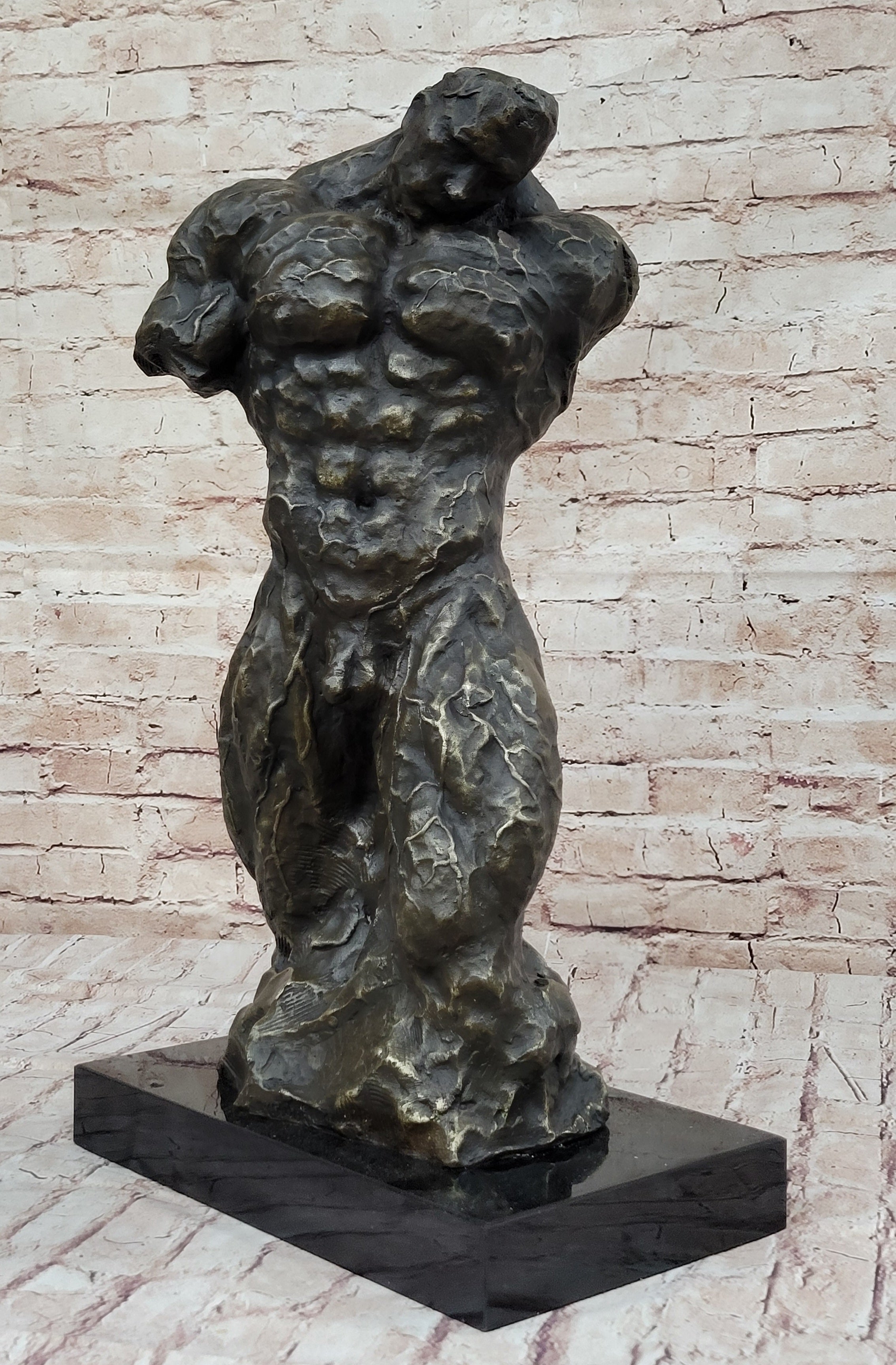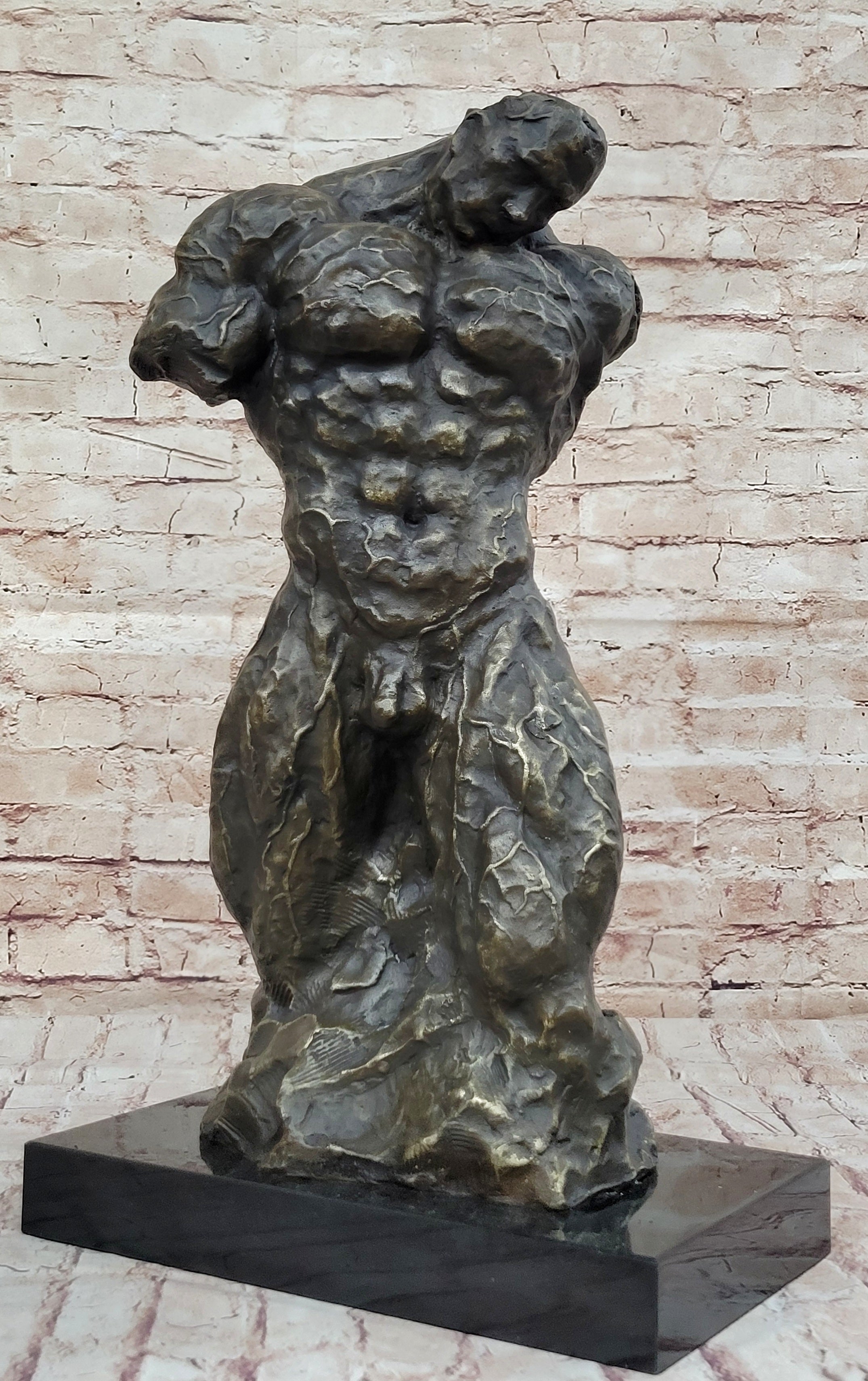 Muscular Nude Male Figure Abstract Surreal Bronze Statue Sculpture Original Art