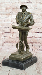 Signed by the artist Williams, the sculpture rests on a black marble base, giving it a polished, elegant finish suitable for display in homes, music studios, or galleries. This artwork stands as both a celebration of music and a powerful tribute to the enduring contributions of Black artists in American cultural history.Bronze Dimensions with Marble Base: Height 12" X Width 6"