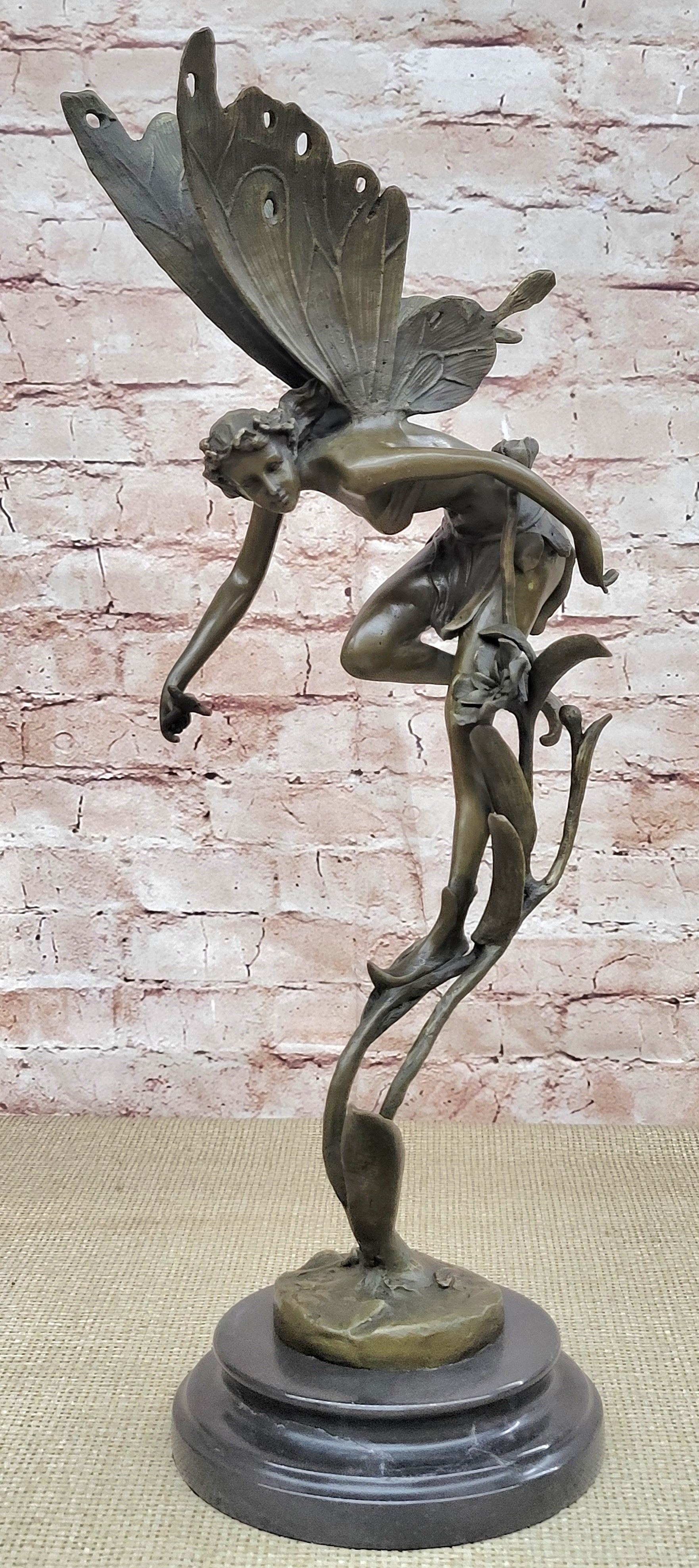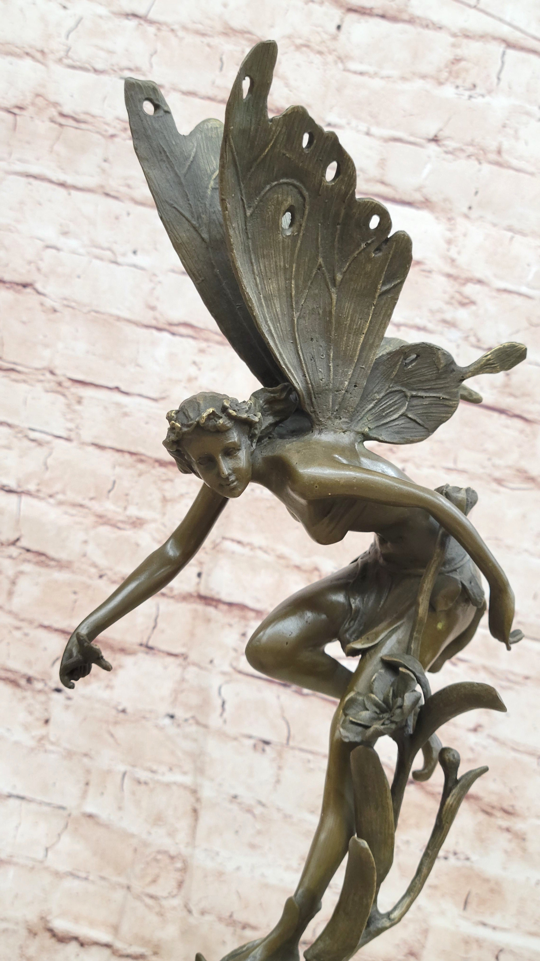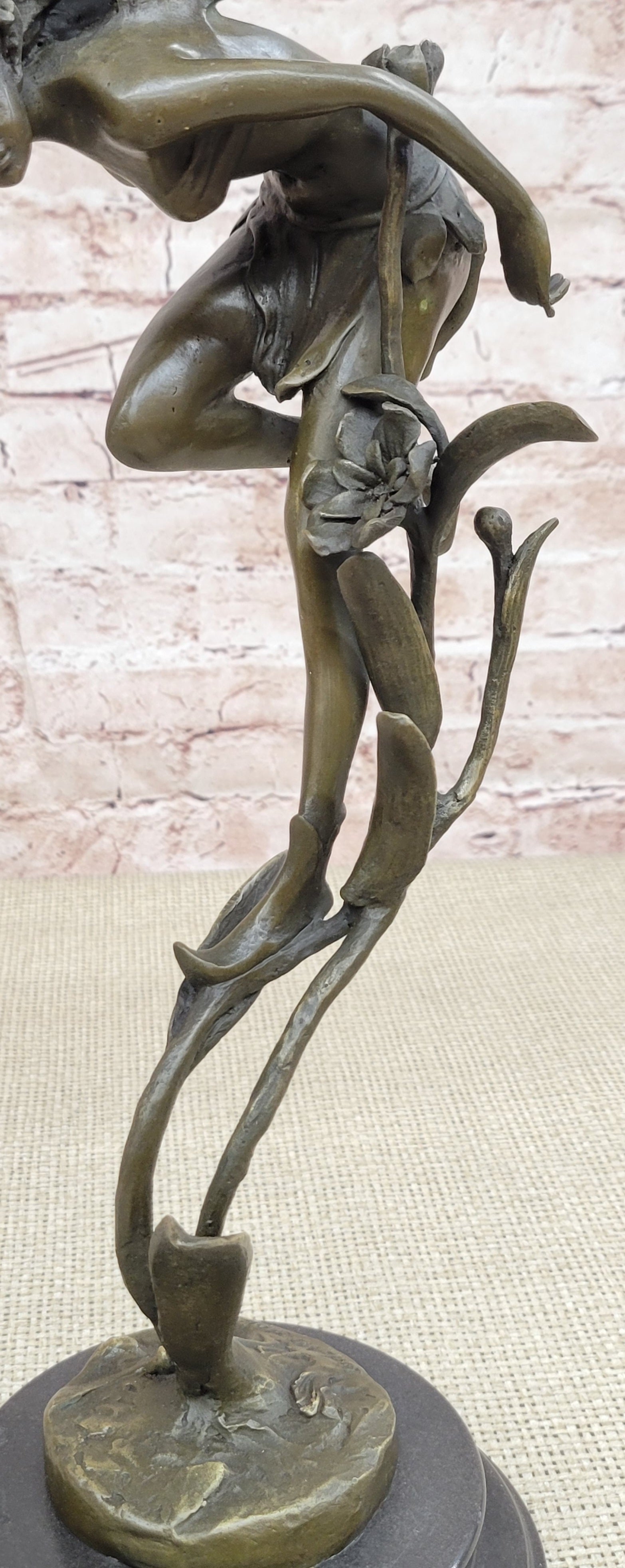 Mythical Fairy Nymph Flower Floral Scene Bronze Statue Sculpture Marble Base Art 19" x 7"