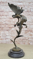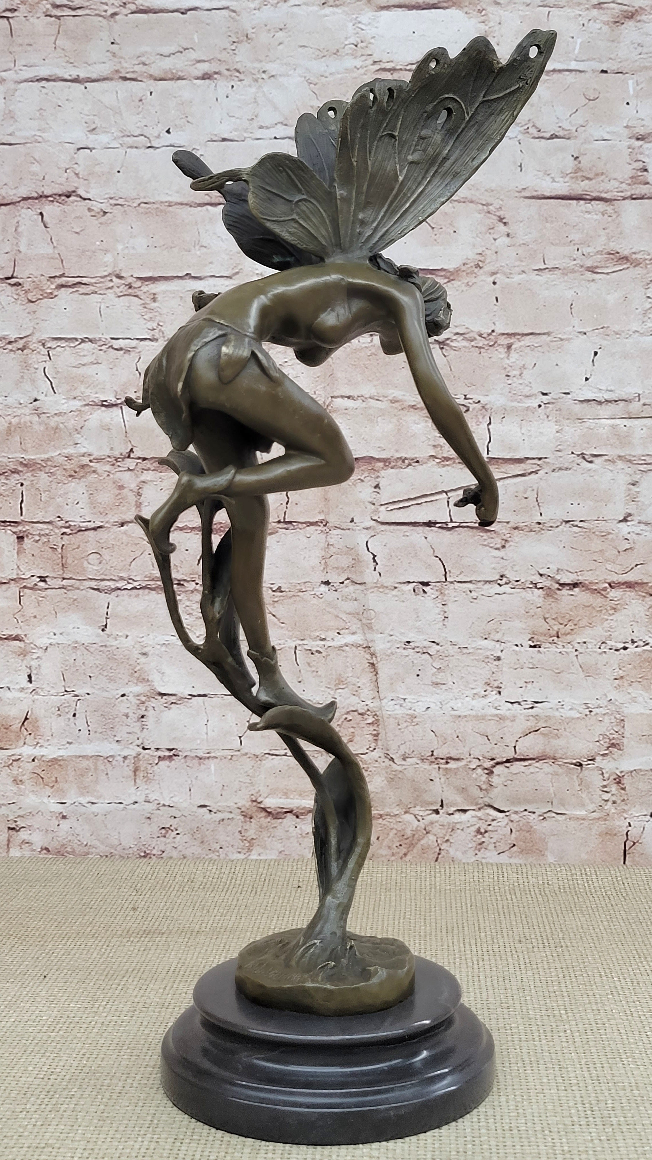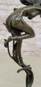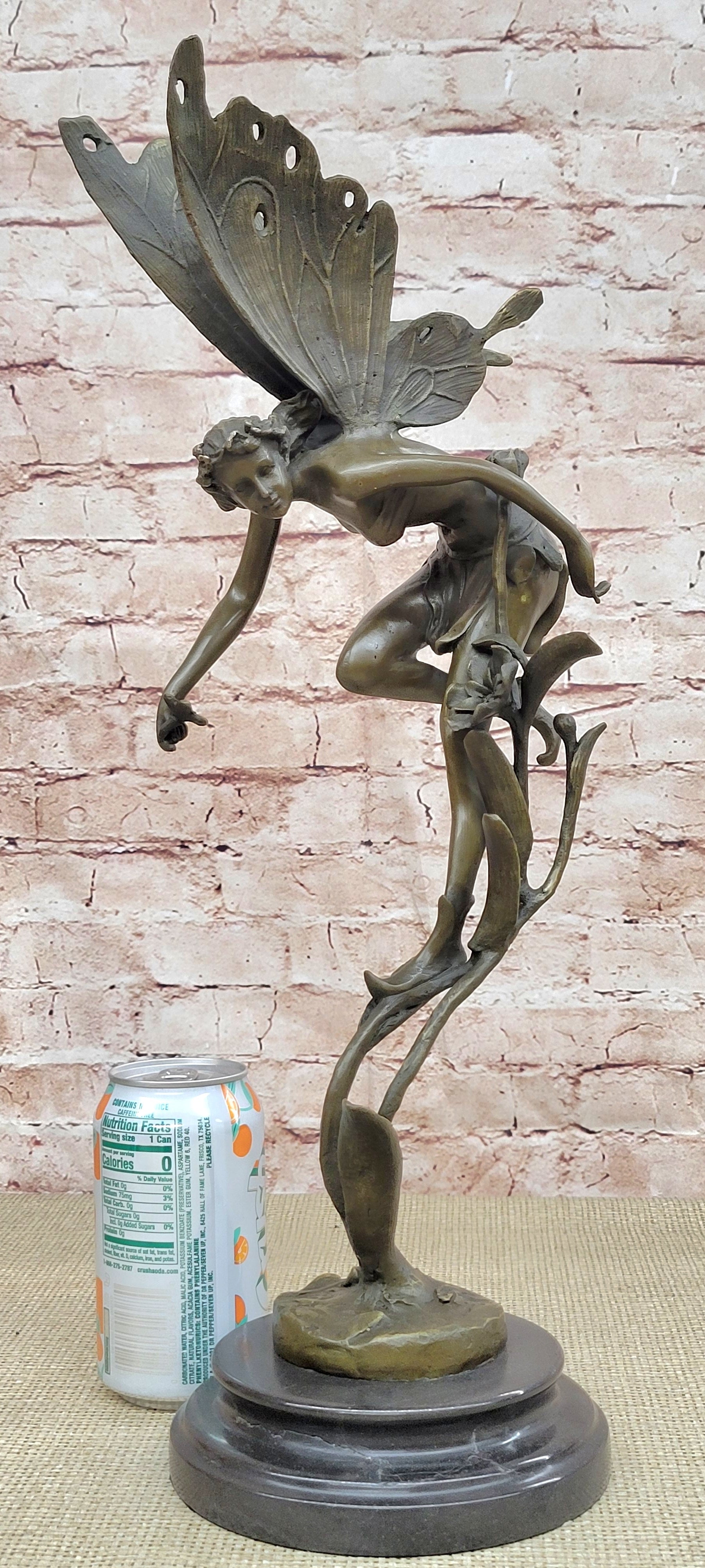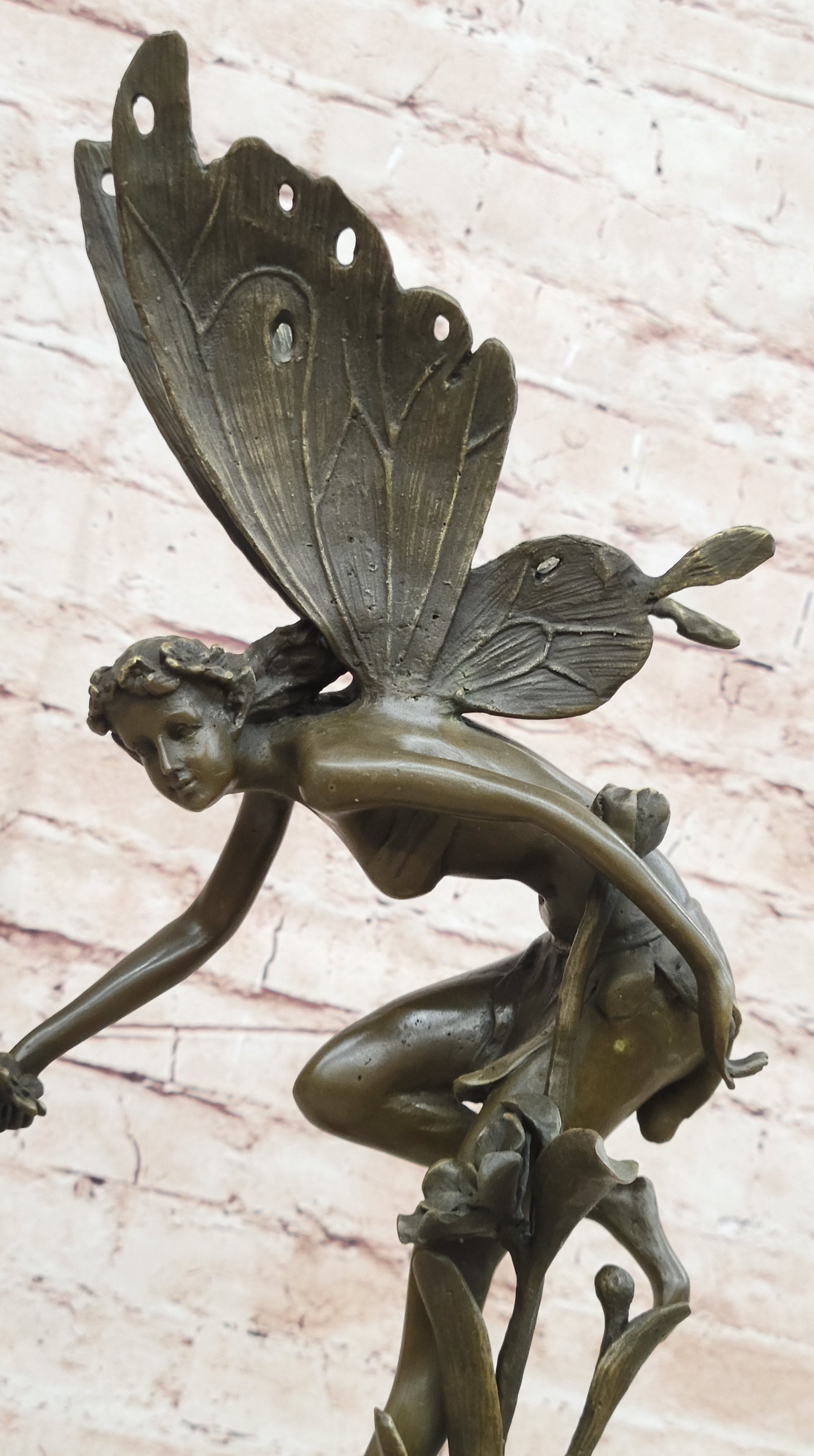 Mythical Fairy Nymph Flower Floral Scene Bronze Statue Sculpture Marble Base Art 19" x 7"