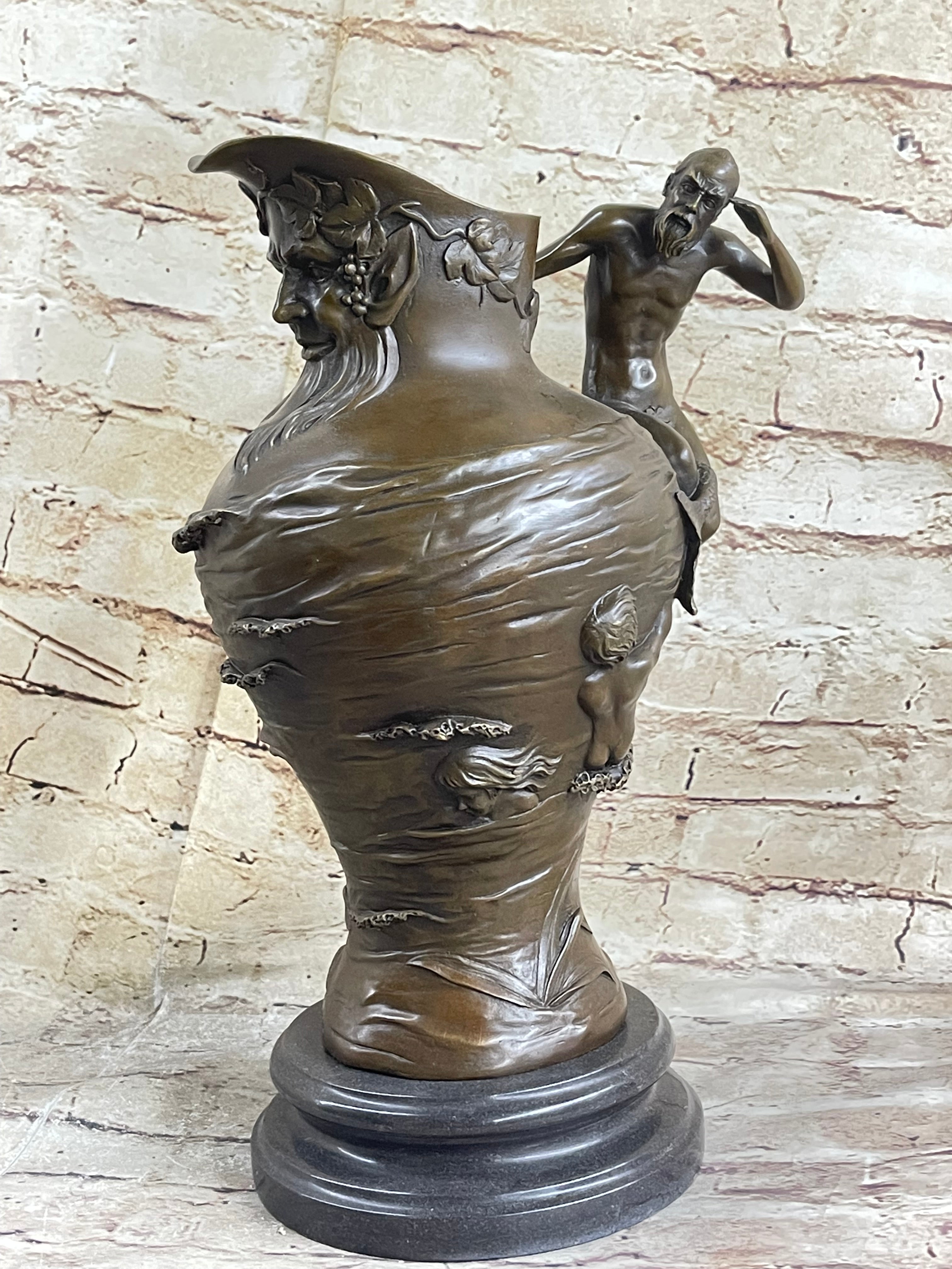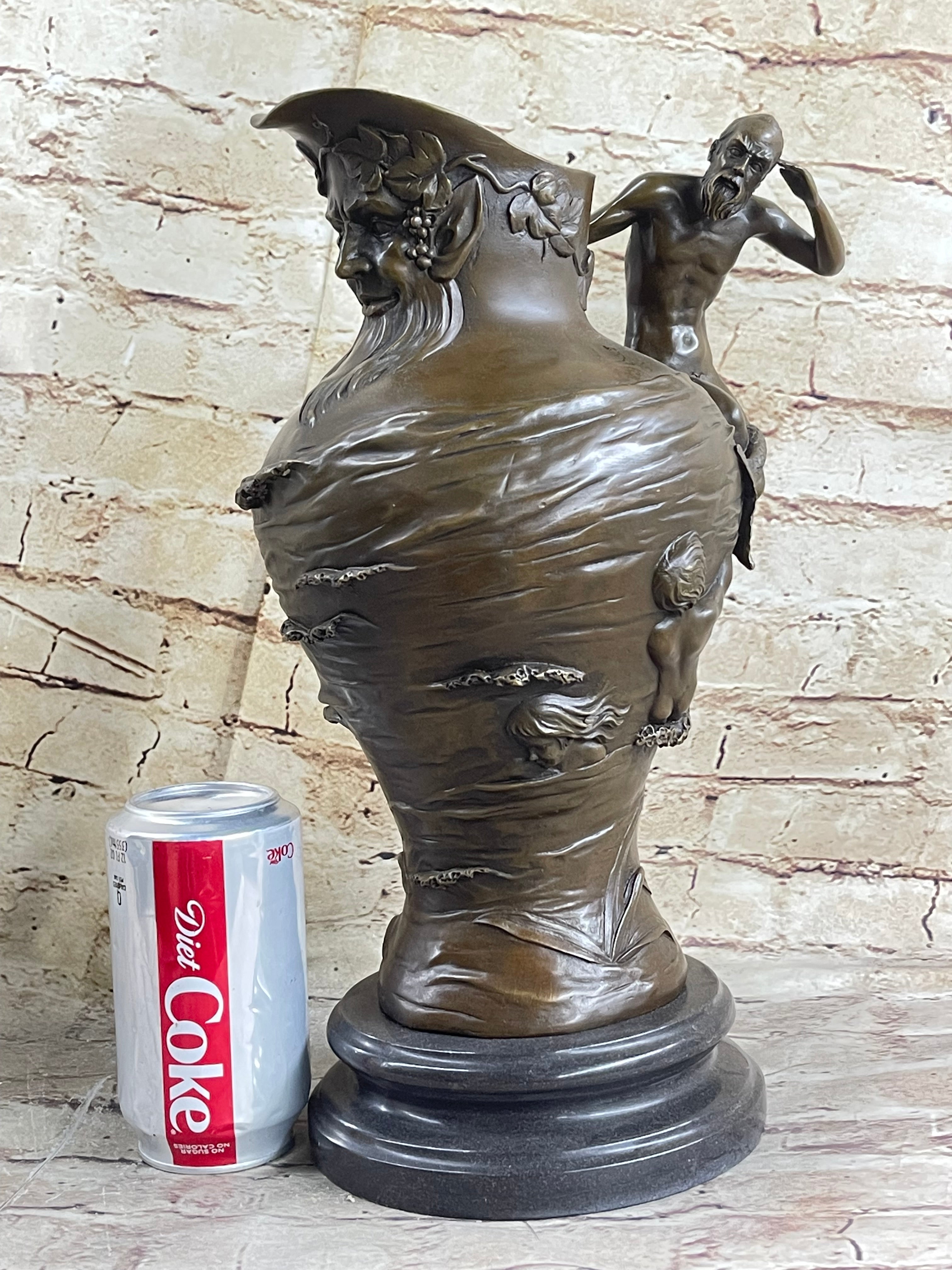 Mythical Nautical Scene Poseidon Merman Mermaid Bacchus Bronze Jug Urn 14" x 10"
