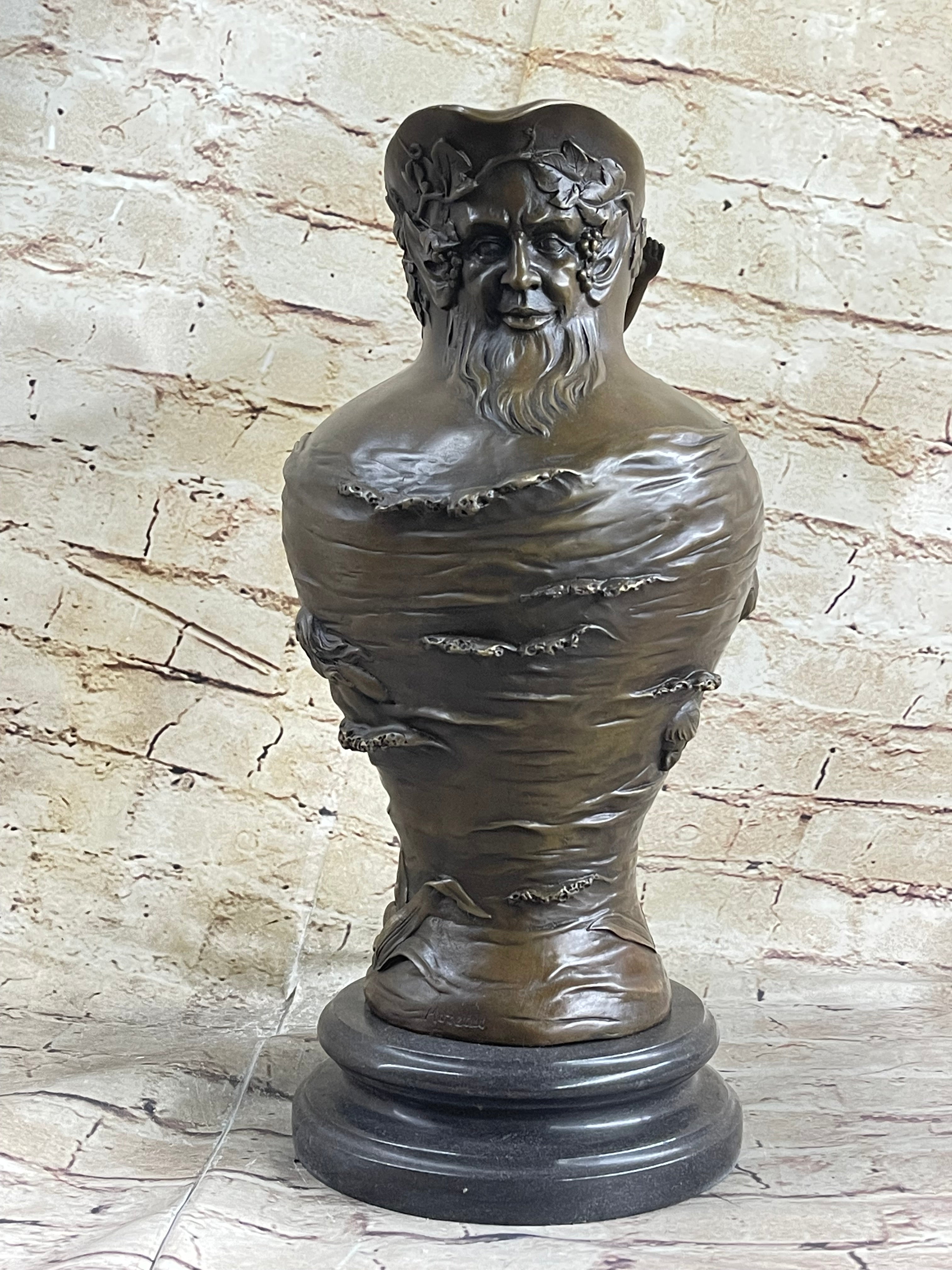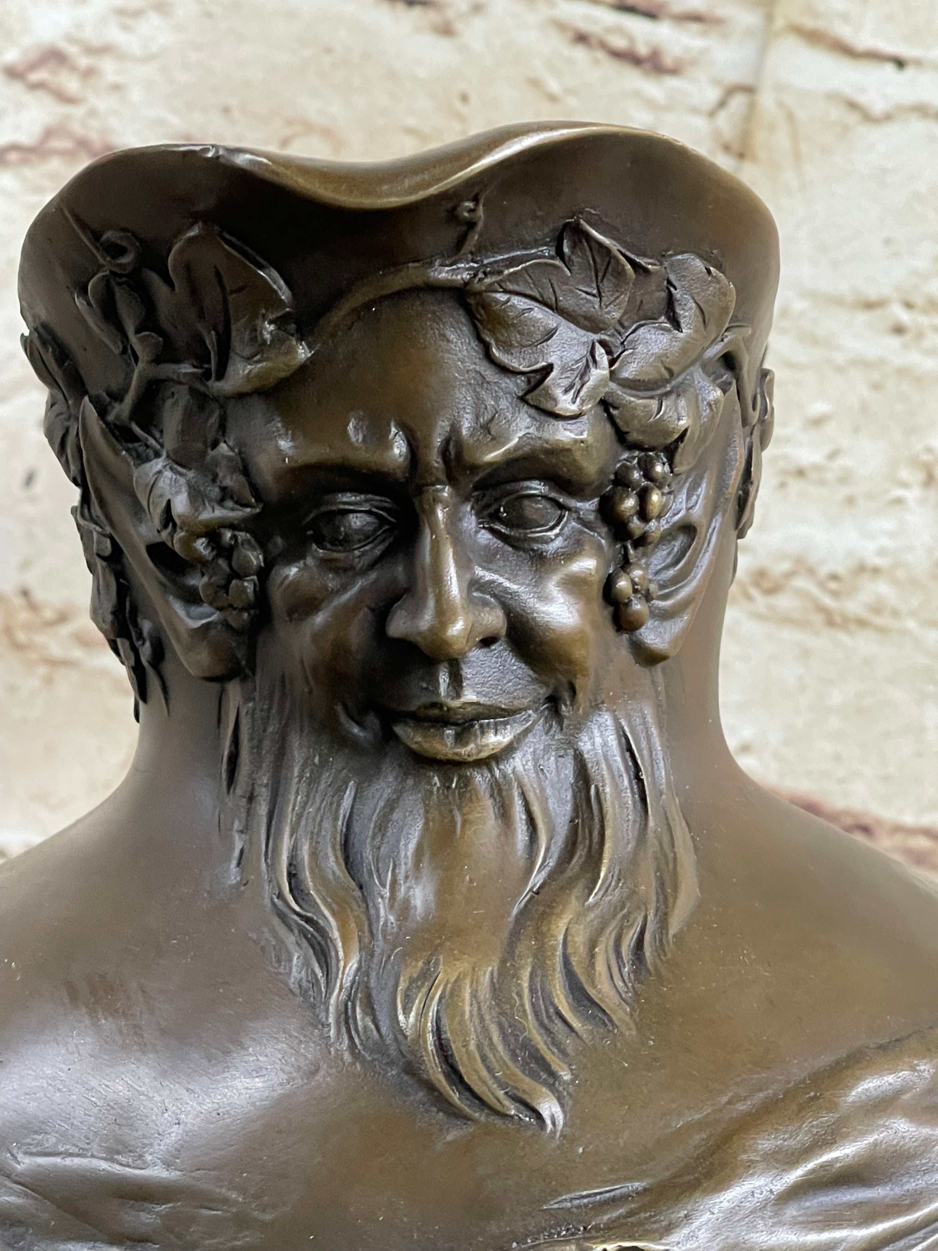 Introducing an exquisite bronze statue that brings to life the Greek deity Poseidon, the powerful controller of the ocean and seas. This captivating sculpture portrays Poseidon at the lip of a jug, his majestic crown adorned with a wreath of laurel and berries. With commanding presence, he unleashes the water of his domain in a spiraling fury, encompassing the entire jug.