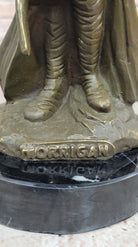 This striking bronze sculpture by Aldo Vitaleh portrays the Celtic Goddess of Battle, a powerful symbol of strength, courage, and mysticism. Captured in a commanding stance, she stands with a poised elegance, accompanied by a bird—an ancient symbol of spirit and foresight in Celtic tradition. Her detailed armor and flowing garments reflect the warrior spirit and divine femininity she embodies.