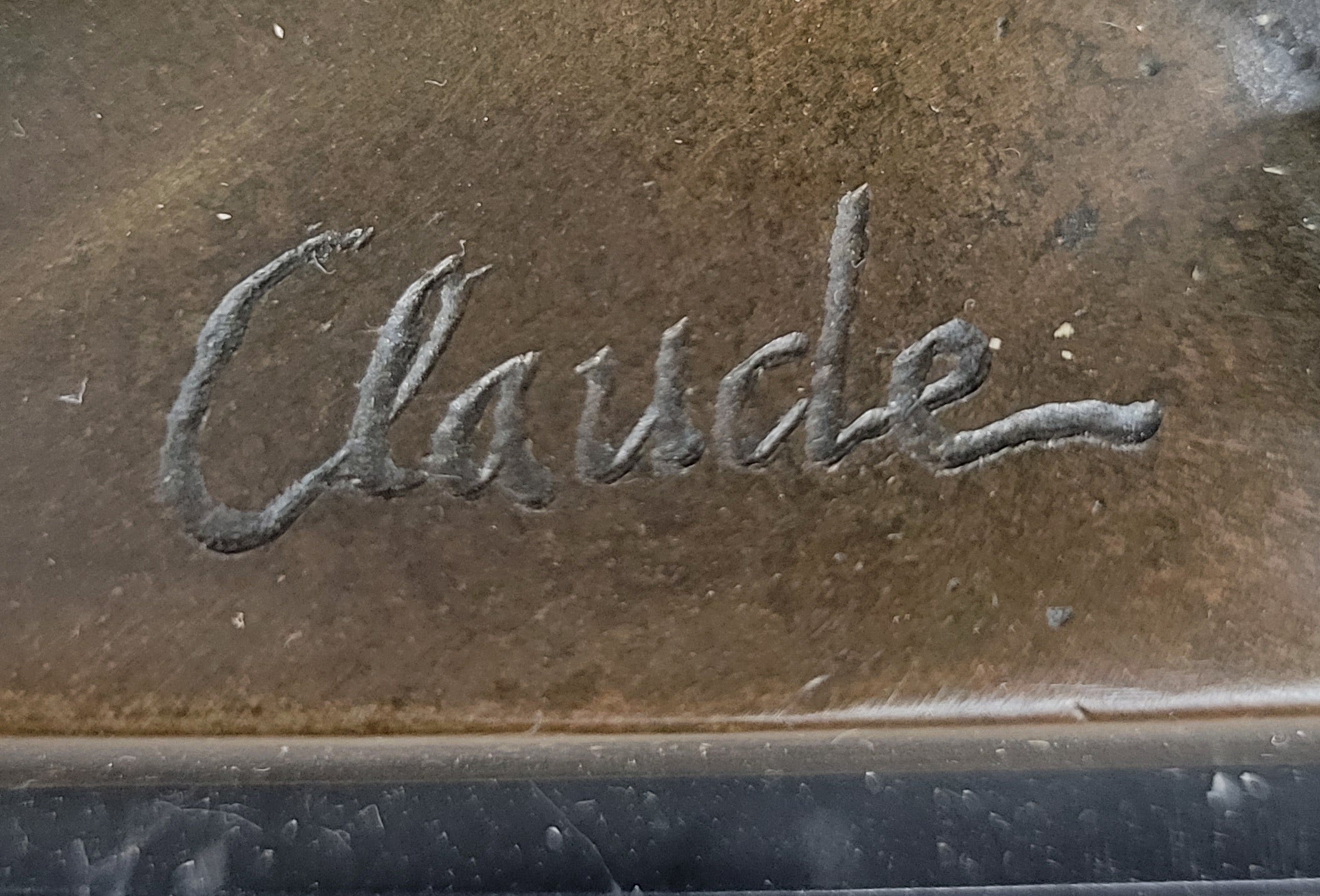Elegantly crafted using the ancient lost-wax casting method, the bronze bust showcases intricate details and lifelike features, evoking the essence of Napoleon's historic influence. The rich brown patina finish lends depth and character to the sculpture, preserving its timeless appeal for generations to come. Mounted upon a sturdy base, this piece stands as a symbol of Napoleon's enduring impact on world history. Signed by the skilled artist Claude, the bust embodies the essence of an era defined by revolutionary fervor and military prowess, serving as a poignant reminder of Napoleon's indelible mark on the course of European history.Bronze Dimensions with Marble Base: Height 12" X Width 3"