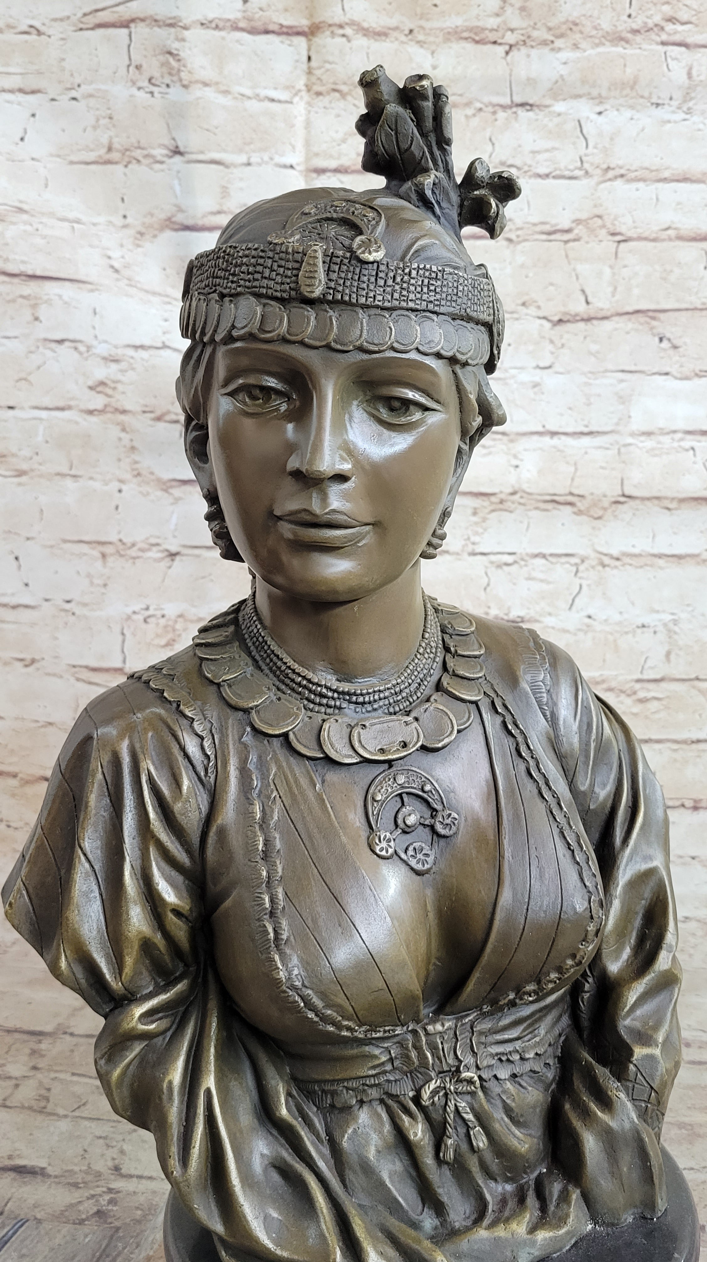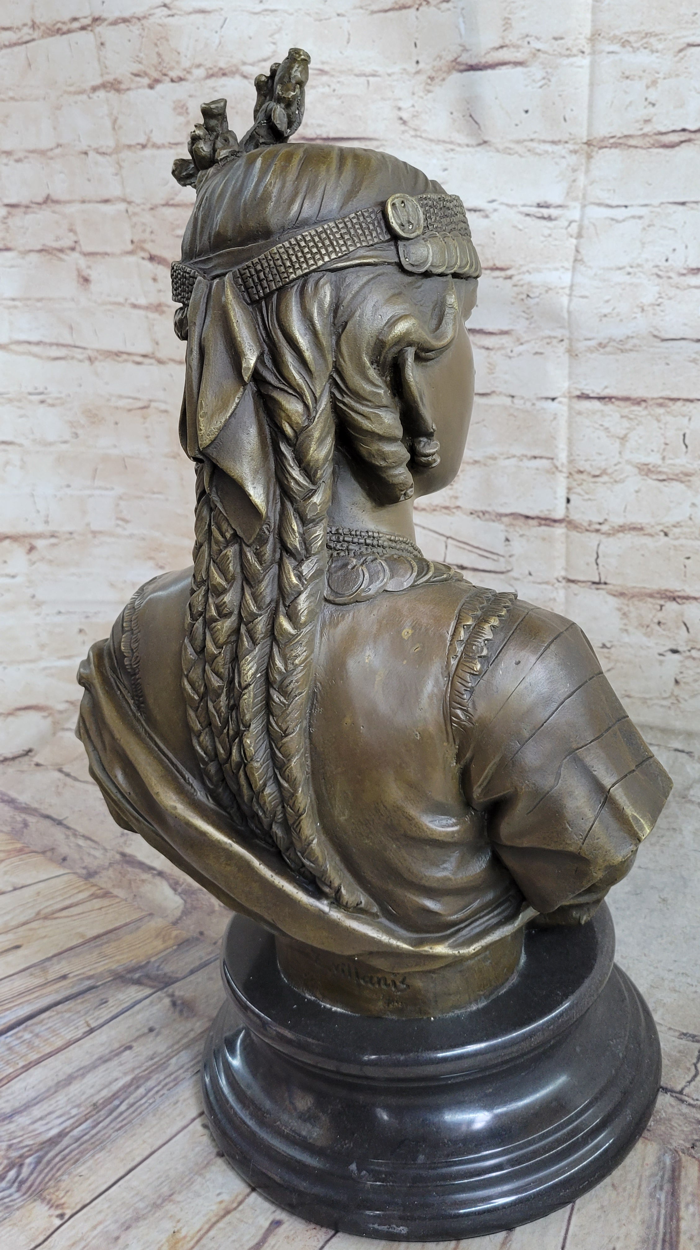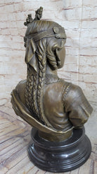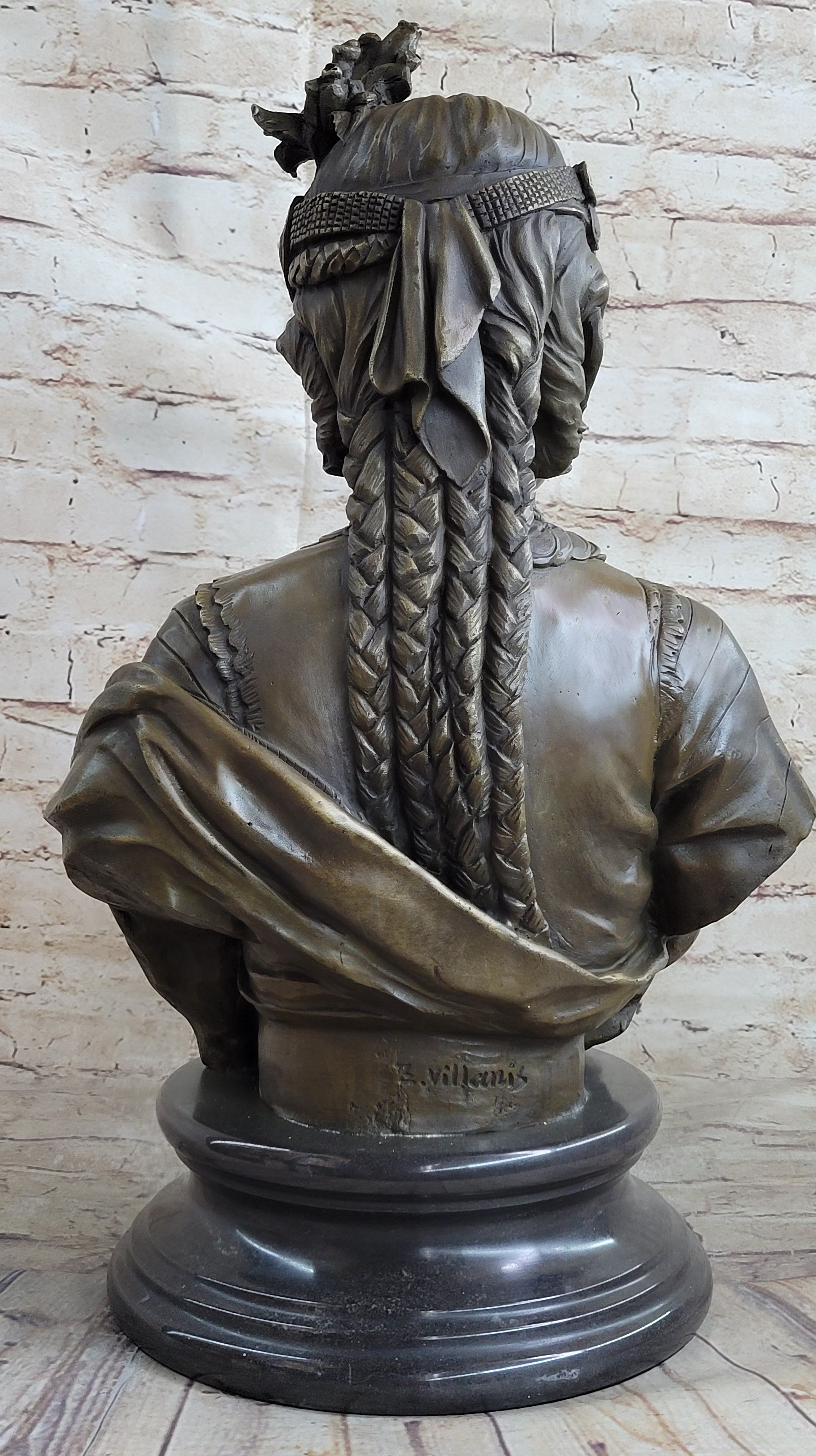 Native American Girl Bronze Bust Sculpture Statue Pocahontas Sacajawea by Villanis 19" x 11"