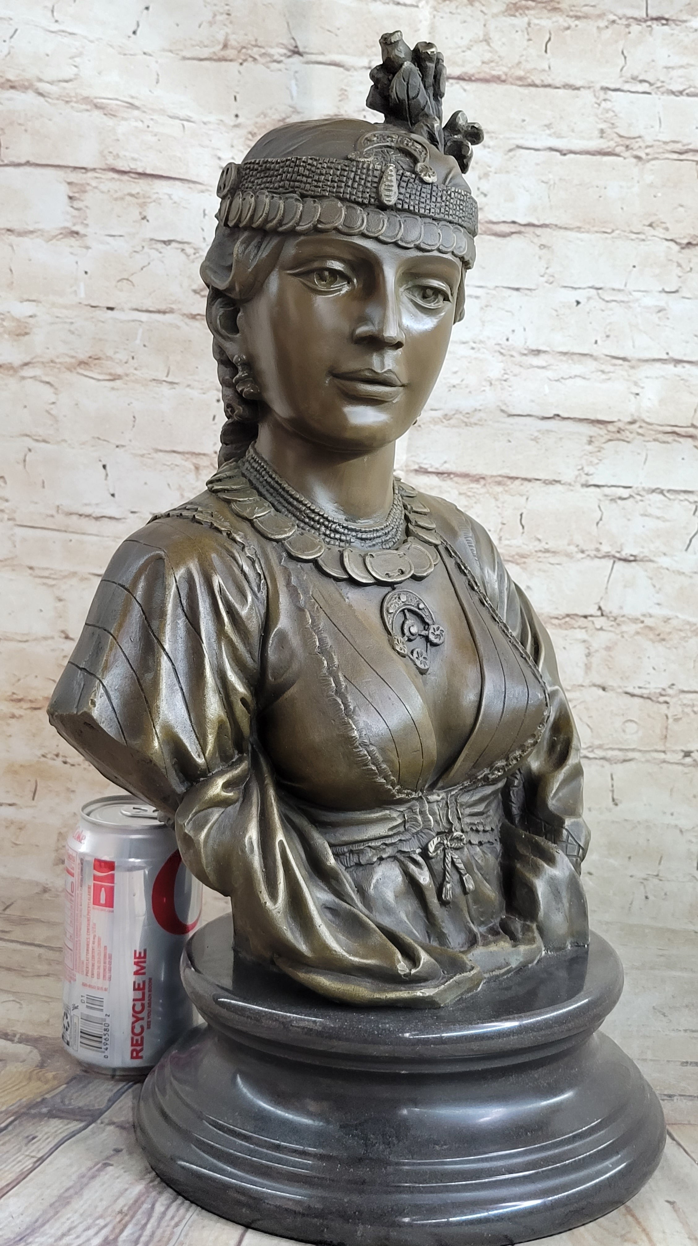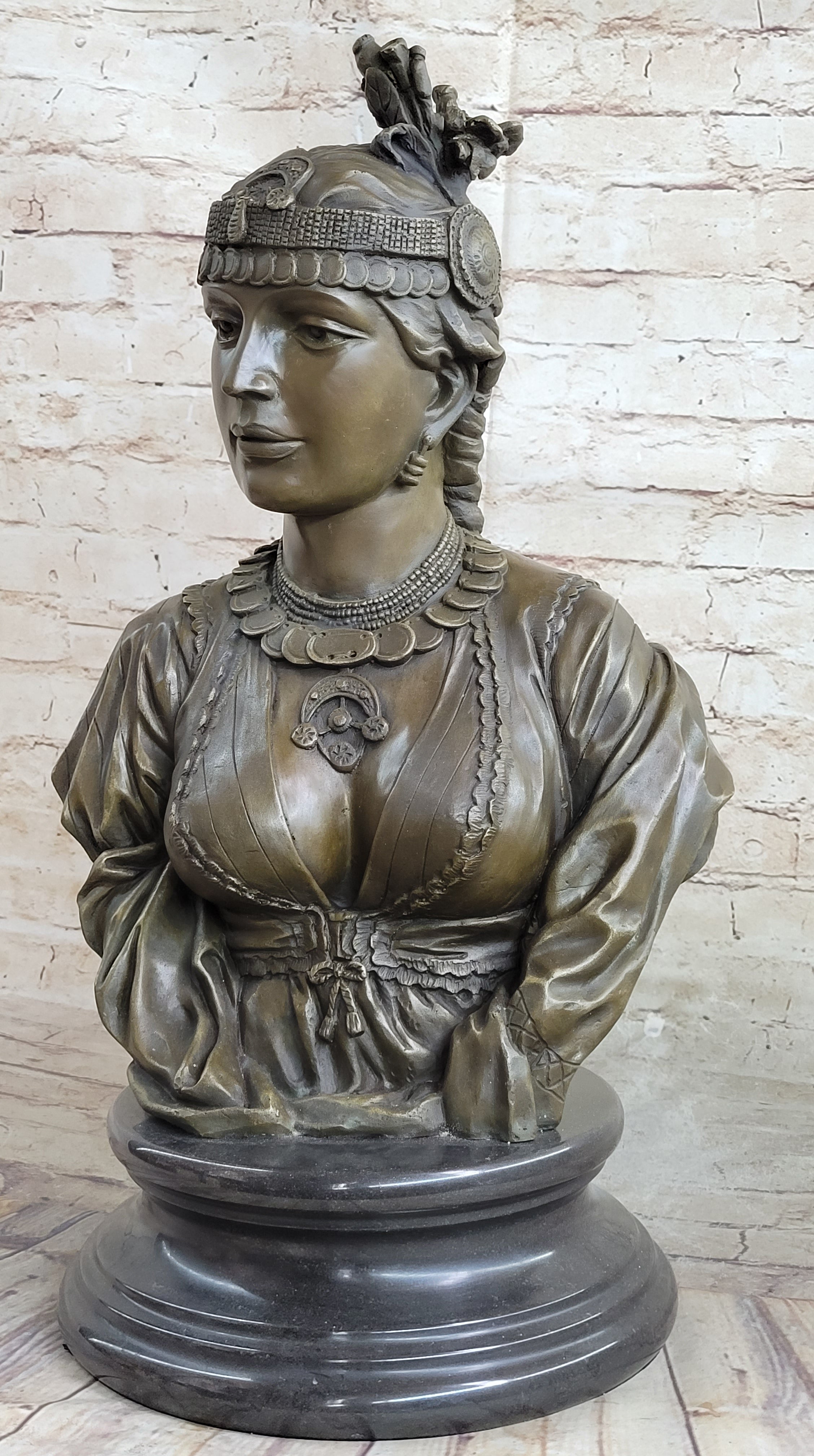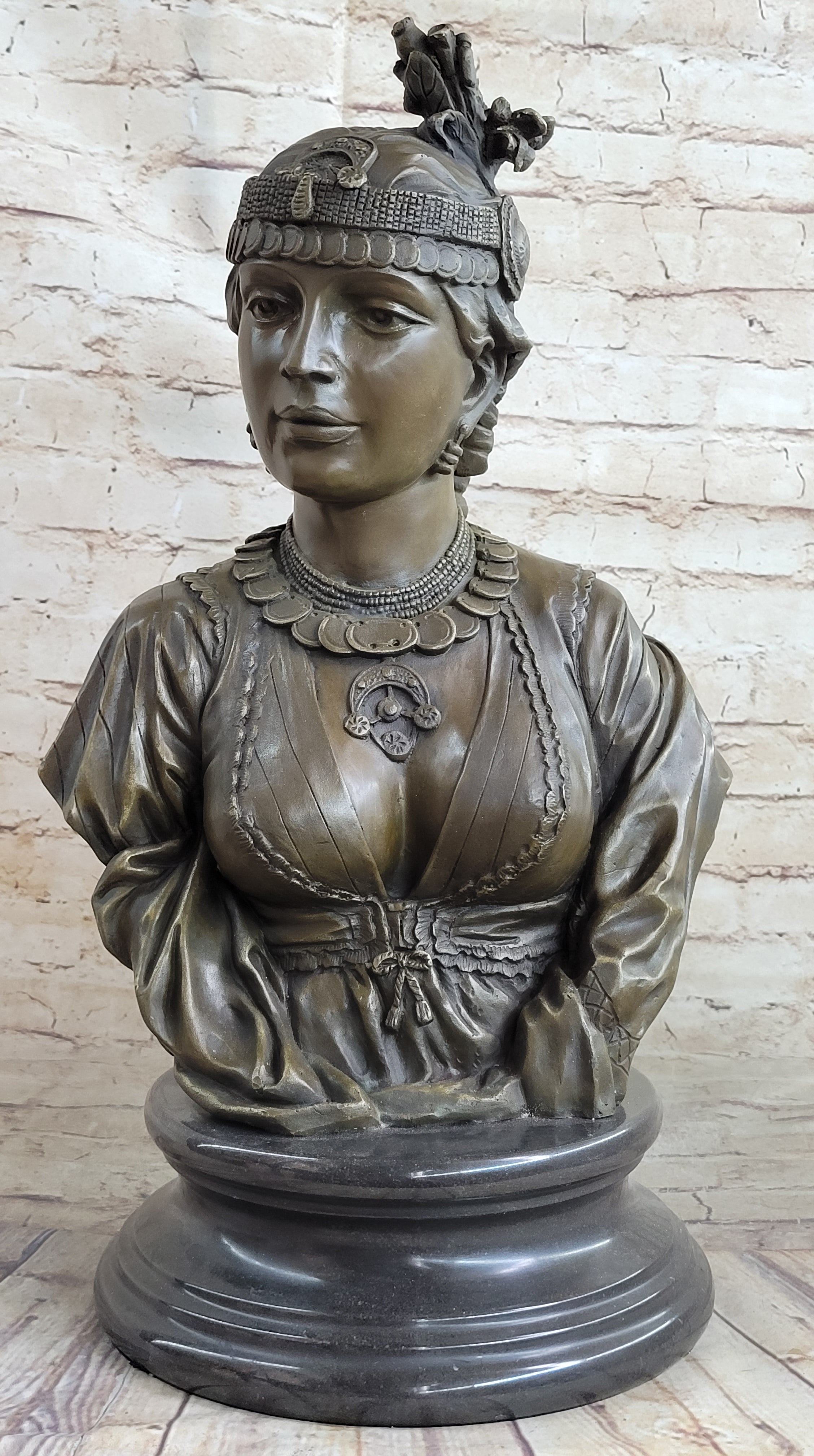 Native American Girl Bronze Bust Sculpture Statue Pocahontas Sacajawea by Villanis 19" x 11"