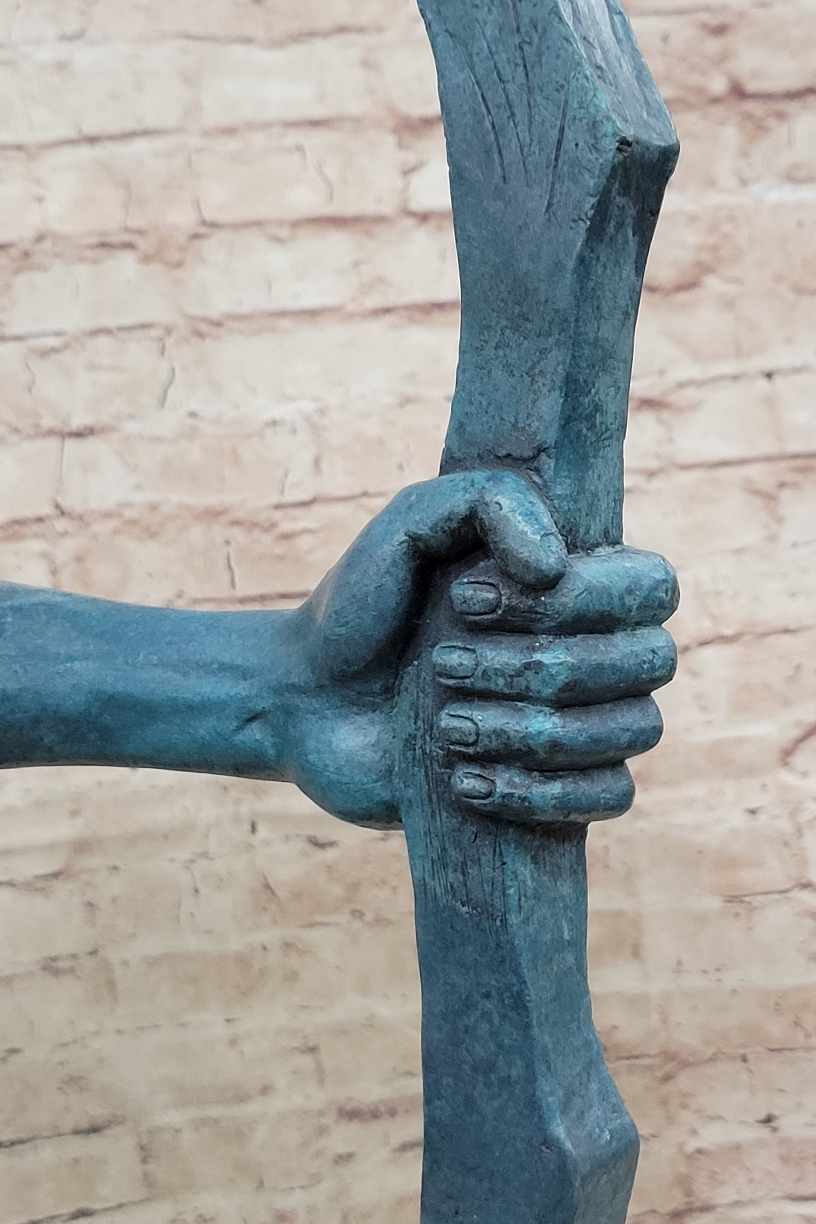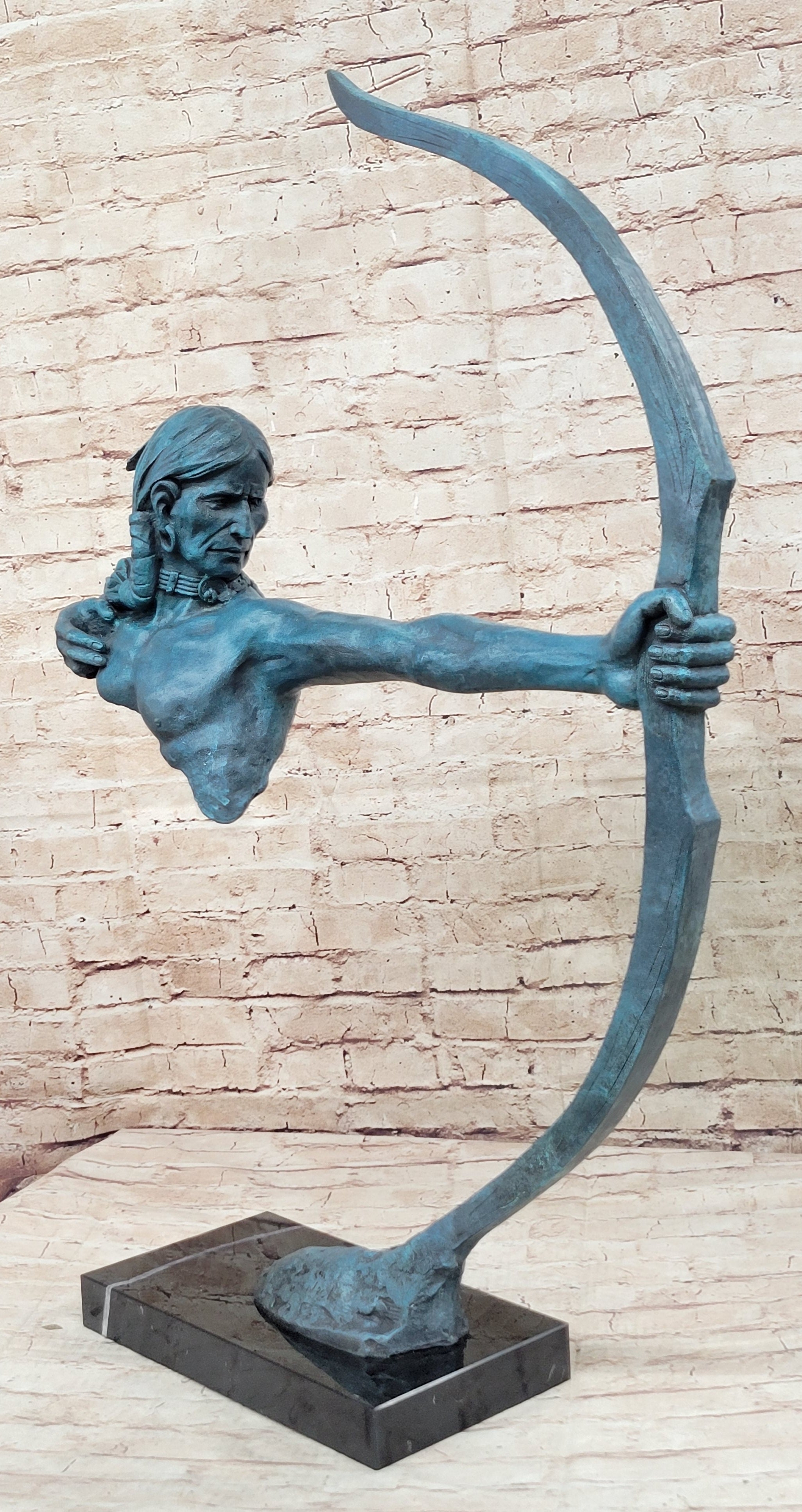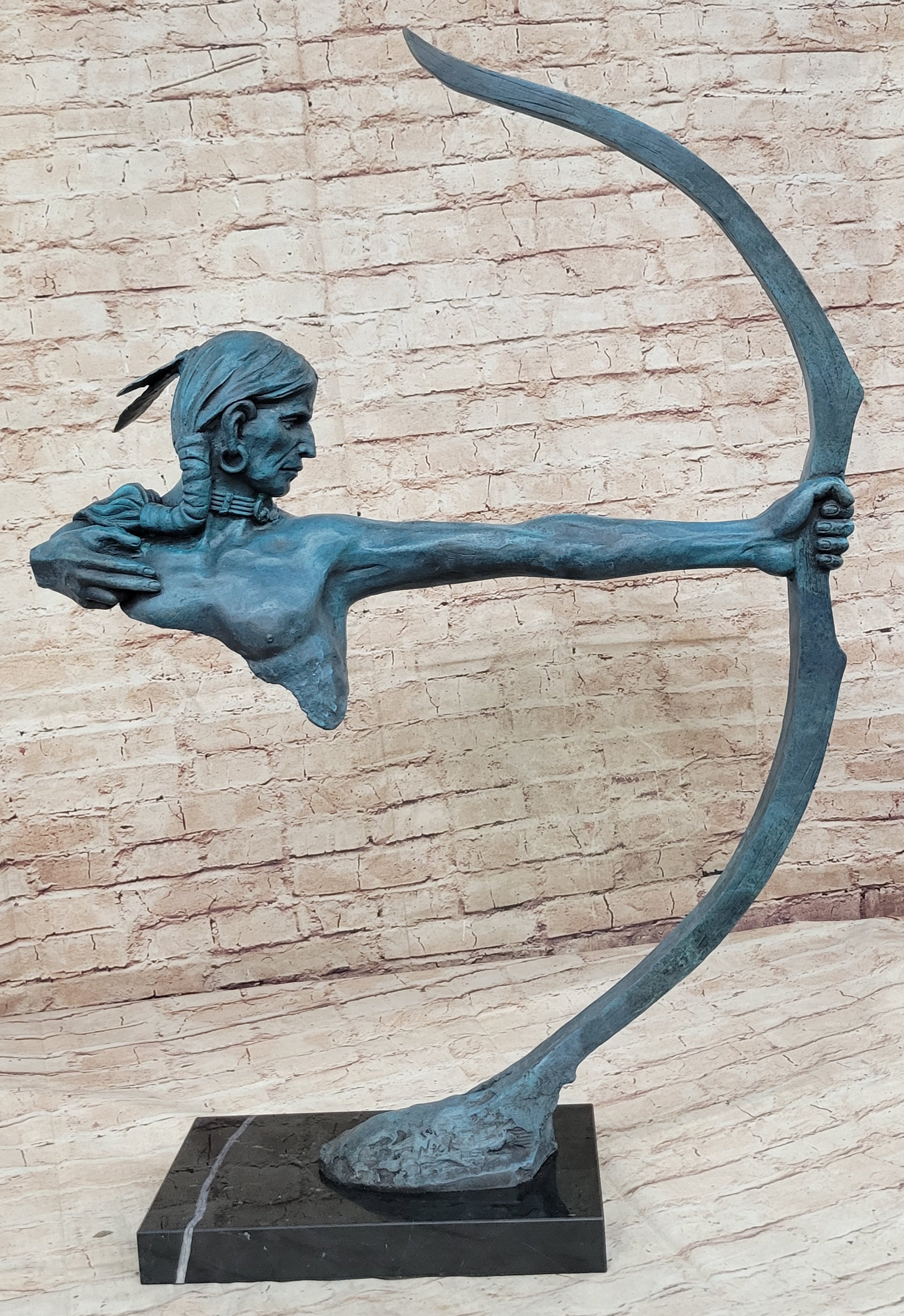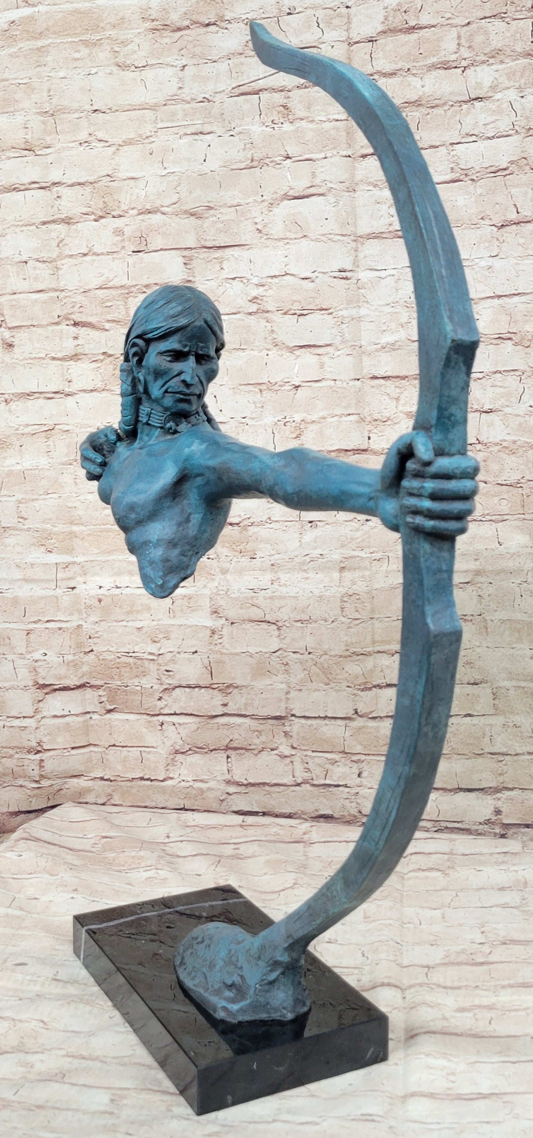 Native American Indian Bow Archer Abstract Bronze Statue Sculpture Blue Green Patina 33" x 23"
