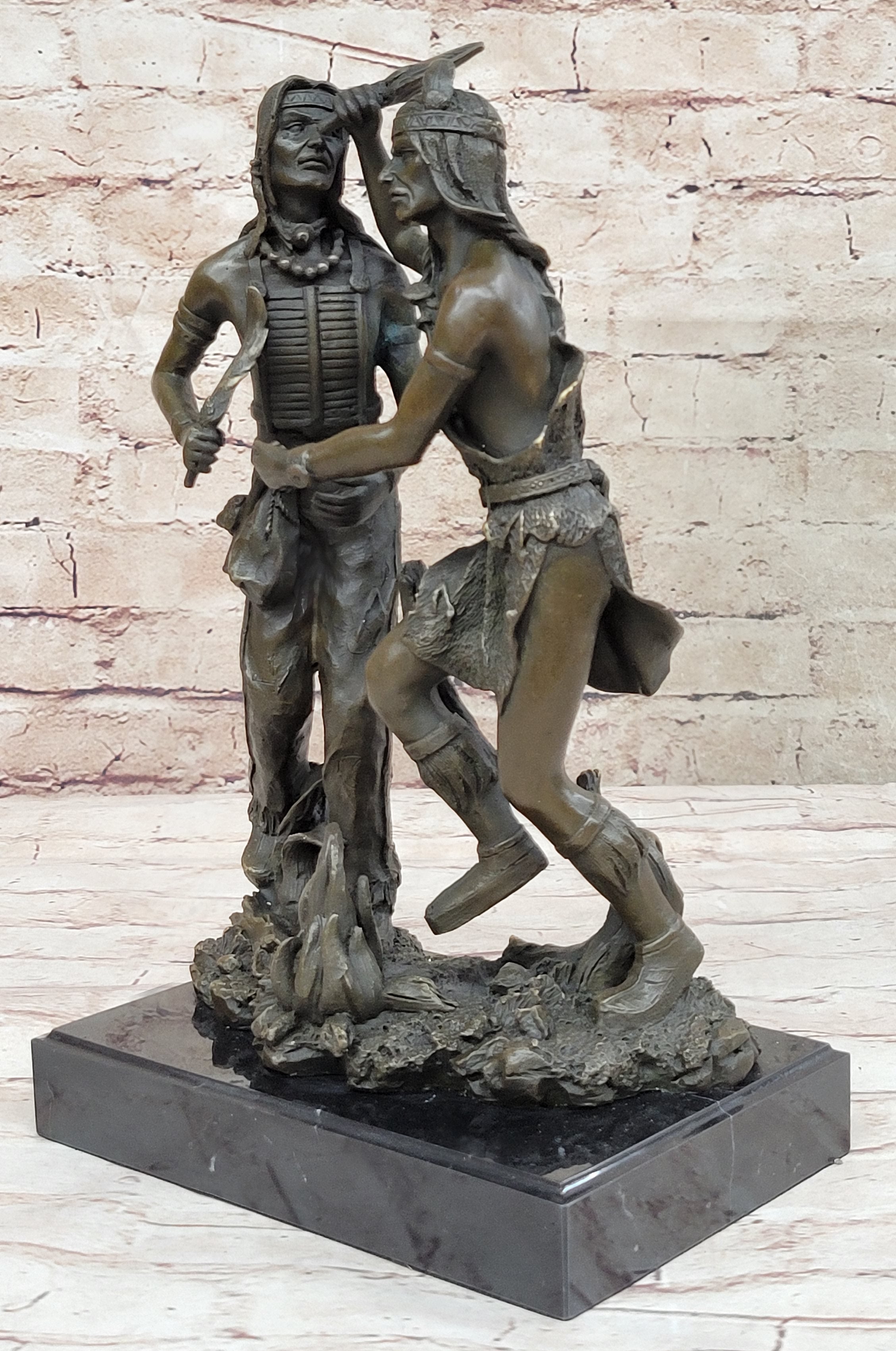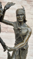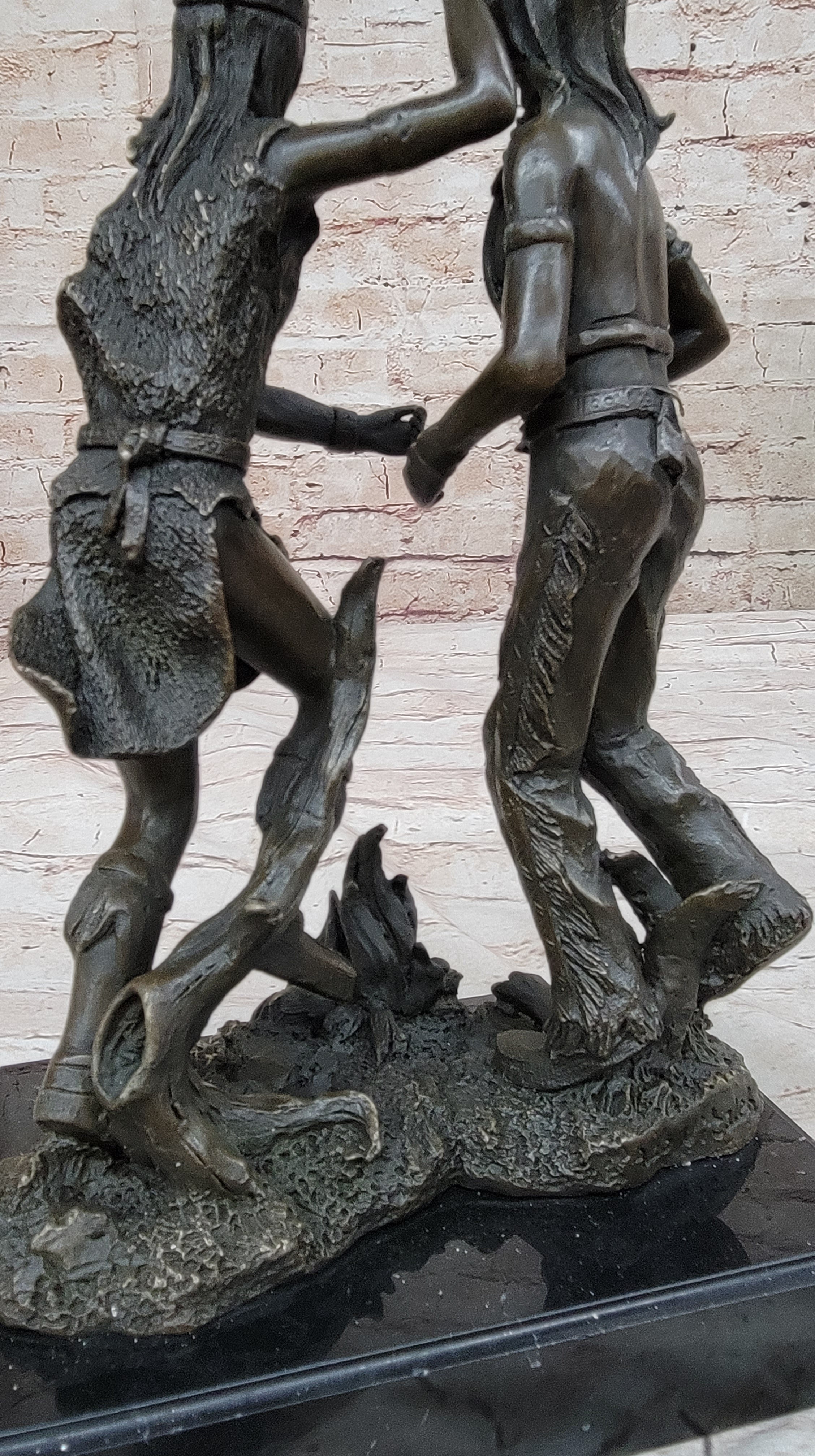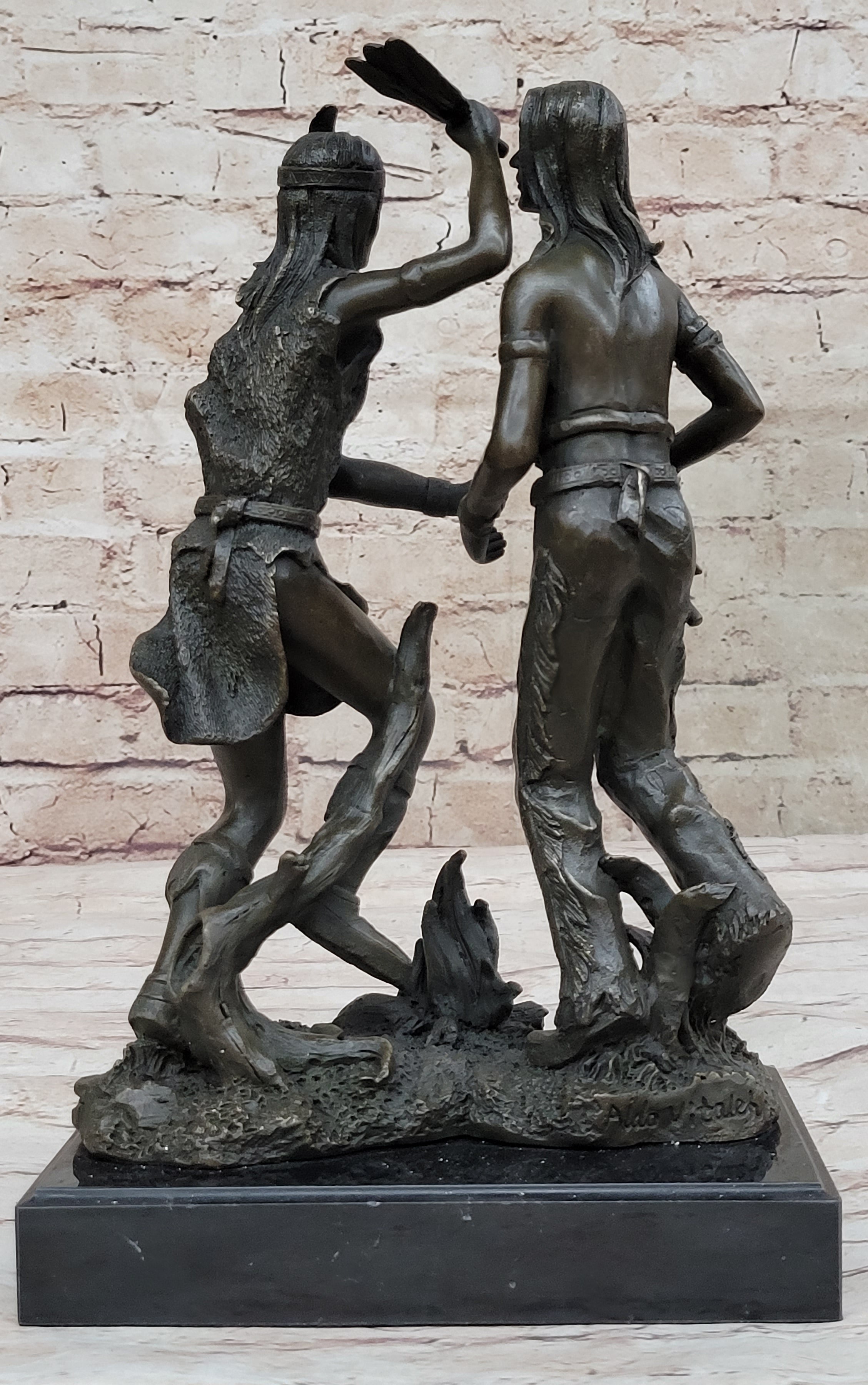 Native American Indian Dancers Rain Dance Bronze Sculpture Statue Original Art on Marble Base
