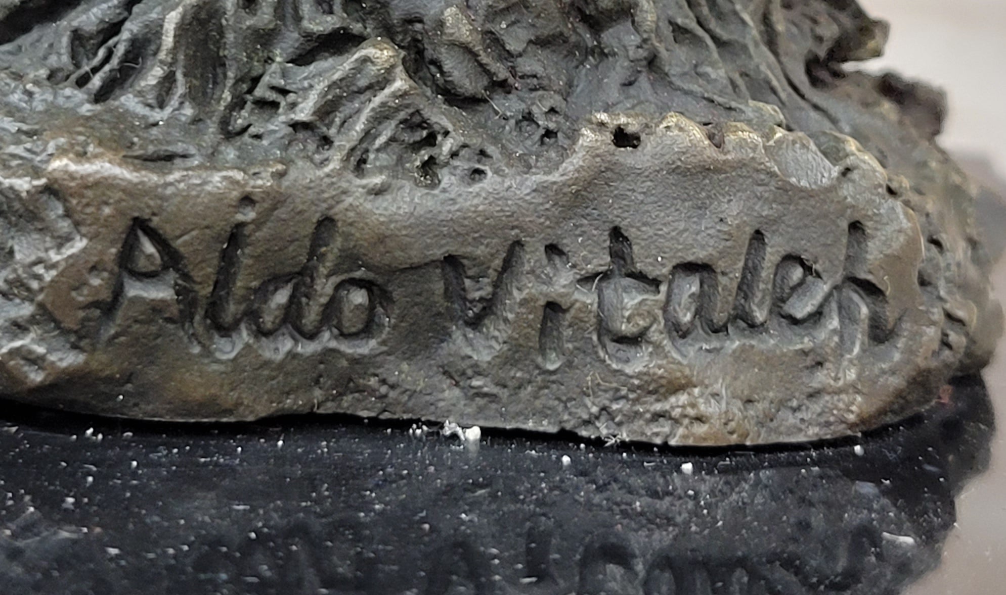 Handcrafted with utmost care, this sculpture is a testament to the dedication and skill of the artist, Aldo Vitaleh. His signature proudly adorns the piece, a mark of its authenticity and the artist's commitment to creating extraordinary works of art.