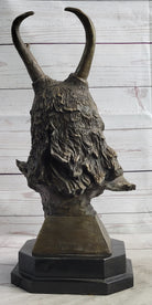 Discover the captivating artistry of Kamiko through this remarkable bronze sculpture. Known for his specialization in depicting warriors from different historical eras and cultures, Kamiko has created a stunning bust of a Viking warrior. Unlike the conventional portrayals of fierce Viking warriors, this piece presents a unique perspective by emphasizing the warrior's humanity. The distinct feature of the helmet, with its upward-curving horns nearly touching, adds a touch of intrigue to the sculpture.