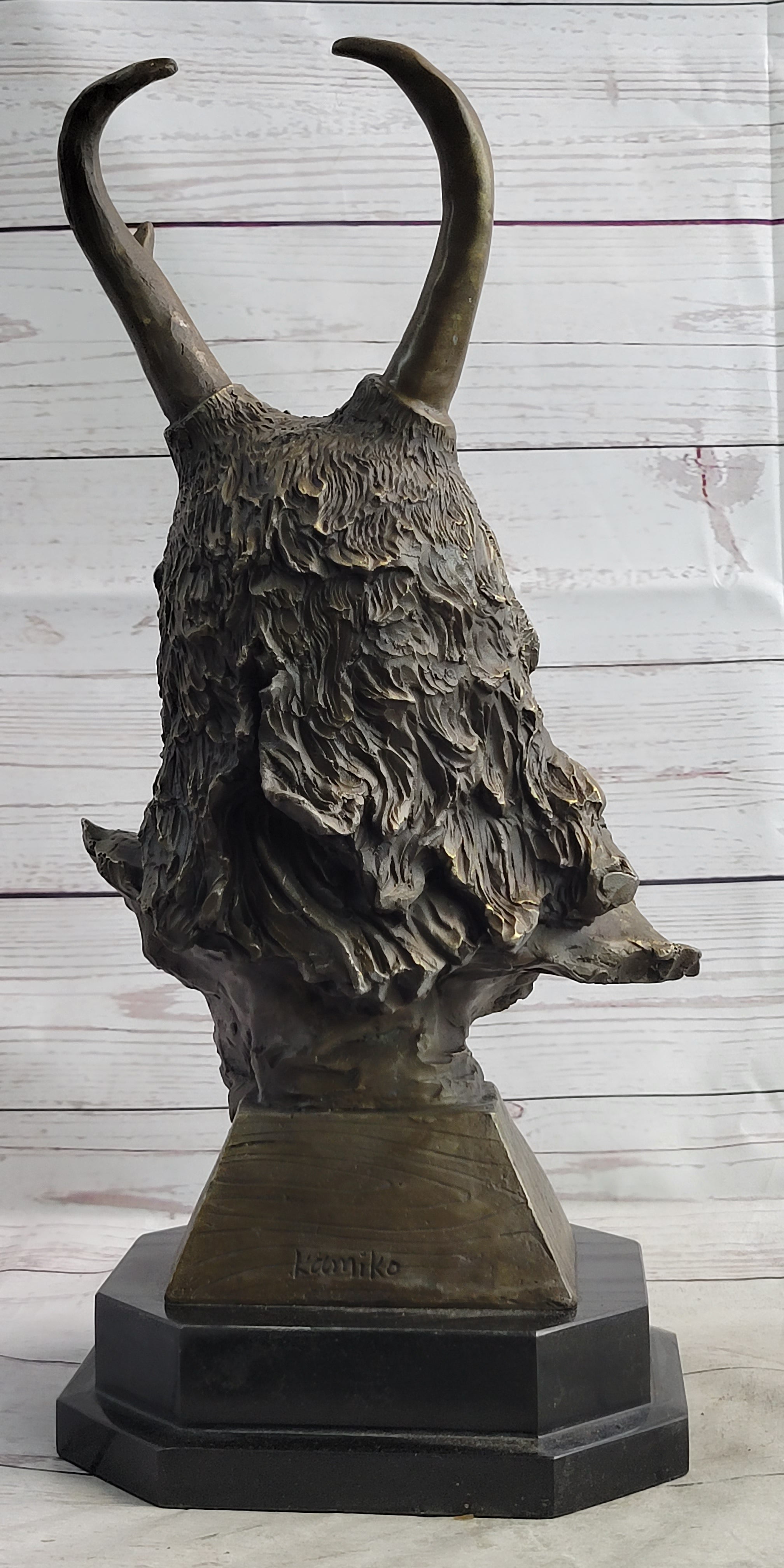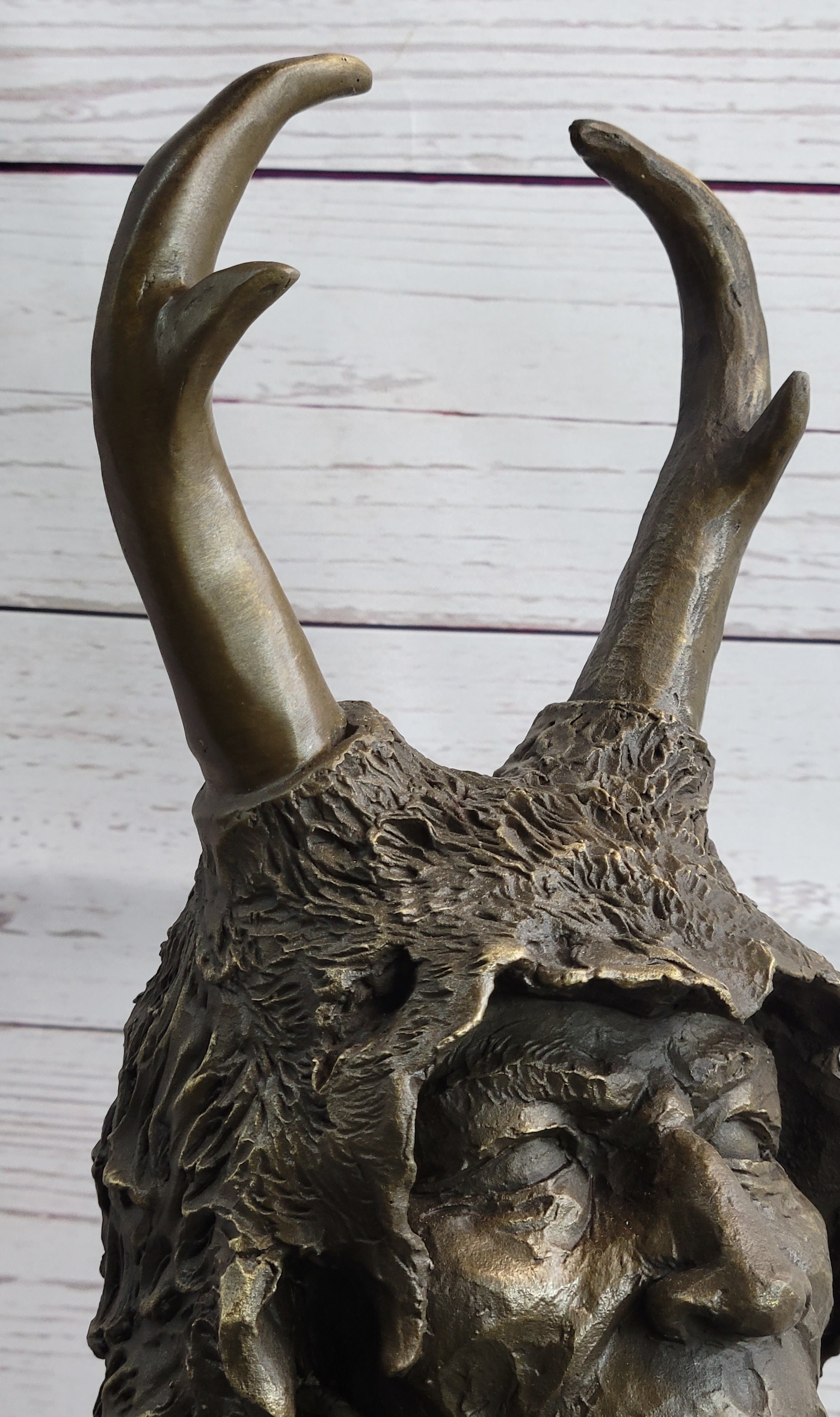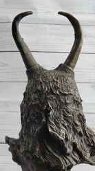 Immerse yourself in the extraordinary world of Kamiko, a gifted artist renowned for his captivating warrior sculptures. This particular bronze bust showcases Kamiko's expertise in portraying warriors from various cultures and time periods. The Viking warrior depicted in this piece stands out with its distinctive helmet, featuring horns that extend and curve upwards, almost touching each other. Unlike traditional depictions, this sculpture highlights the warrior's human qualities, offering a fresh perspective on Viking warriors.