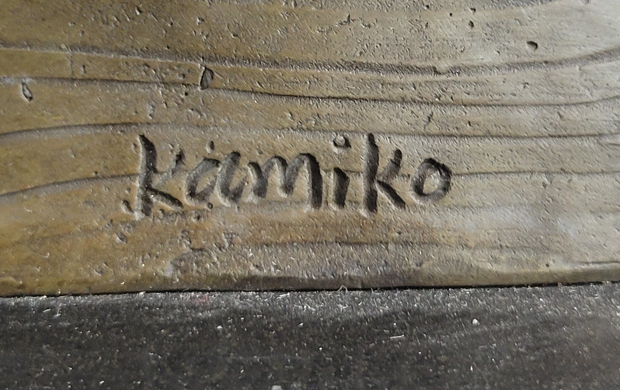 Crafted with precision and care, this sculpture was brought to life using the esteemed lost wax method. This time-honored technique ensures meticulous attention to detail and a high level of artistry. The sculpture rests elegantly on a black marble base, adding a touch of sophistication and providing a stable foundation for display. Each piece is authentically signed by the artist Kamiko, affirming its originality and artistic value.