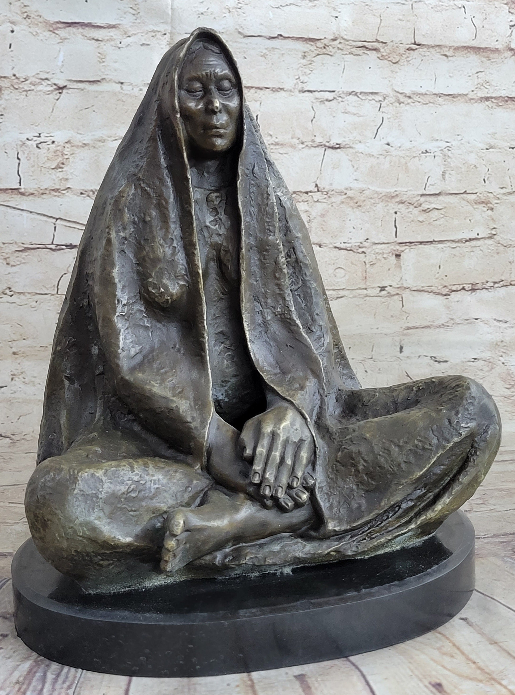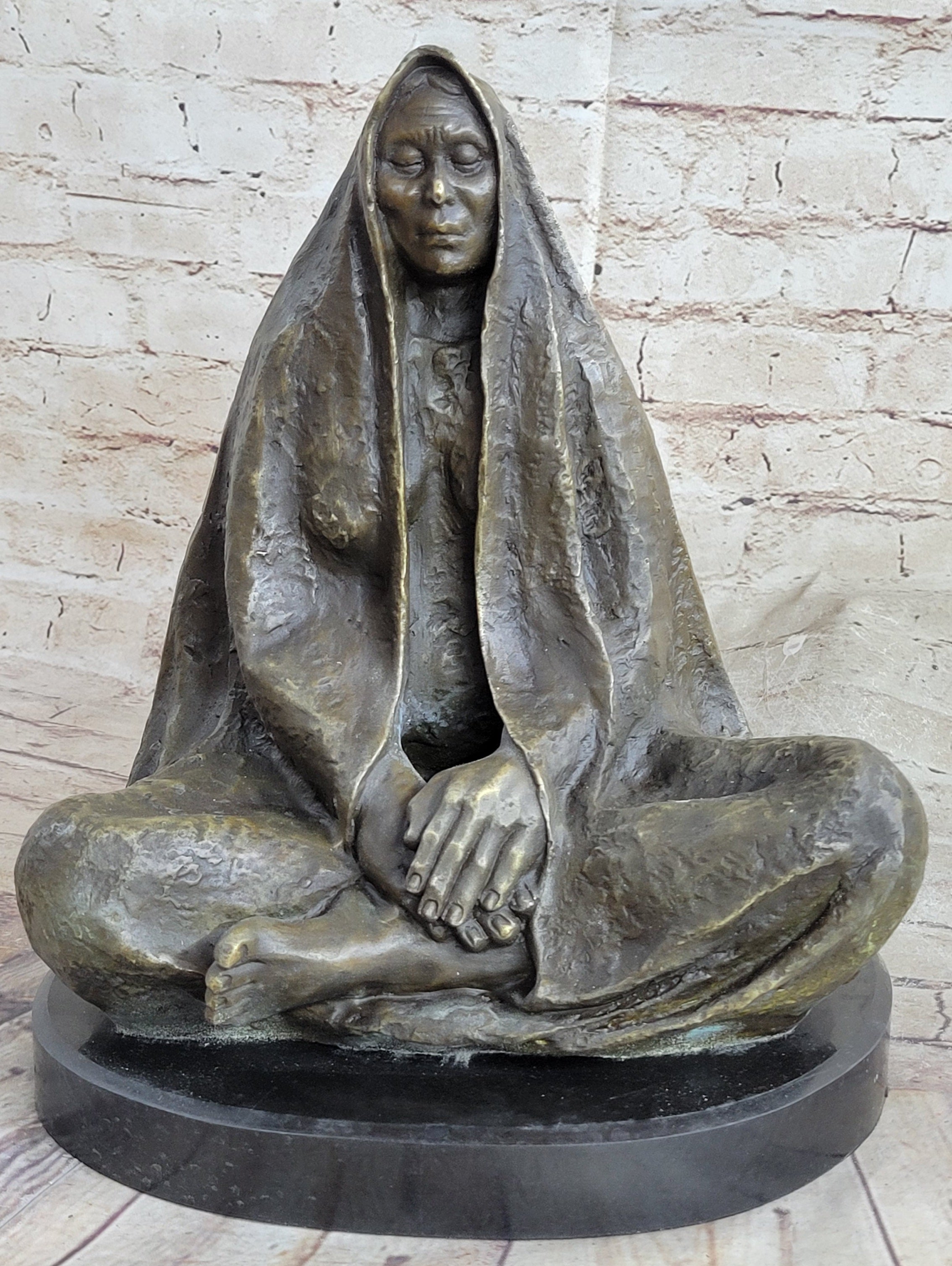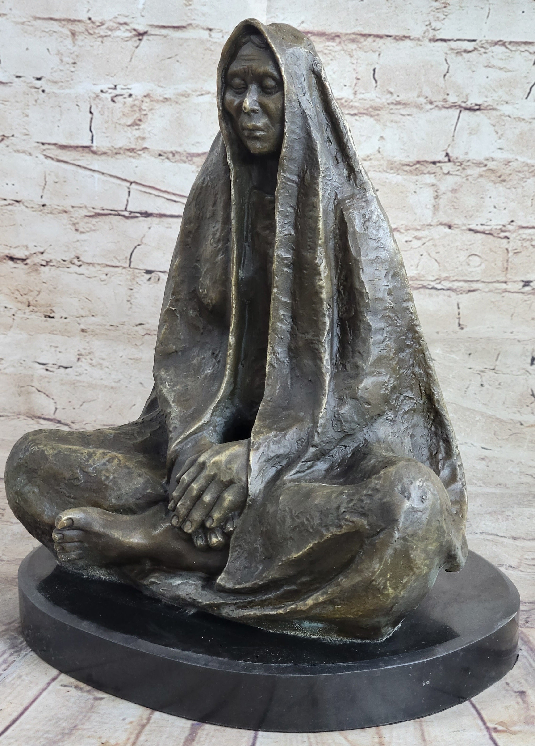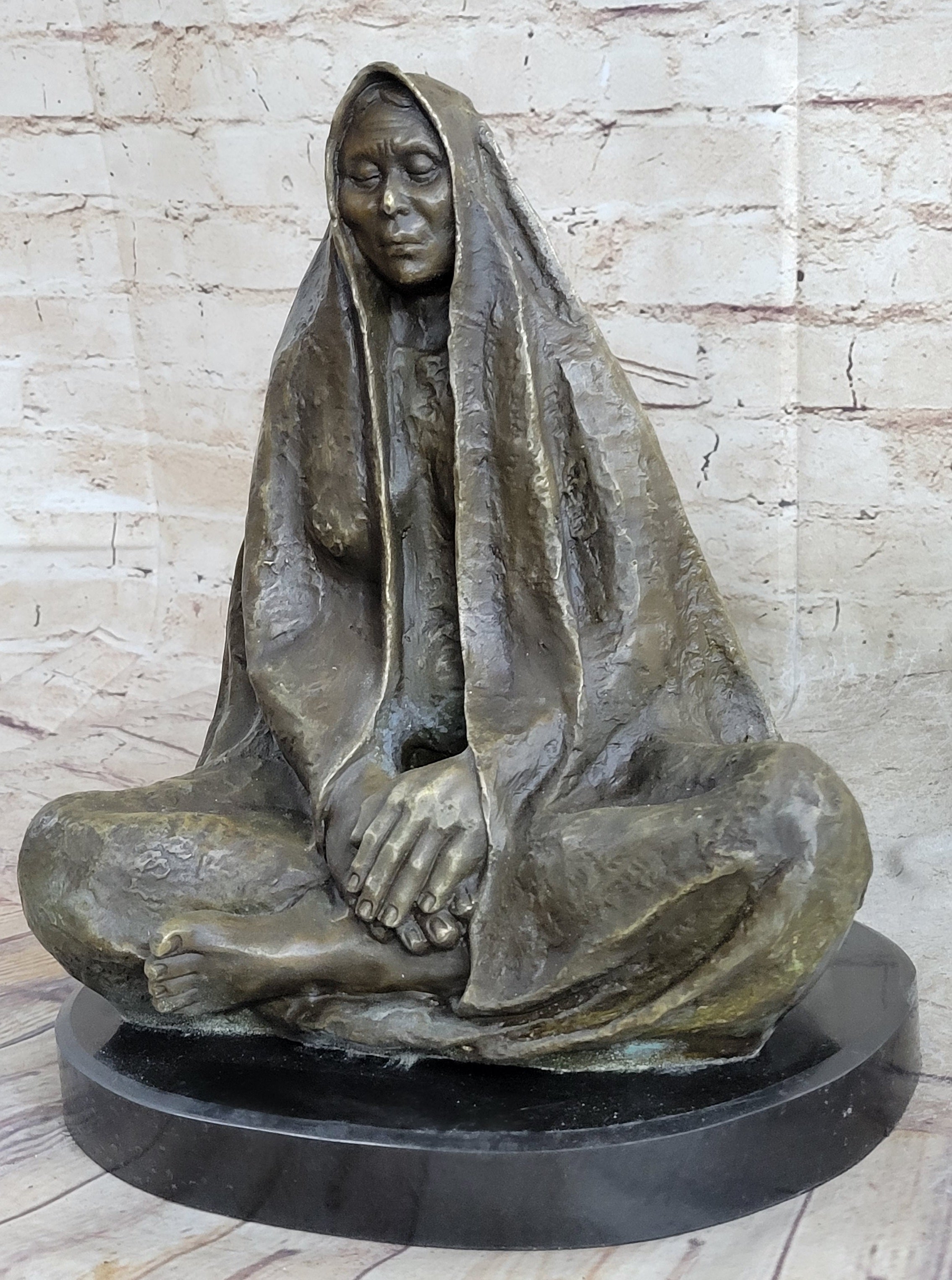 Native American Indian Shaman Medicine Man Sitting Cross Legged Bronze Statue Sculpture