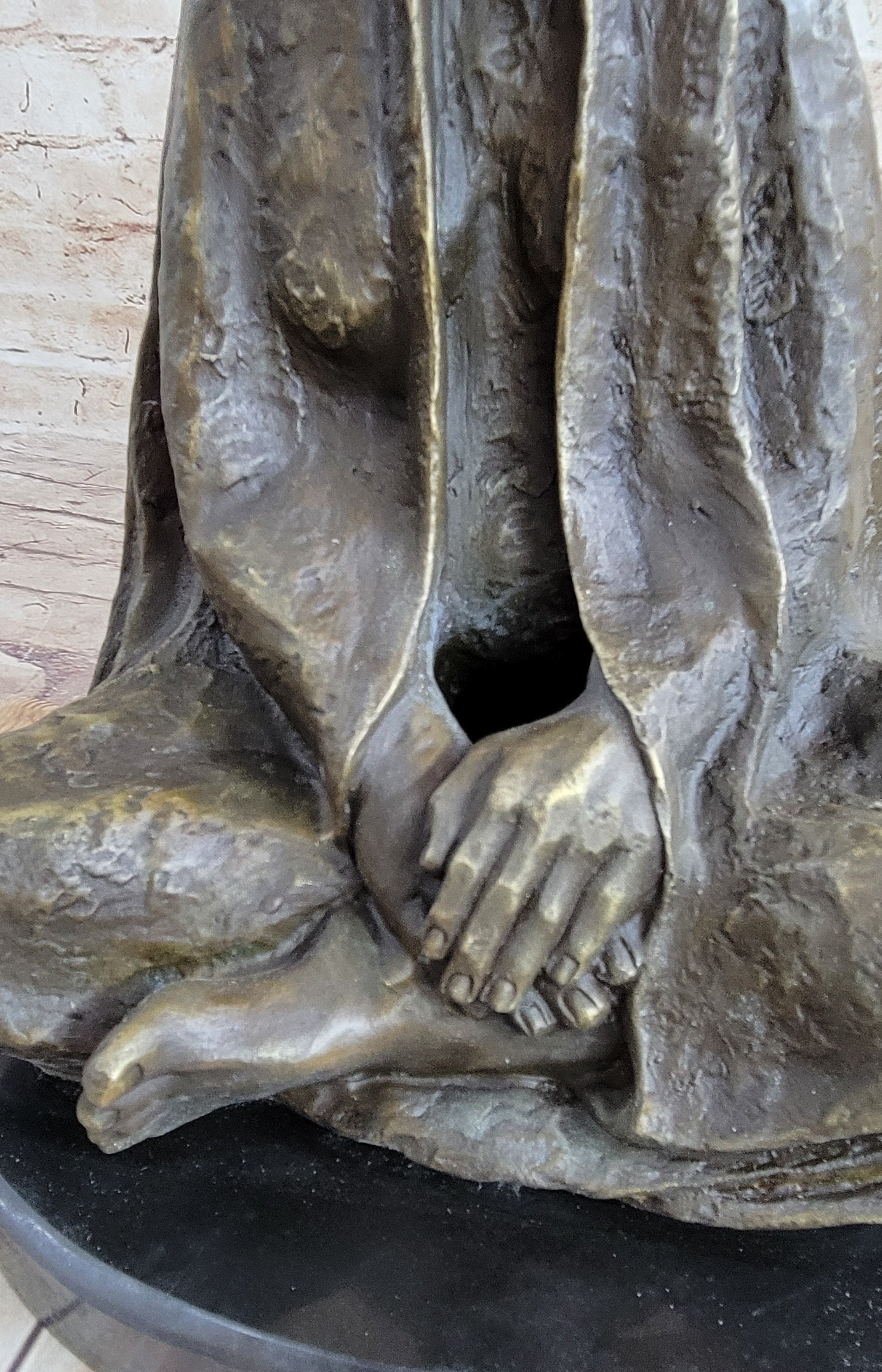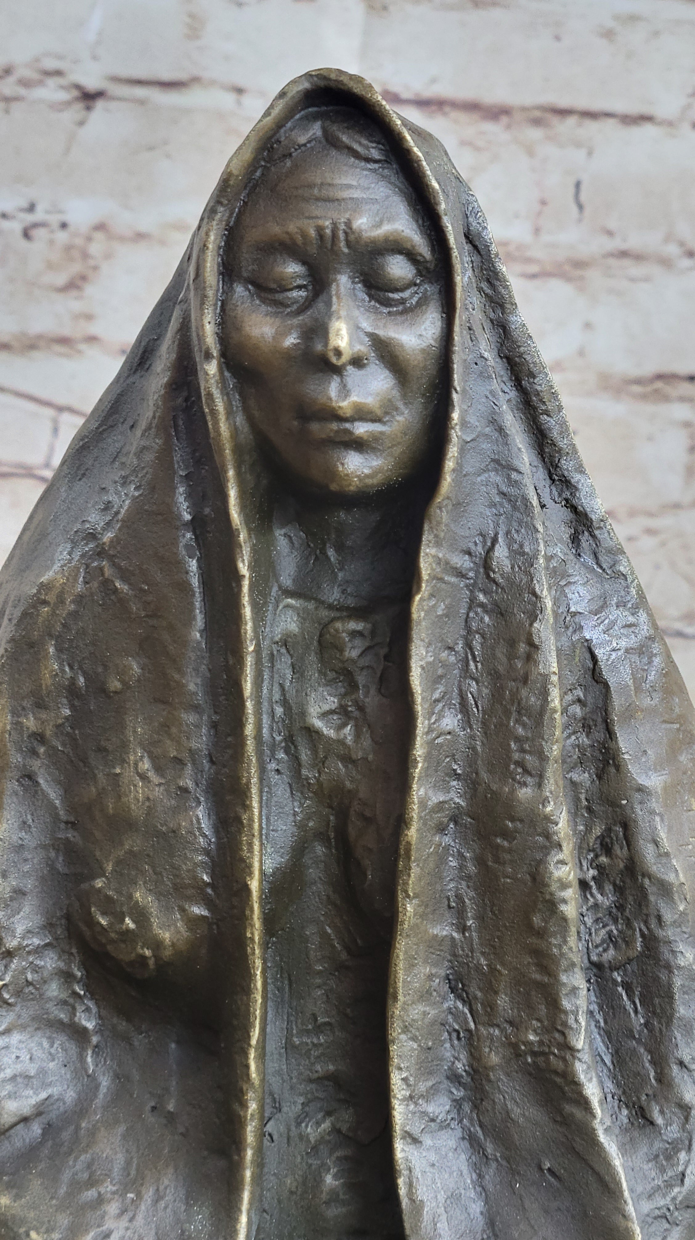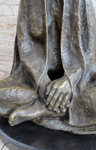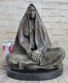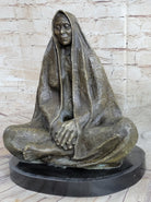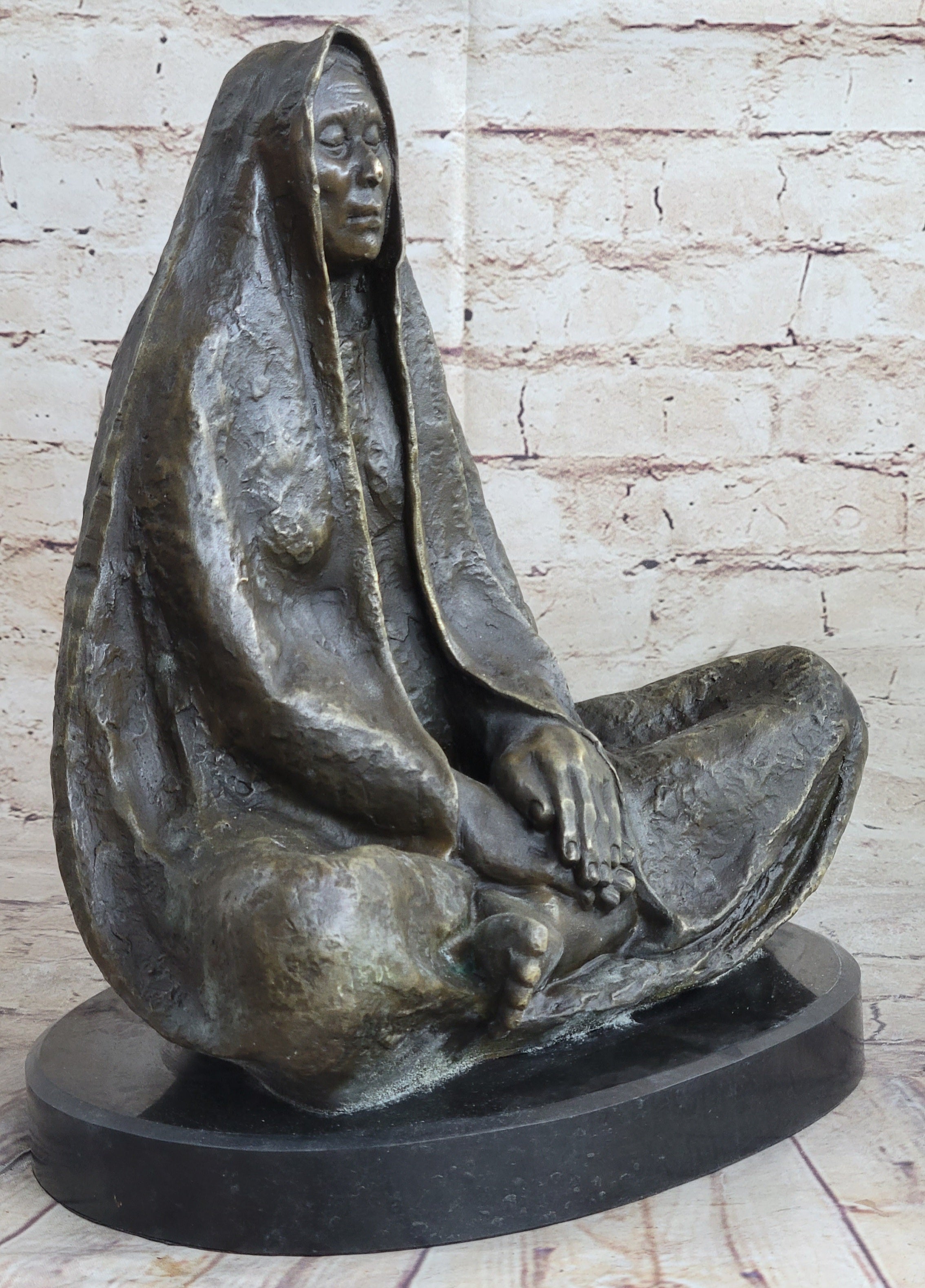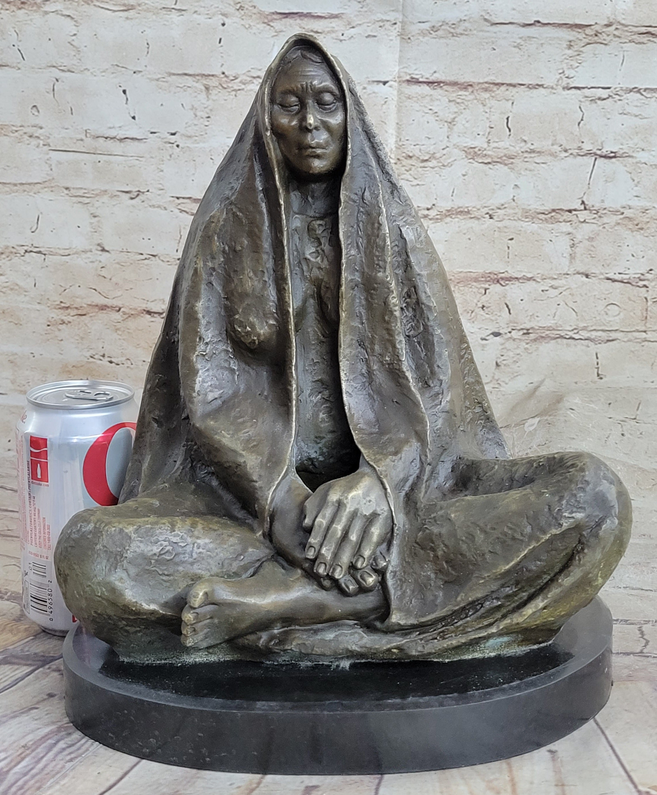 Native American Indian Shaman Medicine Man Sitting Cross Legged Bronze Statue Sculpture