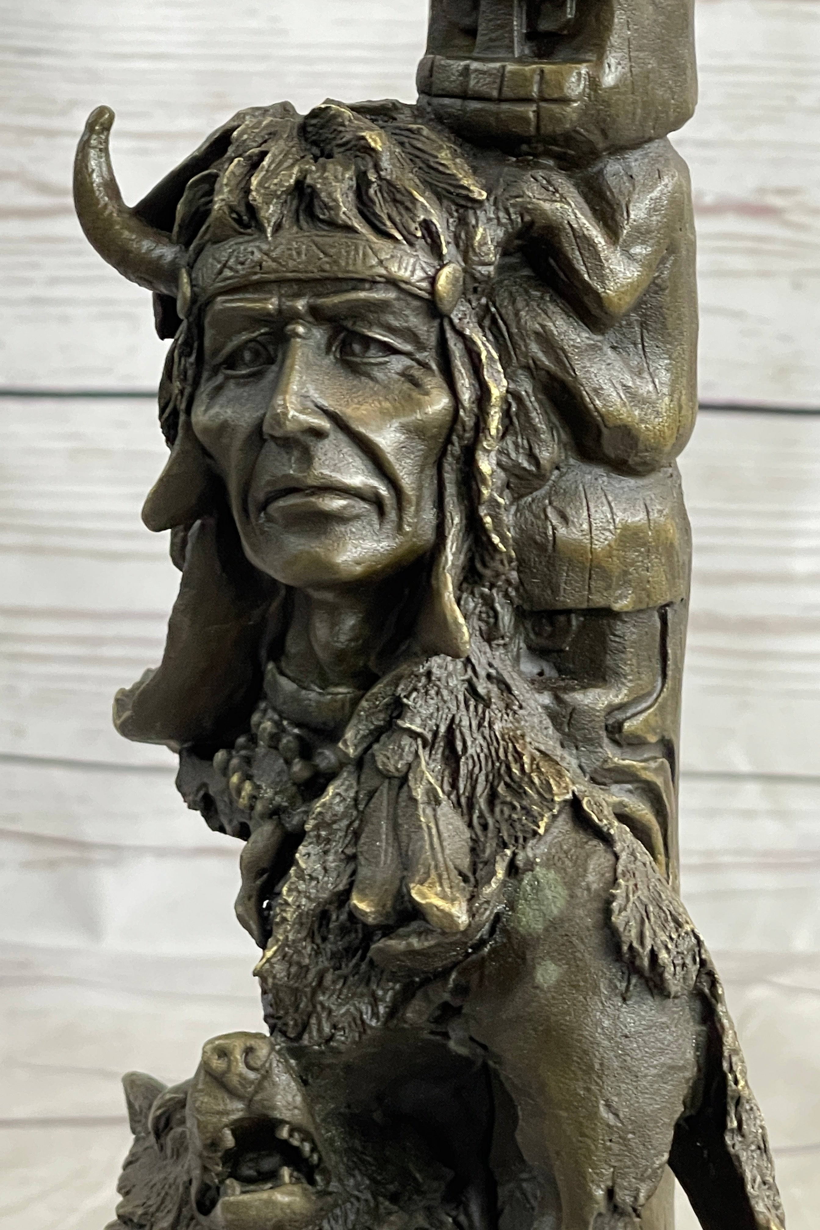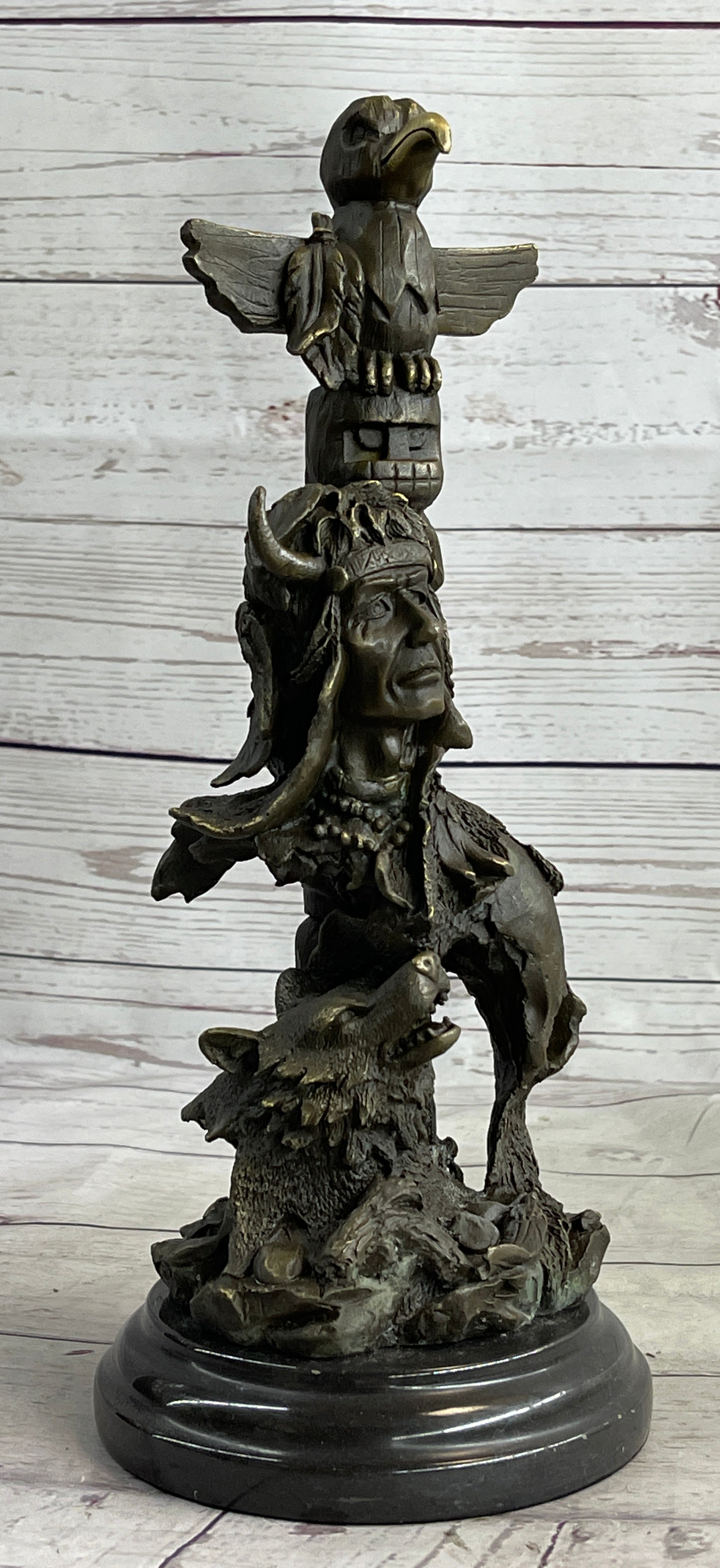 Native American Indian Totem Pole Bronze Sculpture Statue Original Art by Milo