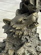In a tale woven through legend, the Indian and wolf shared a profound harmony, their spirits aligning not only in life but also during the hunt. This bronze sculpture immortalizes the moment when the chief, scout, and wolf, in unison, survey the landscape with a single-minded focus. The artist meticulously captures every detail, from the intricate feathered headdress adorning the chief to the majestic fur of the wolf, all cast in quality designer real bronze. This gallery-quality masterpiece stands as a modern collectible, encapsulating the essence of a harmonious connection between man and nature.