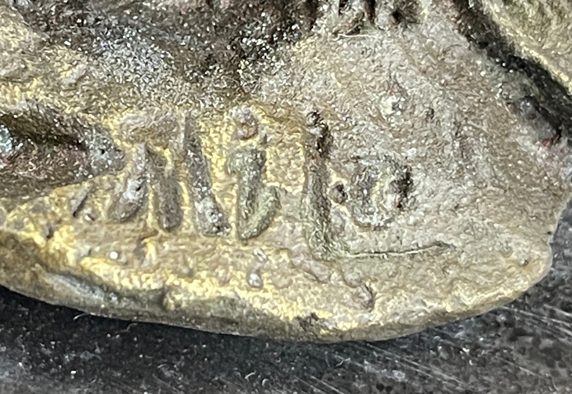 Adding a personal touch to this extraordinary piece, the sculpture is signed by the artist Milo. His signature not only certifies the authenticity of the artwork but also signifies a connection between the creator and the creation. This bronze masterpiece stands as a testament to the enduring bond between humans, nature, and the artistry that immortalizes their shared tales.Bronze Dimensions with Marble Base: Height 13" X Width 5.5"