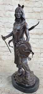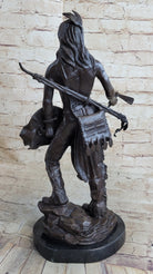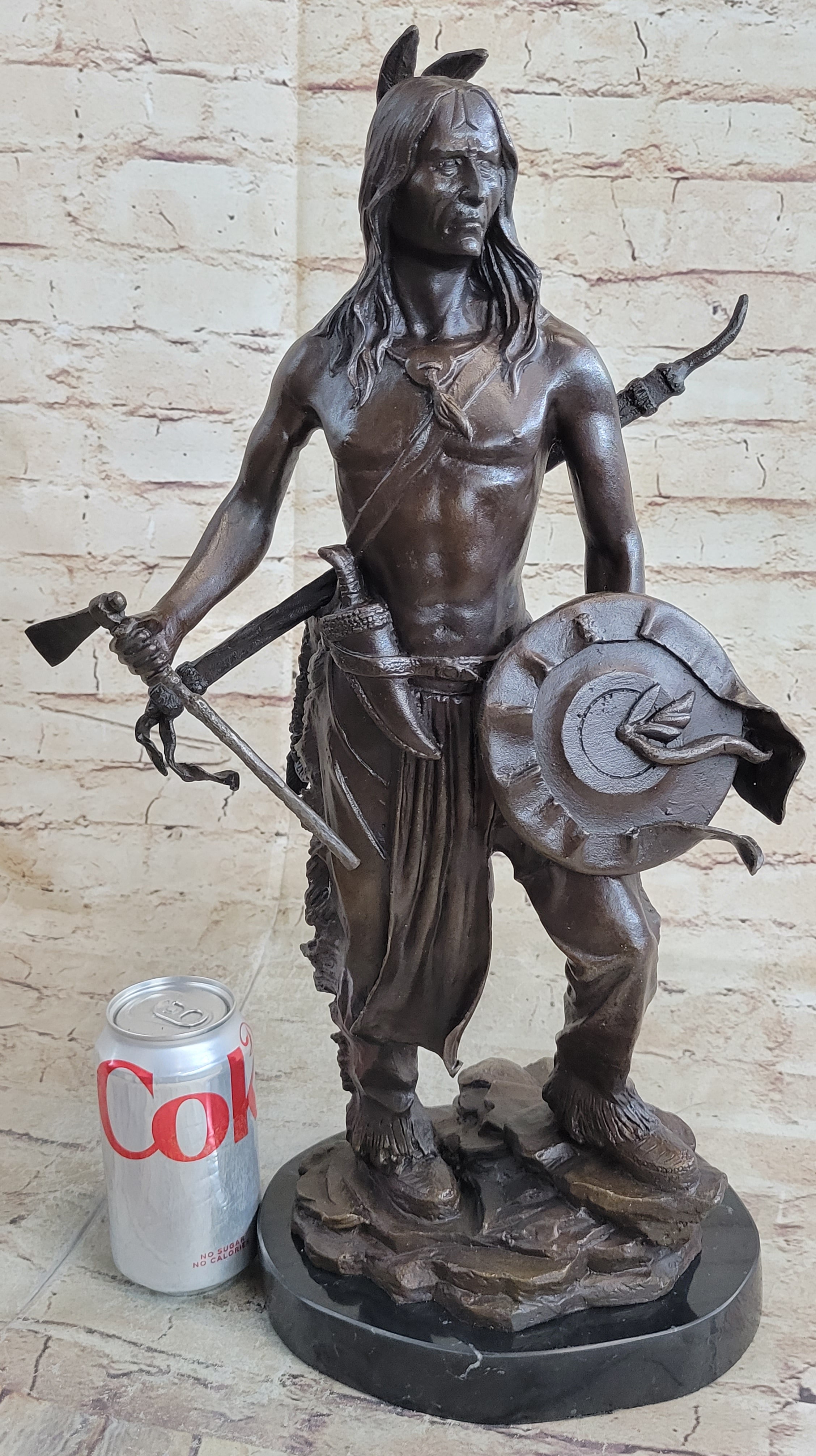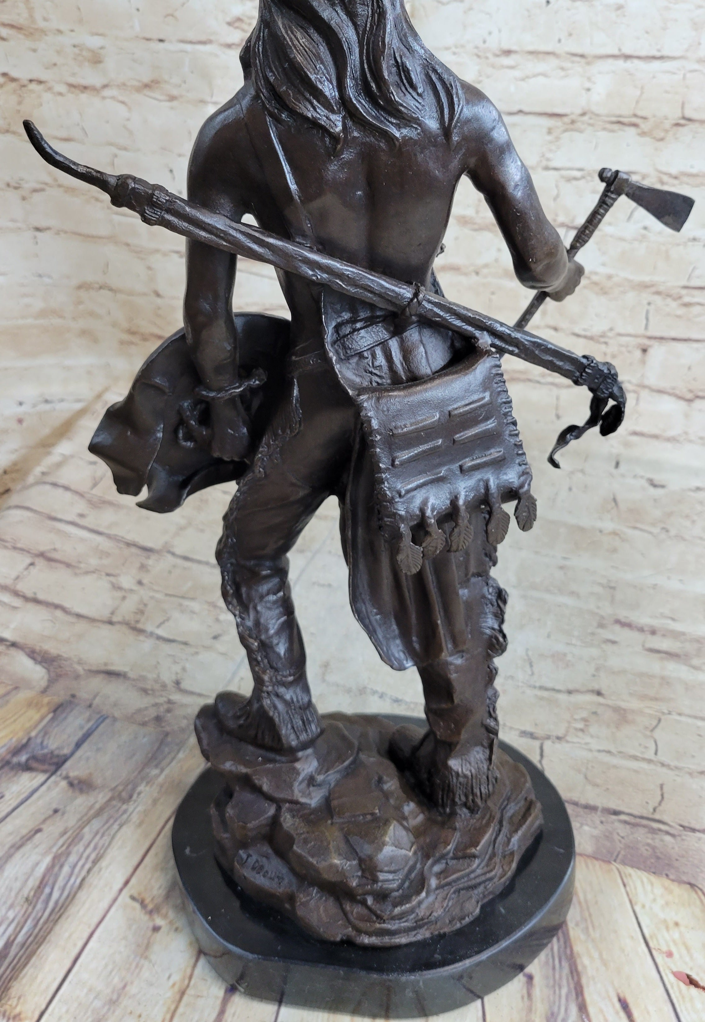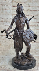 Native American Indian Warrior w/ Tomahawk - Bronze Metal Statue Sculpture Art