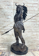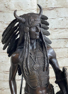 Native American Indian Warrior w/ War Bonnet Bronze Sculpture Statue by P. Manship