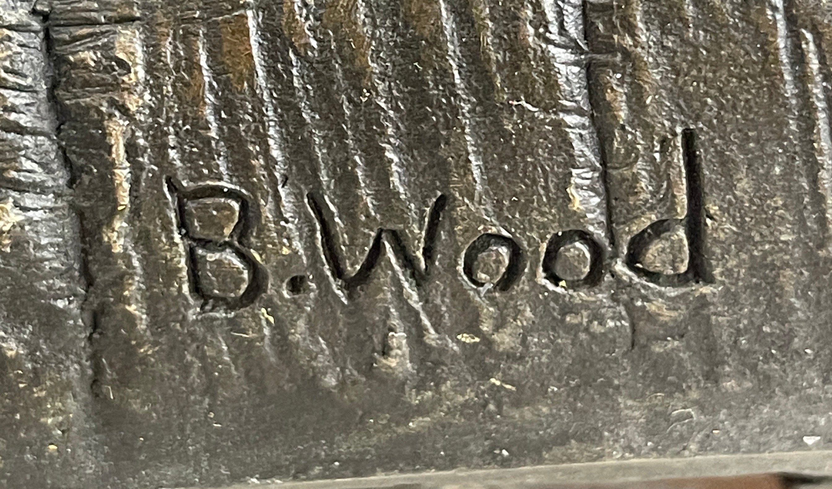 While inspired by Southwest tribal customs, it's important to note that this sculpture is not a product of a specific Indian tribe or organization. Instead, it represents a harmonious blend of artistic inspiration and cultural appreciation. The artist, Wood, leaves a signature that adds a personal touch to this powerful creation, acknowledging the skill and vision that went into crafting a piece that resonates with the spiritual and artistic heritage of Native American culture.Bronze Dimensions: Height 8" X Width 16"