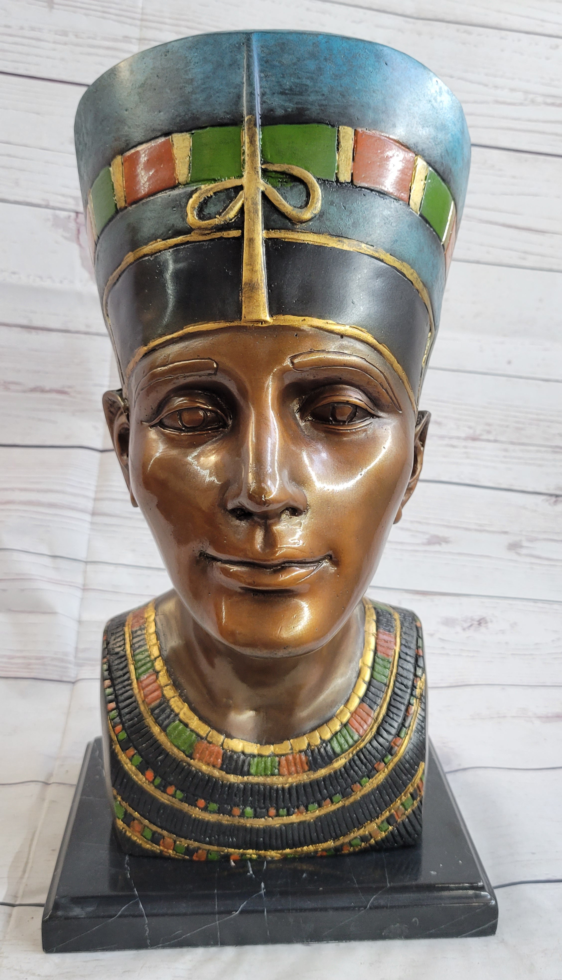 Nefertiti Egyptian Queen Pharaoh Bronze Bust Statue Sculpture Egypt Collectible 16" x 10"