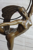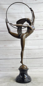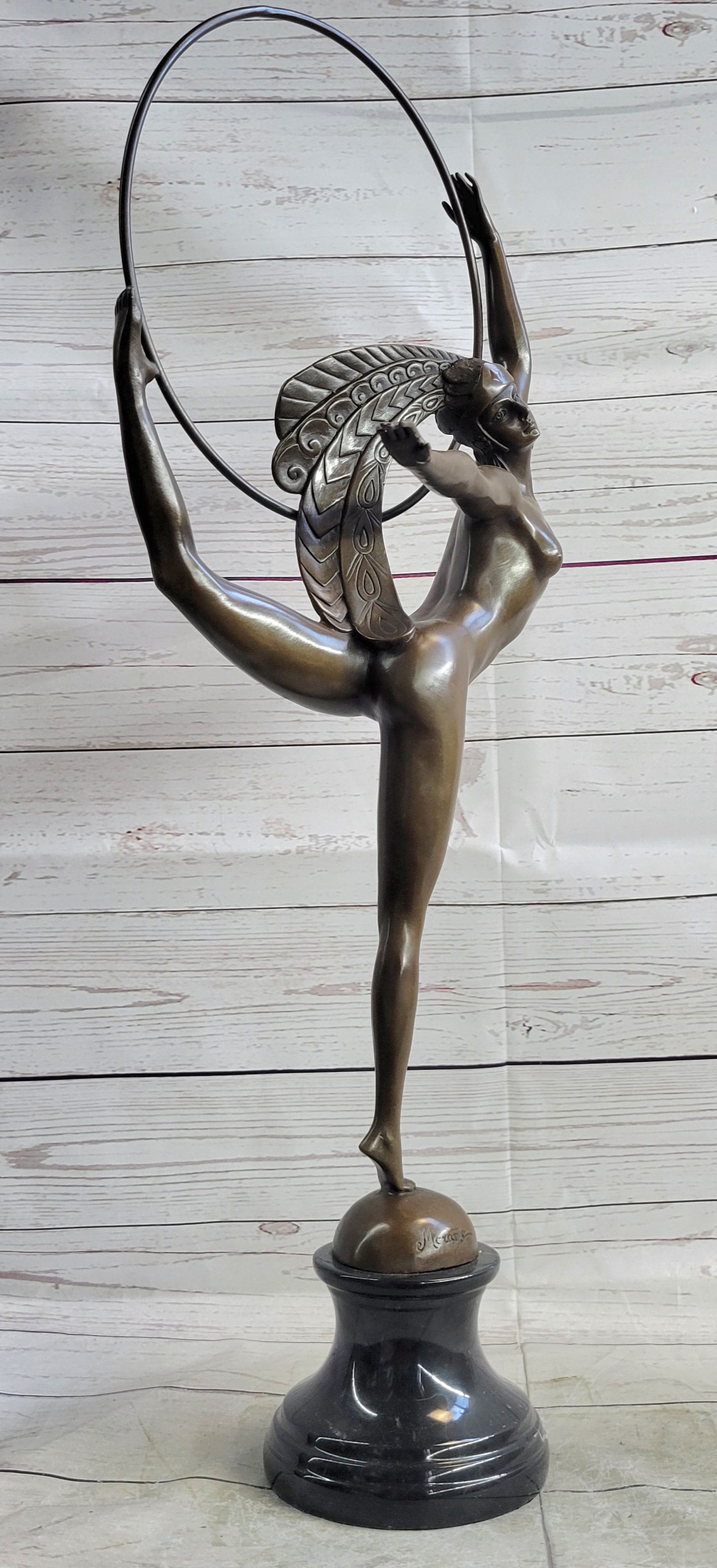 Nude Brazilian Carinval Dancer Girl Female Figure w/ Hula Hoop Bronze Sculpture Statue Art