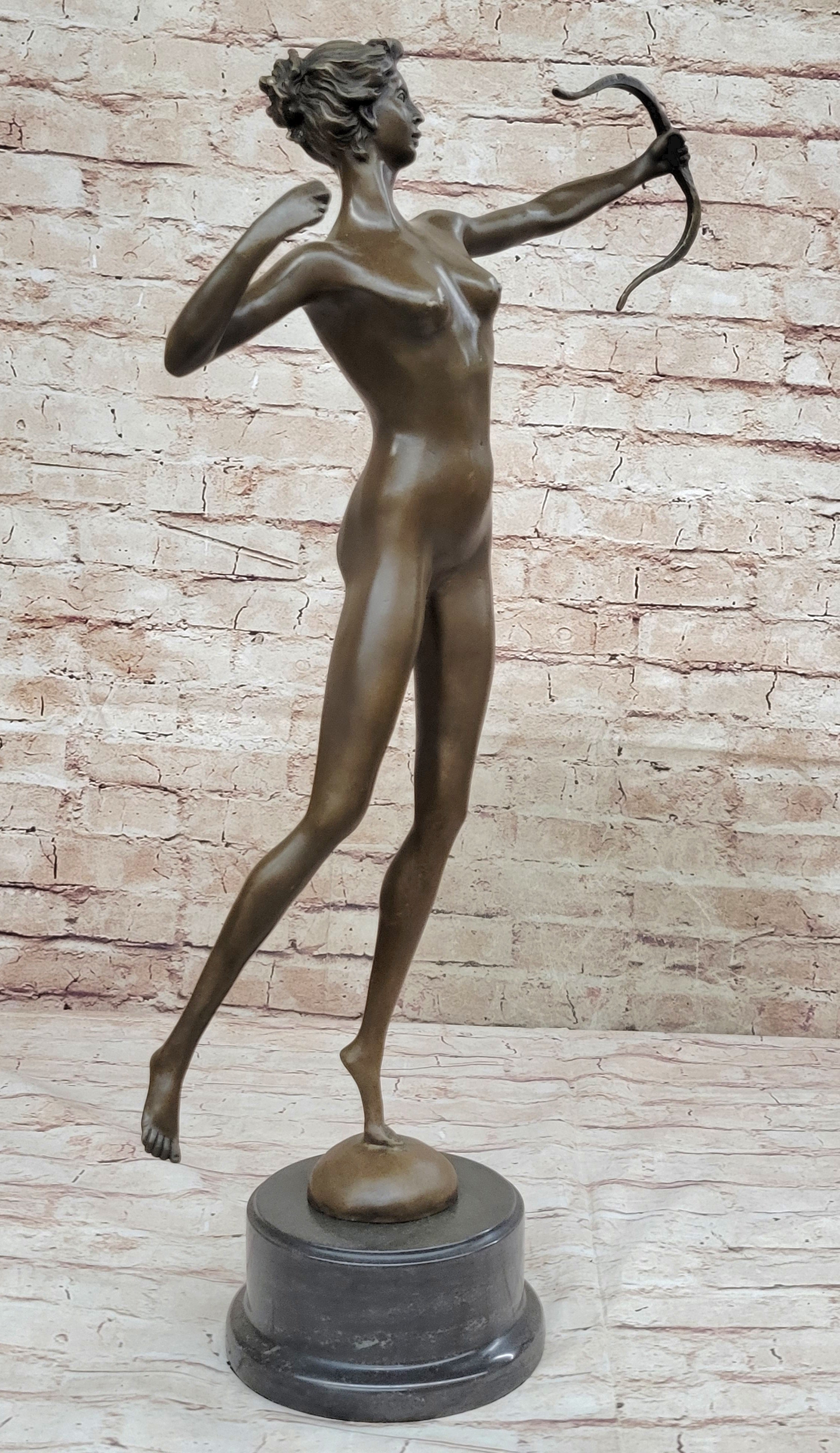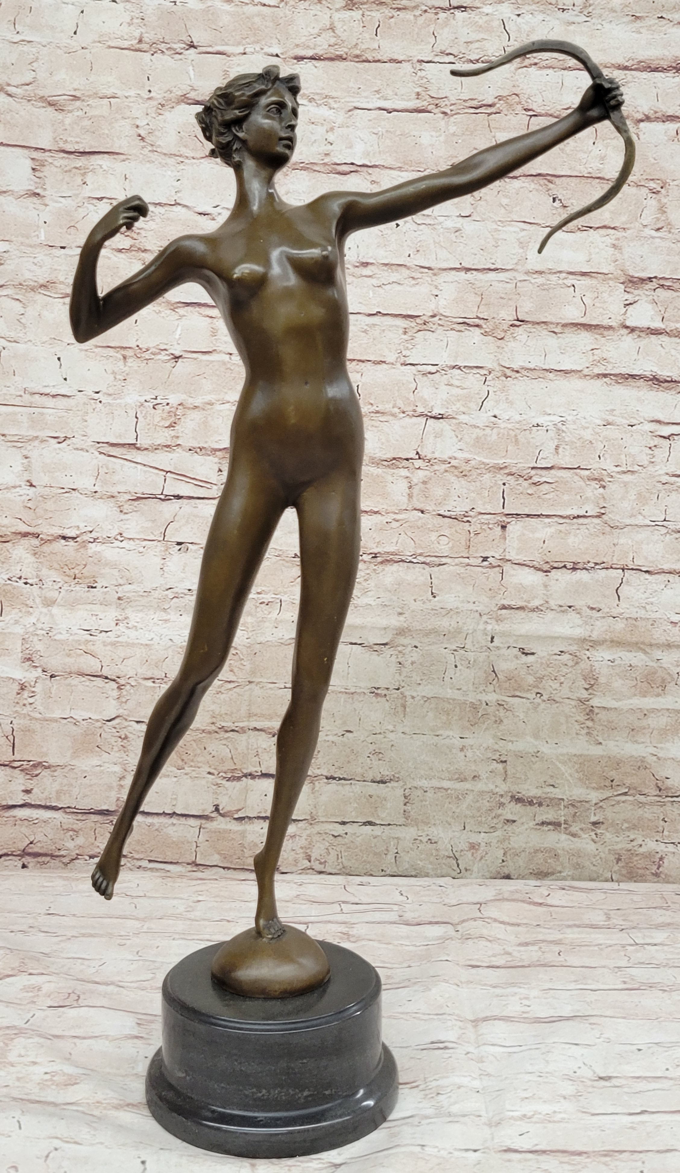 Nude Diana The Huntress by Jean Patoue Genuine Bronze Sculpture Statue