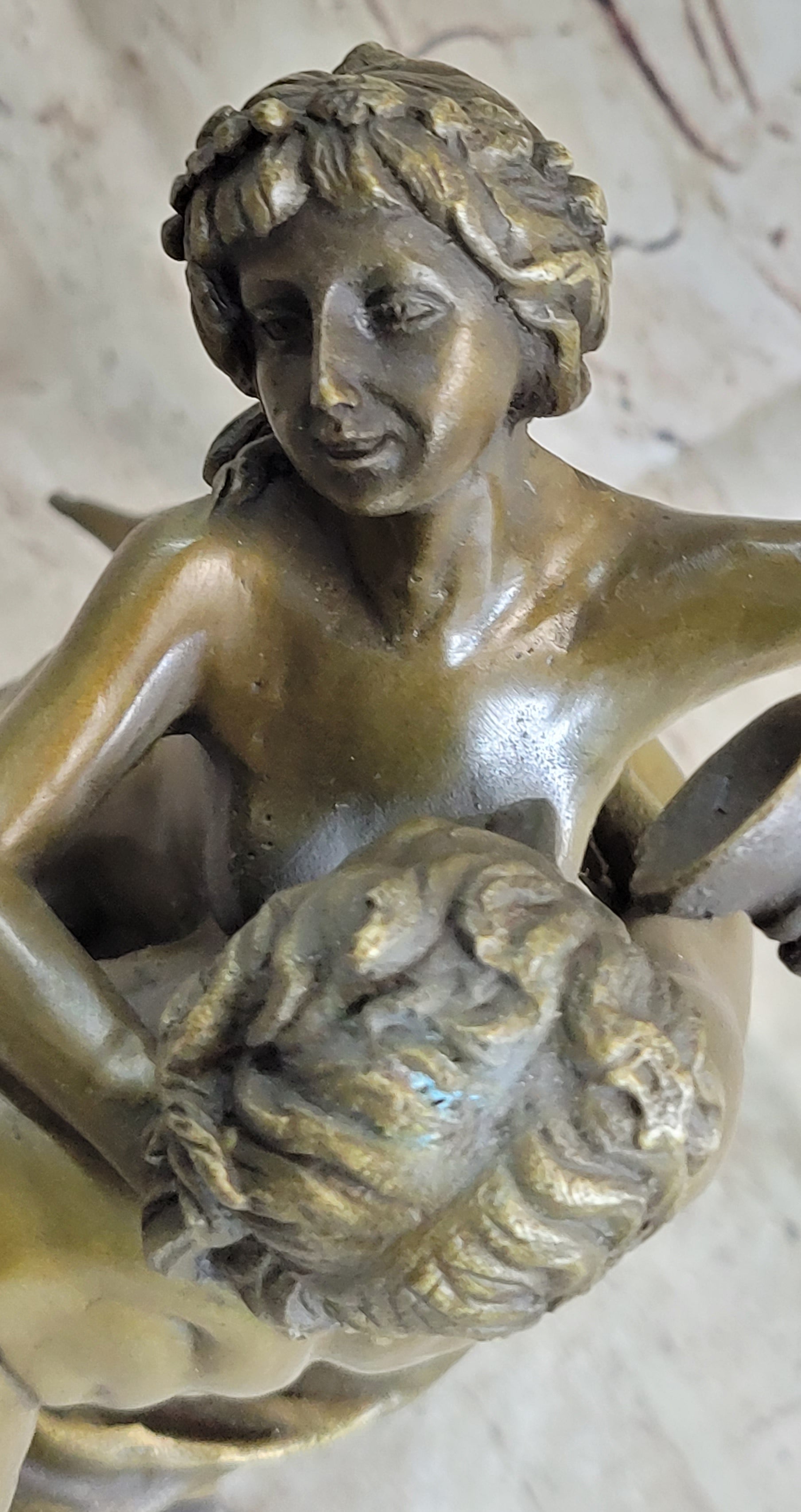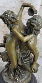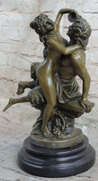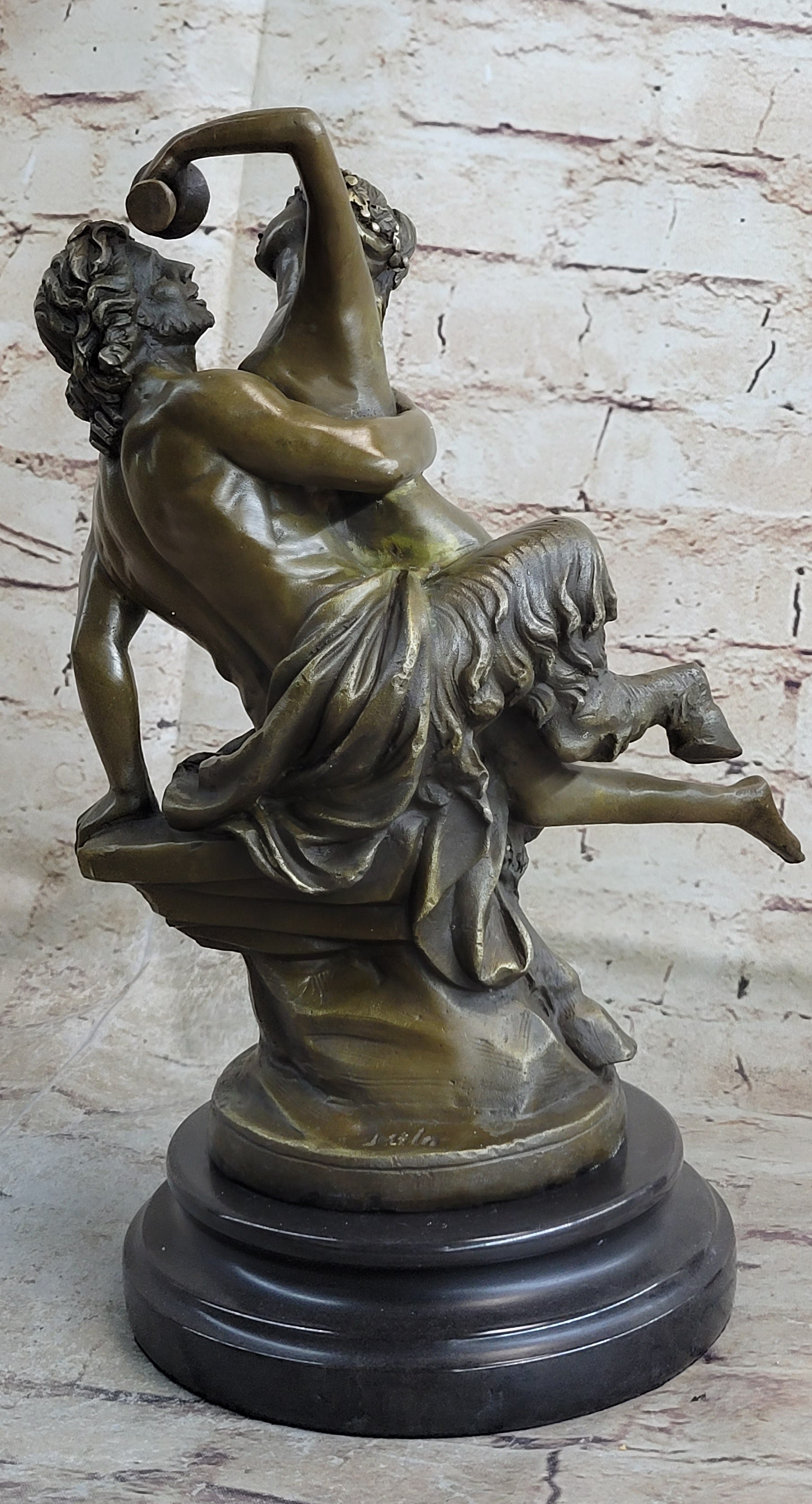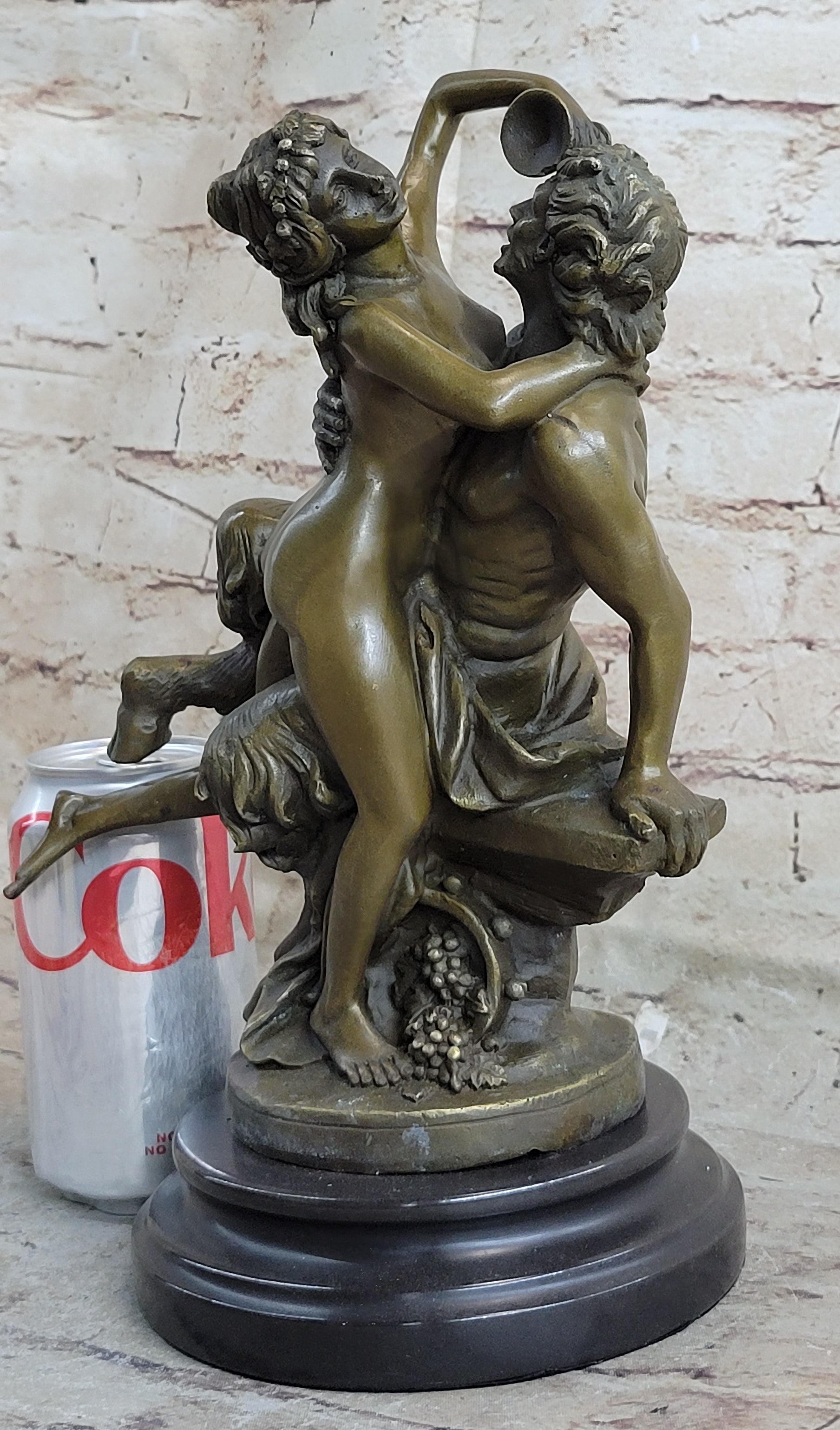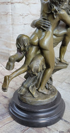Nude Art Nude Nymph with Satyr Bronze Sculpture Marble Base Figurine Gift