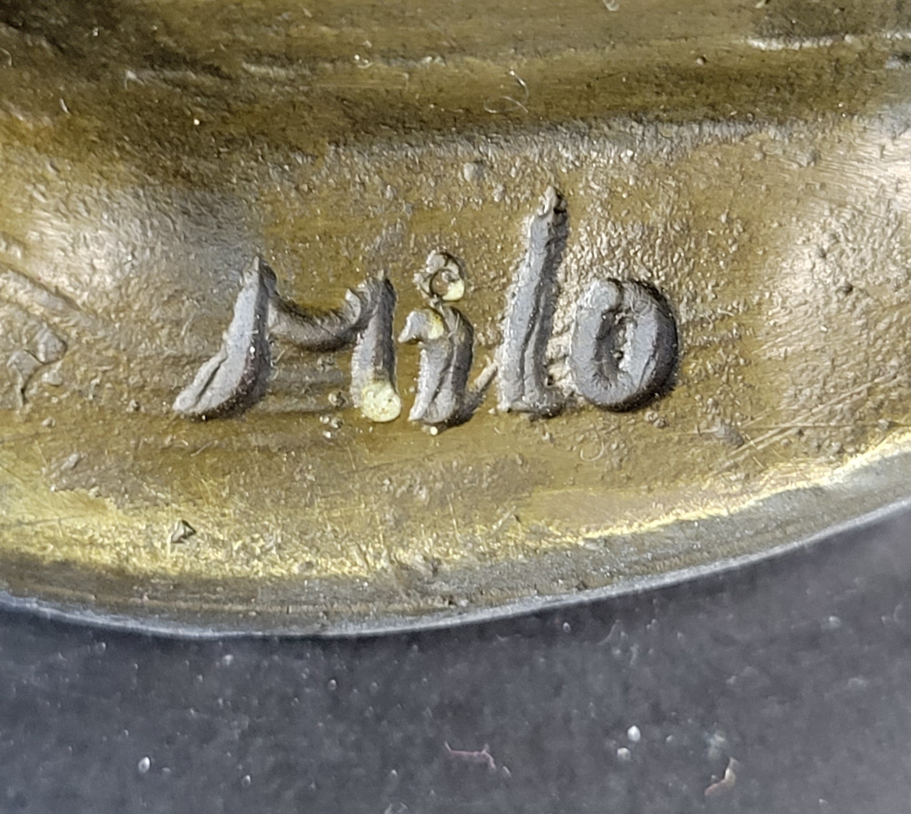 Created by the renowned artist Milo, this sculpture bears his signature as a mark of authenticity and quality. It is a remarkable piece of home decor that will enhance any space with its evocative presence. Whether displayed in a private collection or as a statement piece in your home, this large bronze figurine is sure to captivate and inspire admiration.Bronze Dimensions with Marble Base: Height 12" X Width 8"